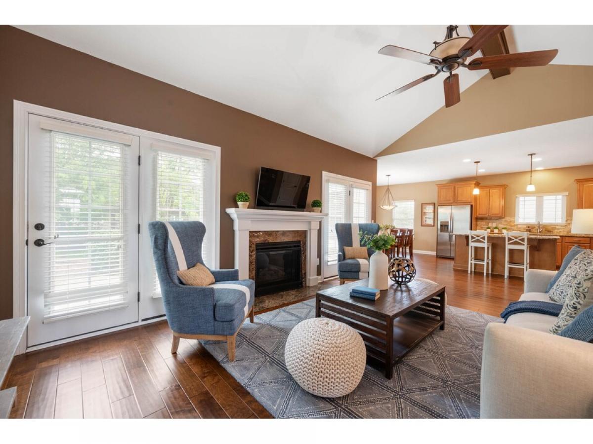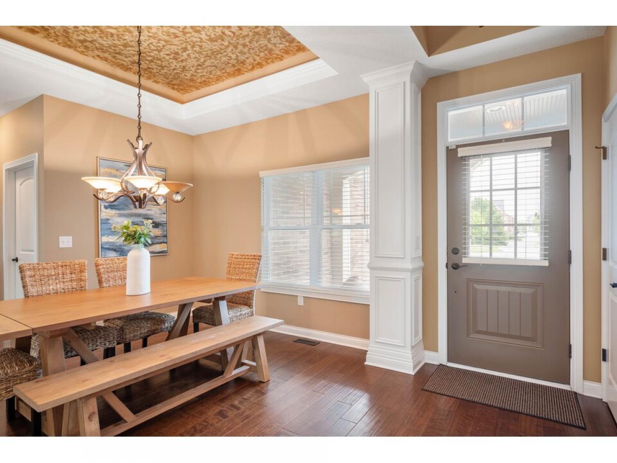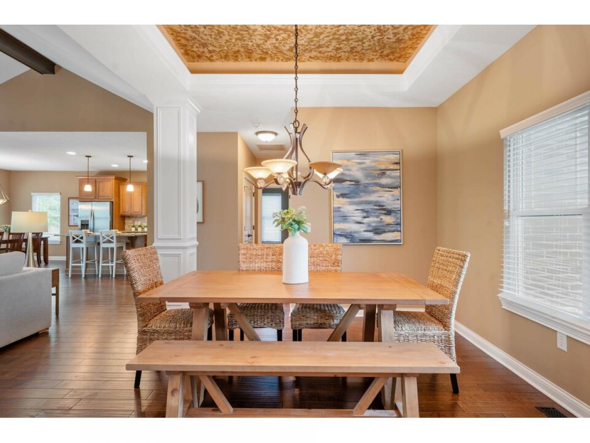 Amazing ranch in Villas at Bridgewater! 3BR and 2.5BA with 3 car garage. Main floor with open concept for entertaining. Dining room with tray ceiling and accent lights. Granite countertops and large island flow into both the living room and breakfast nook. Large primary bedroom with en suite and walk-in closet. Massive laundry room and office combo with island. 2 additional bedrooms and full bath in basement for guests. Large bar with more granite countertops and drink refrigerator. Beautiful west facing backyard with fire pit perfect for enjoying those summer nights or fall evenings. All the entertaining space you could ask for in this beautiful home.