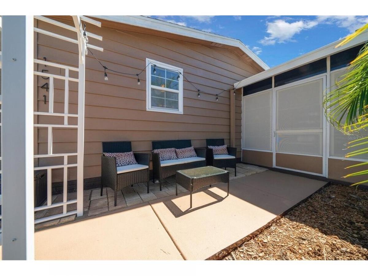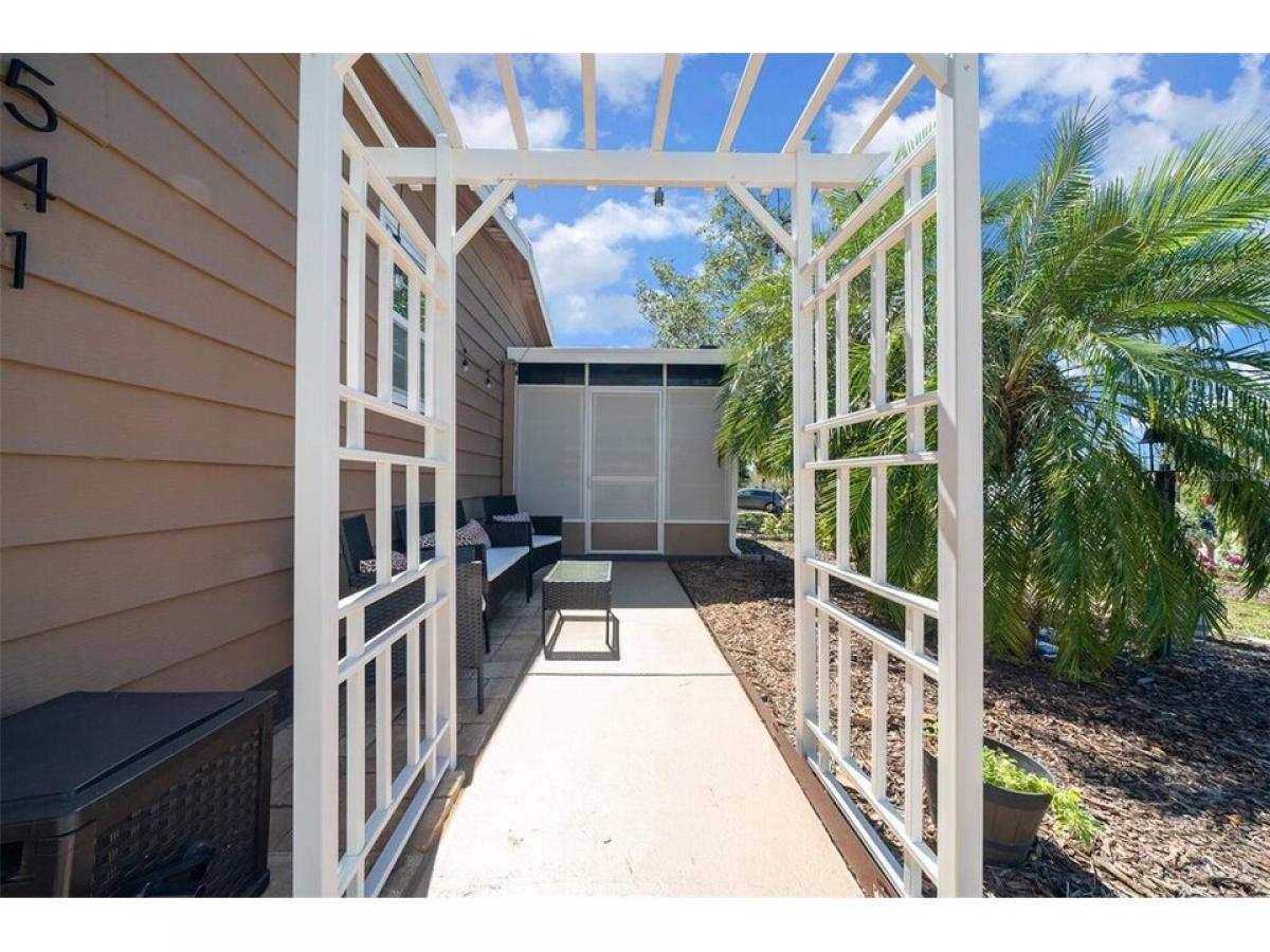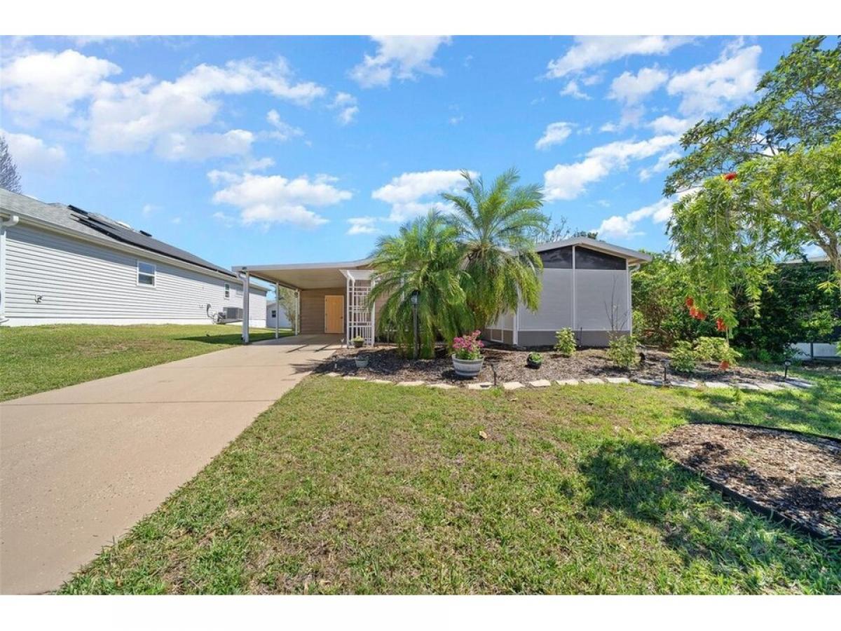 Nestled in the desirable village of ORANGE BLOSSOM, this meticulously maintained 2-bedroom, 2-bathroom manufactured home is just 1.5 miles to the Spanish Springs Town Center and around the corner from the HILLTOP ADULT POOL. This home has been thoroughly refreshed and renovated to include: New Roof (August 2022), HVAC (November 2022), New Painted Driveway (April 2025) and front patio adorned with TRELLIS and PAVERS 2025. New front storm door and grab bar 2023. DOUBLE-PANE/TILT WINDOWS throughout! Golf Cart Garage with overhead storage and updated work bench. INSIDE LAUNDRY! Step inside to an open-concept floor plan with vaulted ceilings and ceramic tile throughout (new grout mid-2024). NO CARPET in home! The spacious living area is ideal for entertaining or relaxing and features sliding doors leading to the ENCLOSED LANAI with new PRIVACY SCREENS (Dec 2024). The primary bedroom boasts VAULTED CEILINGS, new ceiling fan, ceramic tile flooring, and a nice sized walk-in closet. The en-suite bathroom features a gorgeous copper sink, large vanity area, walk-in shower and direct access to the indoor laundry room, complete with a large Whirlpool HE washing machine. The second bedroom offers a vaulted ceiling, updated ceiling fan, accent wall, wood-look laminate flooring, and a walk-in closet for ample storage. The nearby second bathroom includes a shower-tub combo and charming decor. The backyard offers plenty of useable space to enjoy. All new interior and exterior lighting including 4 new ceiling fans with mostly new electrical outlets and switches (2023) New comfort-height toilets, sinks amp; faucets in bathrooms (2023). New low-maintenance NATIVE LANDSCAPING. New Blinds throughout! Bonus: Turn-Key Package Available for $7, 500 includes ALL indoor (2022) and outdoor furniture (2024), LG Smart TV, lamps, deacute;cor, cook and bakeware, sheets and towels hellip;.just bring your toothbrush. This home offers peace of mind for years to come and is the perfect place to enjoy the incredible lifestyle The Villages has to offer. Don#039;t miss out! Schedule your private showing today! Tax Line reflects ad valorem and non-ad valorem taxes: $2,749 + fire 124 + waste 185= $3,058. NO BOND or BOND MAINTENANCE!