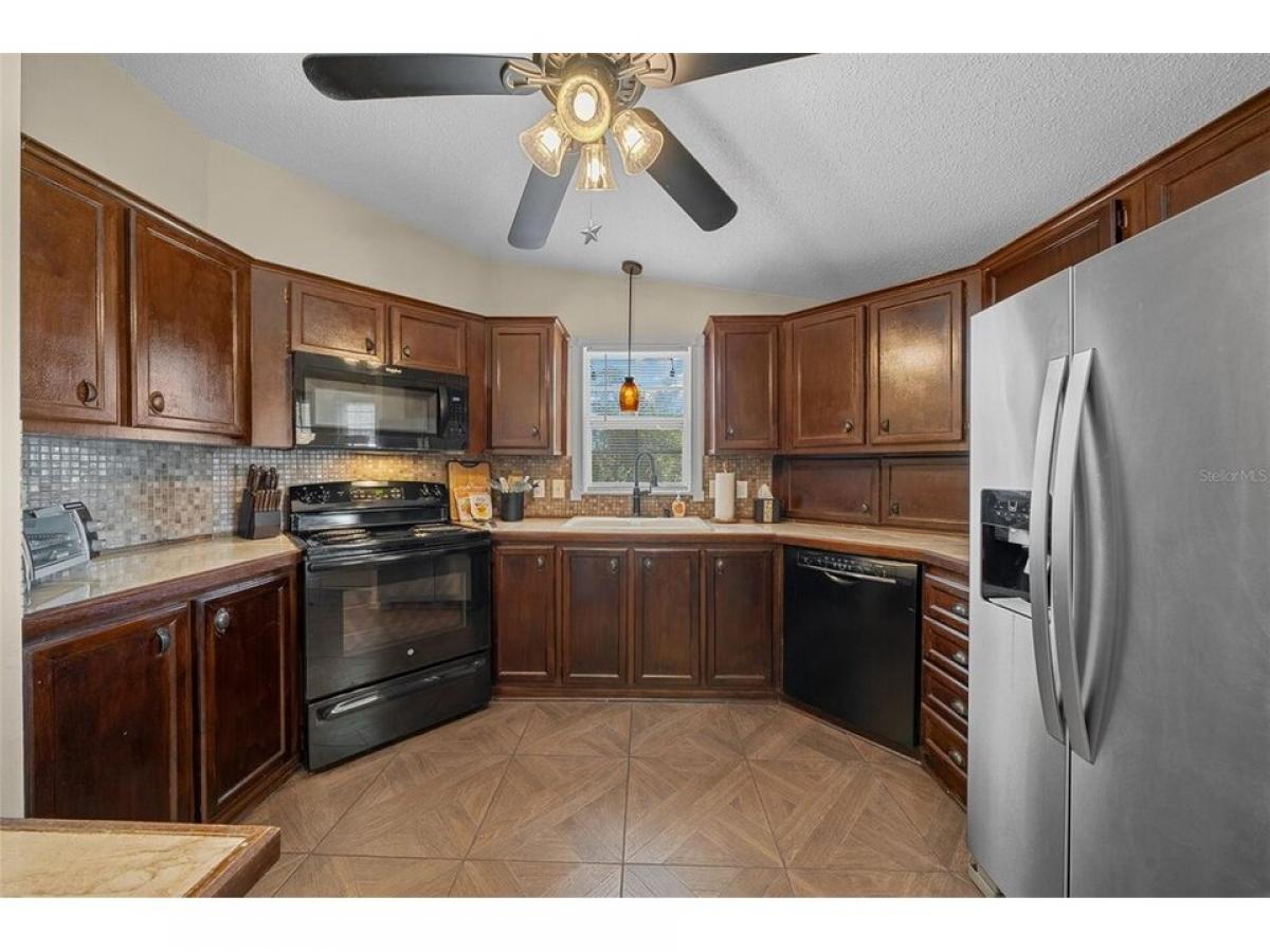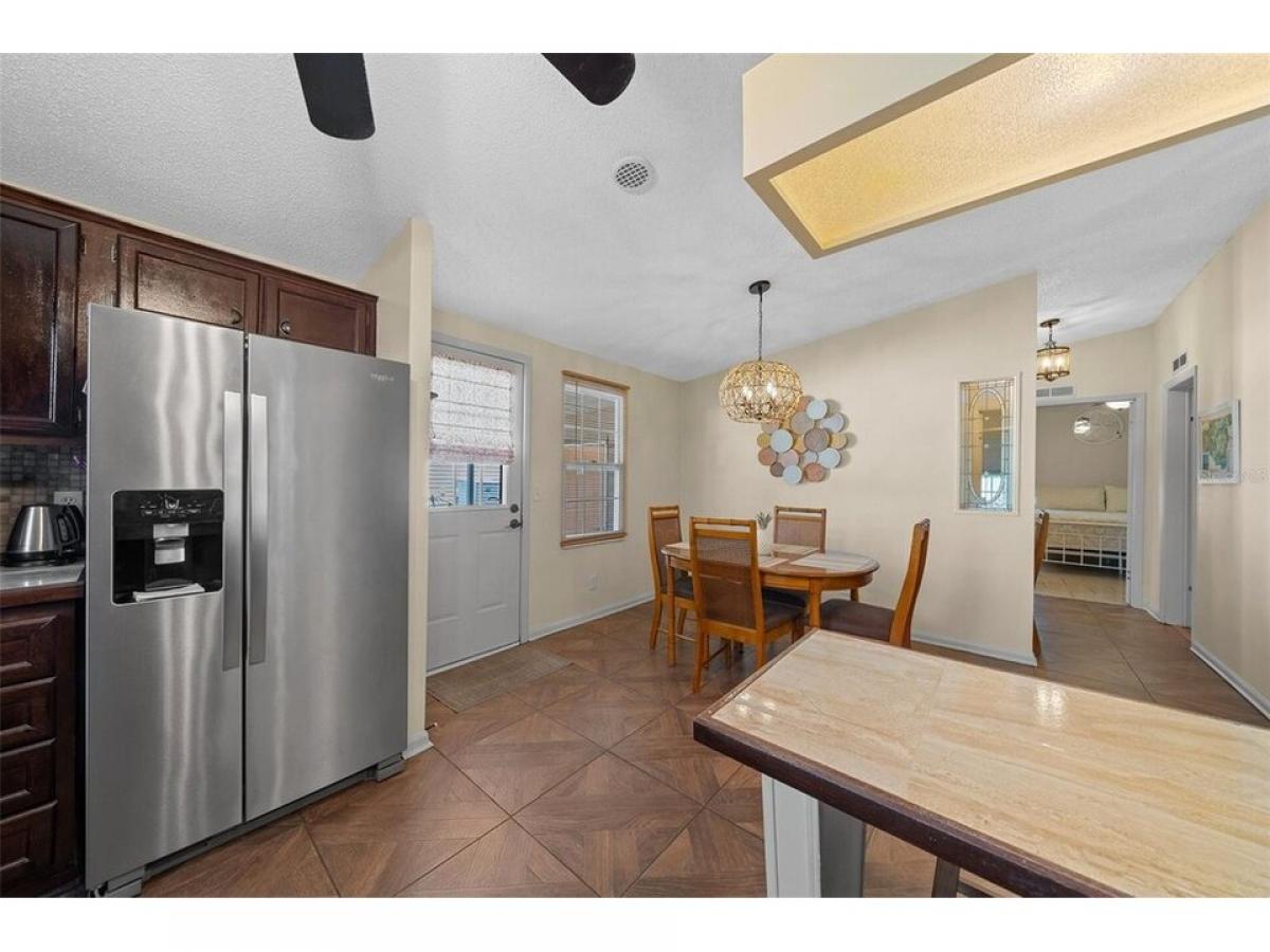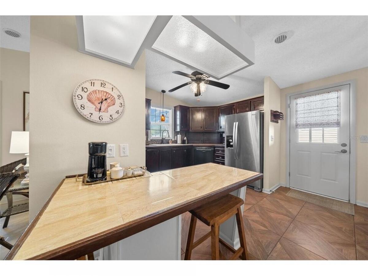 Nestled in the desirable village of ORANGE BLOSSOM, this meticulously maintained 2-bedroom, 2-bathroom manufactured home is just 1.5 miles to the Spanish Springs Town Center and around the corner from the HILLTOP ADULT POOL. This home has been thoroughly refreshed and renovated to include: New Roof (August 2022), HVAC (November 2022), New Painted Driveway (April 2025) and front patio adorned with TRELLIS and PAVERS 2025. New front storm door and grab bar 2023. DOUBLE-PANE/TILT WINDOWS throughout! Golf Cart Garage with overhead storage and updated work bench. INSIDE LAUNDRY! Step inside to an open-concept floor plan with vaulted ceilings and ceramic tile throughout (new grout mid-2024). NO CARPET in home! The spacious living area is ideal for entertaining or relaxing and features sliding doors leading to the ENCLOSED LANAI with new PRIVACY SCREENS (Dec 2024). The primary bedroom boasts VAULTED CEILINGS, new ceiling fan, ceramic tile flooring, and a nice sized walk-in closet. The en-suite bathroom features a gorgeous copper sink, large vanity area, walk-in shower and direct access to the indoor laundry room, complete with a large Whirlpool HE washing machine. The second bedroom offers a vaulted ceiling, updated ceiling fan, accent wall, wood-look laminate flooring, and a walk-in closet for ample storage. The nearby second bathroom includes a shower-tub combo and charming decor. The backyard offers plenty of useable space to enjoy. All new interior and exterior lighting including 4 new ceiling fans with mostly new electrical outlets and switches (2023) New comfort-height toilets, sinks amp; faucets in bathrooms (2023). New low-maintenance NATIVE LANDSCAPING. New Blinds throughout! Bonus: Turn-Key Package Available for $7, 500 includes ALL indoor (2022) and outdoor furniture (2024), LG Smart TV, lamps, deacute;cor, cook and bakeware, sheets and towels hellip;.just bring your toothbrush. This home offers peace of mind for years to come and is the perfect place to enjoy the incredible lifestyle The Villages has to offer. Don#039;t miss out! Schedule your private showing today! Tax Line reflects ad valorem and non-ad valorem taxes: $2,749 + fire 124 + waste 185= $3,058. NO BOND or BOND MAINTENANCE!