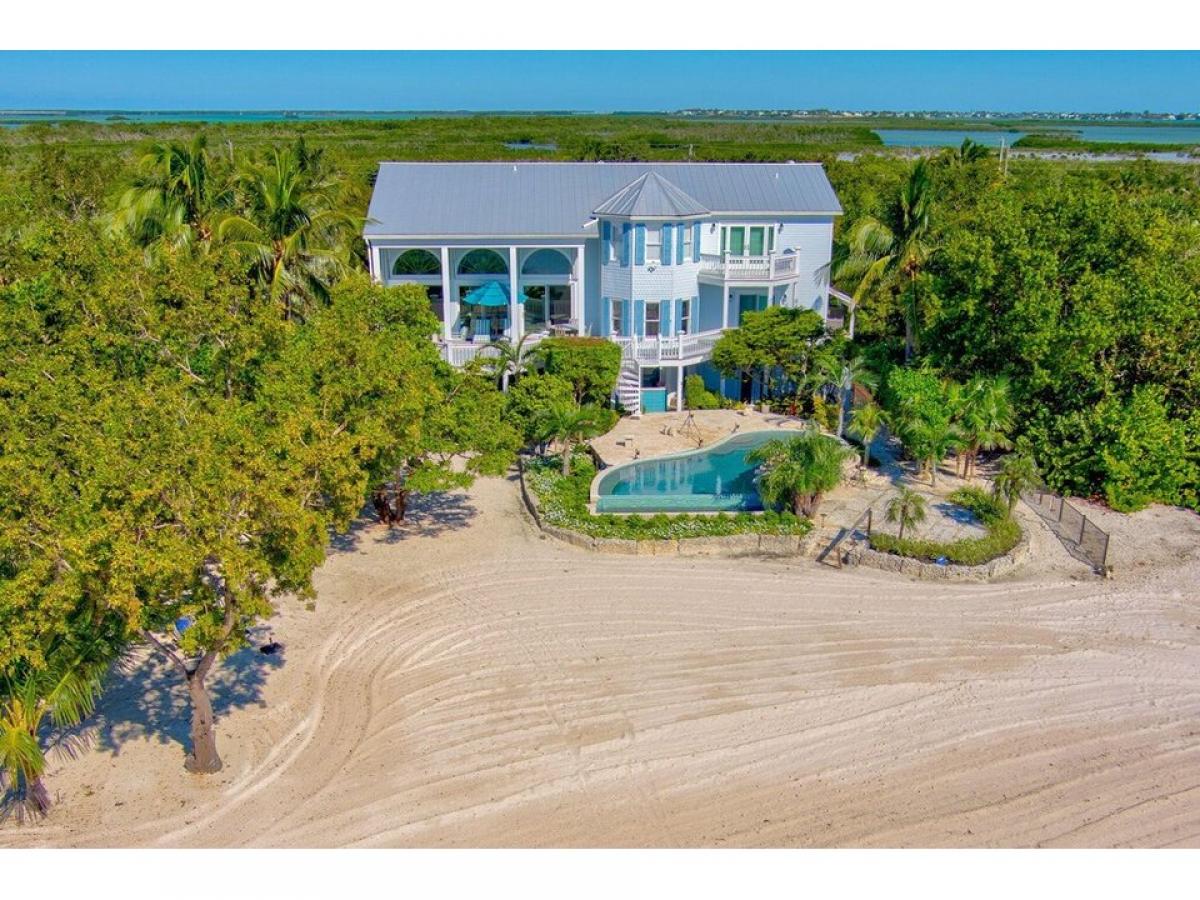Located on beautiful Sugarloaf Beach where nightly rentals are allowed this 1+ acre oceanfront property boasts a gorgeous wide sand beach, oceanfront infinity pool, and endless ocean views! Currently utilized as a successful vacation rental, this sprawling 2-Story 4,509 Sq. Ft. floor plan features 4 bedrooms, 3.5 bathrooms, office, media room, and attached 4+ car garage, just outside of Key West! Enter into the Great Room showing off soaring cathedral ceilings and Open Water Views through impact sliding glass doors leading to an expansive covered veranda for year-round indoor-outdoor entertaining! Spend the day lounging on 120amp;apos; of private beach, or cool off in the infinity pool, complete with spa and coral rock deck, just steps from the sand. A convenient poolside outdoor wet bar offers beverage cooler, sink, and ice machine to host your beachside parties. An added bonus is the full cabana bathroom accessed from the pool deck, ideal for rinsing away salt and sand. Entertain for the masses with an expansive Chefamp;apos;s Kitchen, boasting loads of storage, premium appliances, spacious island with additional prep sink, and peninsula with counter seating. The spacious dining area is provides room for enjoying lavish meals with guests or dine al fresco on the massive covered veranda with peaceful turquoise Ocean Views! After a day in the sunshine retire to a luxurious primary suite with a massive walk-in closet, private balcony with Ocean Views, and an opulent en suite, complete with infinity edge soaking tub, walk-in steam shower, additional laundry room, and wet bar with mini fridge. Enjoy peace and privacy on this lushly landscaped lot surrounded by a nature preserve where one can view Key Deer all lots of varieties of migrating birds. Just minutes to the Key West airport and all of the magic Key West has to offer.