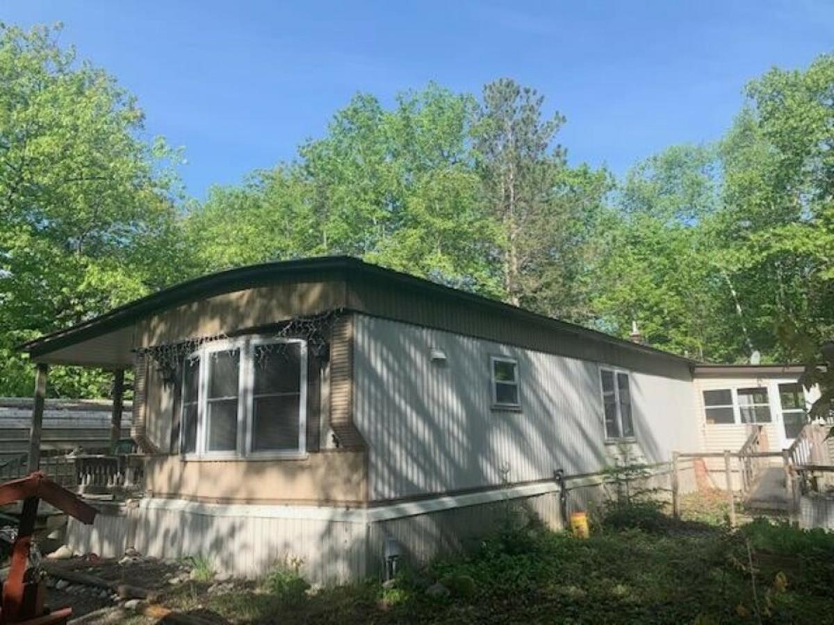 The perfect camp! This mobile home has been lived in year around. The 2.9 acres is surrounded by state land on the back and west side of the property. Lots of storage with a pole barn, garage and shed on site! Newer vinyl windows throughout. Property being sold ''as is''
