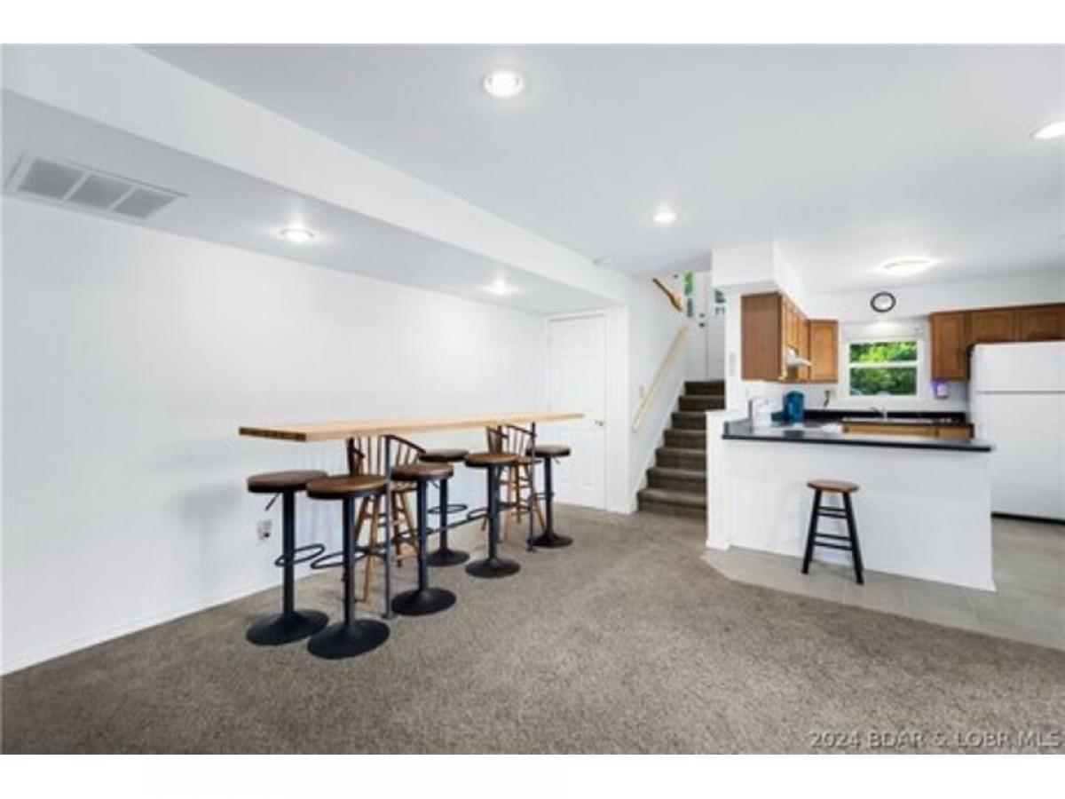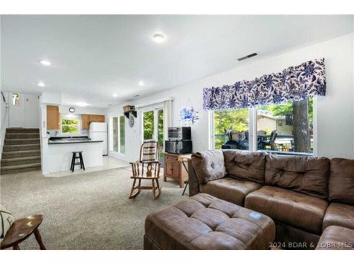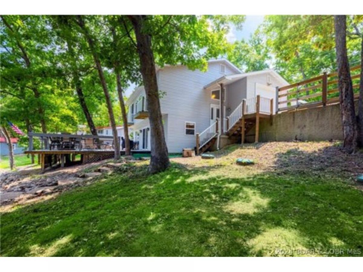 Classic cabin vibes can be found at the 44 mile marker at the iconic Lake of the Ozarks. When you pull up you can take a sigh of relief, you're at the lake now! Take a look past the driveway & extra parking & notice the gentle yard near the lake, private dock, pebble beach near the water, fire pit, & lakeside deck. Make your way into the main level of the home which features access to the lakeside deck, kitchen, living room, dining area, as well as a half bathroom. The upper level allows access to the attached garage & features 4 bedrooms, 2 bathrooms, and laundry closet. The private dock has a 10x20 boat slip w/ low water hoist & a pwc hoist included. Just a short cruise down the main channel are lake bars, restaurants, & entertainment.