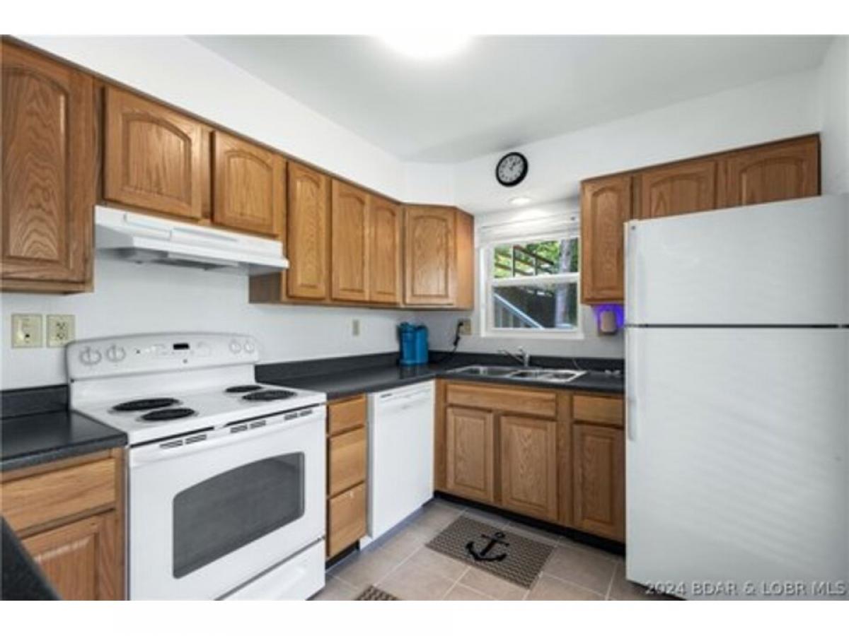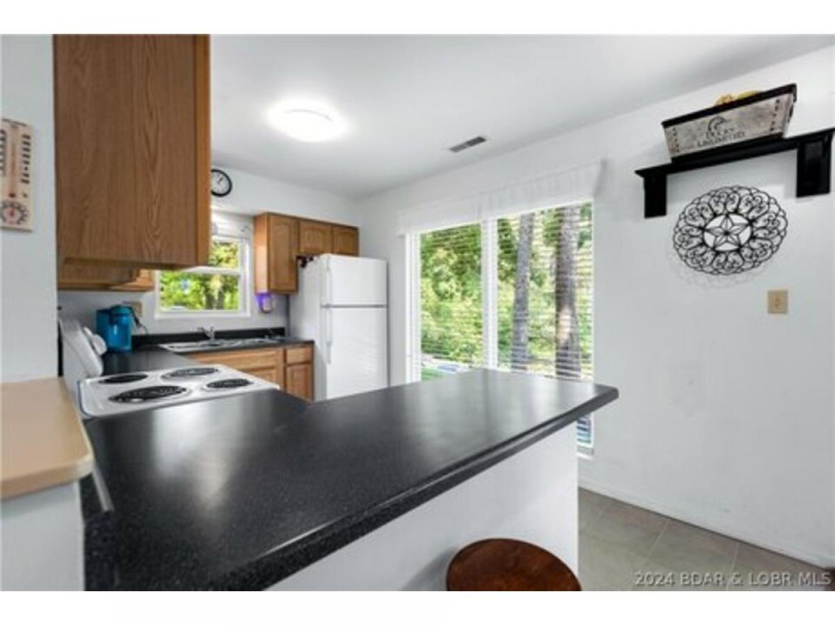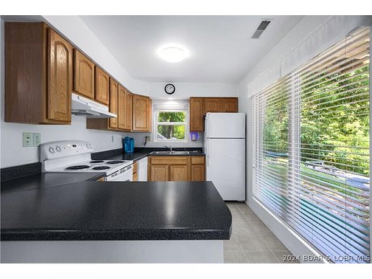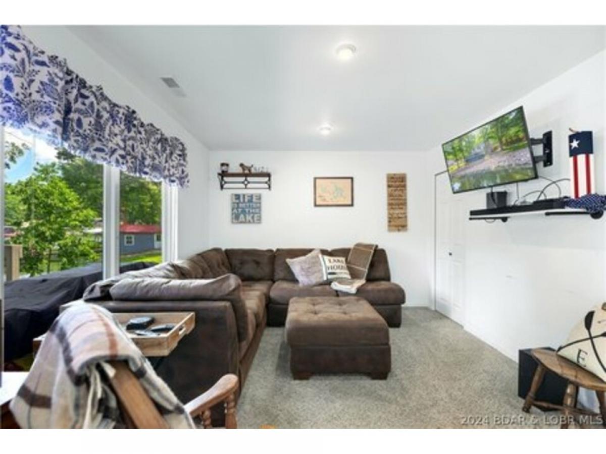 Classic cabin vibes can be found at the 44 mile marker at the iconic Lake of the Ozarks. When you pull up you can take a sigh of relief, you're at the lake now! Take a look past the driveway & extra parking & notice the gentle yard near the lake, private dock, pebble beach near the water, fire pit, & lakeside deck. Make your way into the main level of the home which features access to the lakeside deck, kitchen, living room, dining area, as well as a half bathroom. The upper level allows access to the attached garage & features 4 bedrooms, 2 bathrooms, and laundry closet. The private dock has a 10x20 boat slip w/ low water hoist & a pwc hoist included. Just a short cruise down the main channel are lake bars, restaurants, & entertainment.