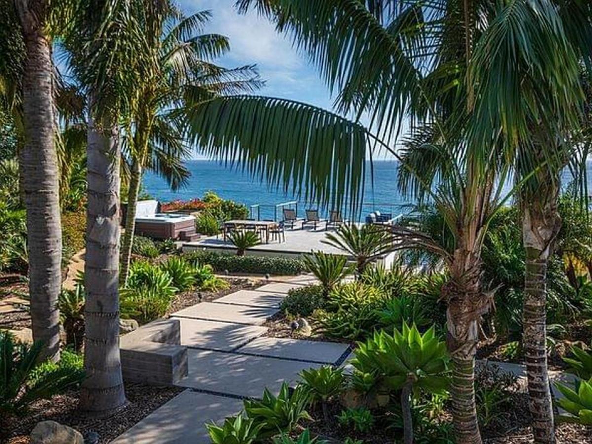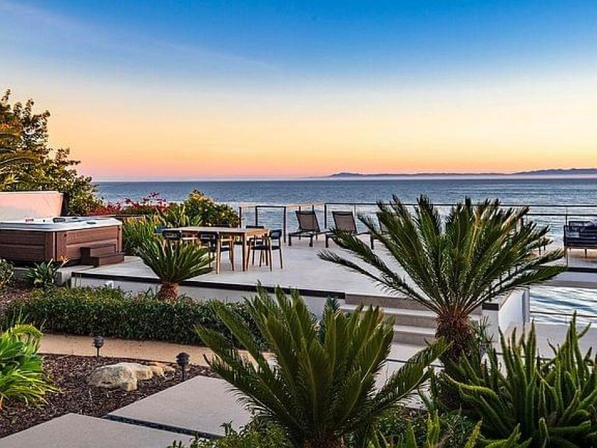 Enjoy the ultimate American Riviera lifestyle in this exquisite oceanfront estate resting on a gracious half-acre of prime California coastline. The inspiring contemporary residence was meticulously designed and crafted by noted architect, Tom Ochsner, four years ago with the goal of creating a sophisticated yet casual resort-style retreat. The interior spaces can best be described as modern elegance with an emphasis on showcasing sublime ocean views while creating an ideal indoor/outdoor lifestyle that this area is known for. The light-filled public rooms feature soaring ceilings, designer finishes, wide-plank white oak flooring and a gourmet kitchen/great room all providing seamless access to an irresistible view terrace. The home offers four private bedroom suites highlighted by a romantic master retreat complete with a fireplace, ocean view terrace, and spa-like bathroom. Additional enticing spaces include a media room, a gallery office and/or hang-out space with fabulous views through cascading windows, and a fun game room with a half-bath and stunning wine showcase behind glass doors. The private half-acre of grounds features towering palm trees, meandering paths, and exotic plantings providing the ambiance of a tropical resort. The final element of this enchanting property is the expansive oceanfront deck featuring a bubbling jacuzzi, lounge chairs and al-fresco dining table perfect for relaxing and taking in inspiring sunsets at day's end. Finally, a secret hideaway below the deck offers an incredible ocean view retreat unlike anything you have ever seen. This extraordinary estate embodies the essence of the American Riviera lifestyle, offering an unparalleled blend of luxurious living and natural beauty in a serene coastal environment.