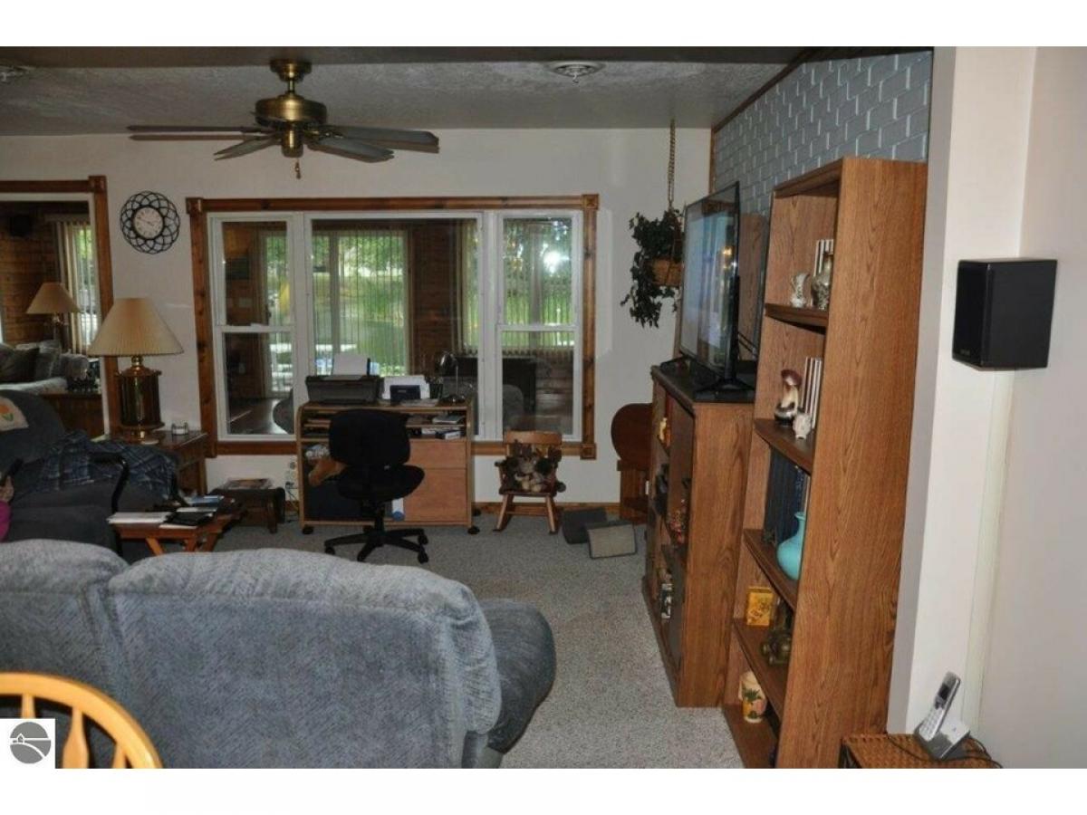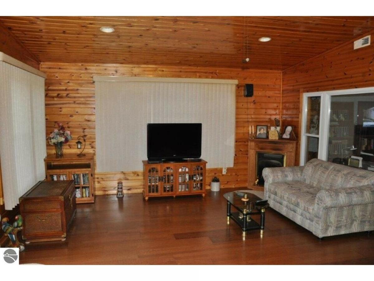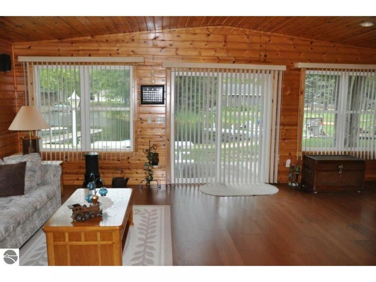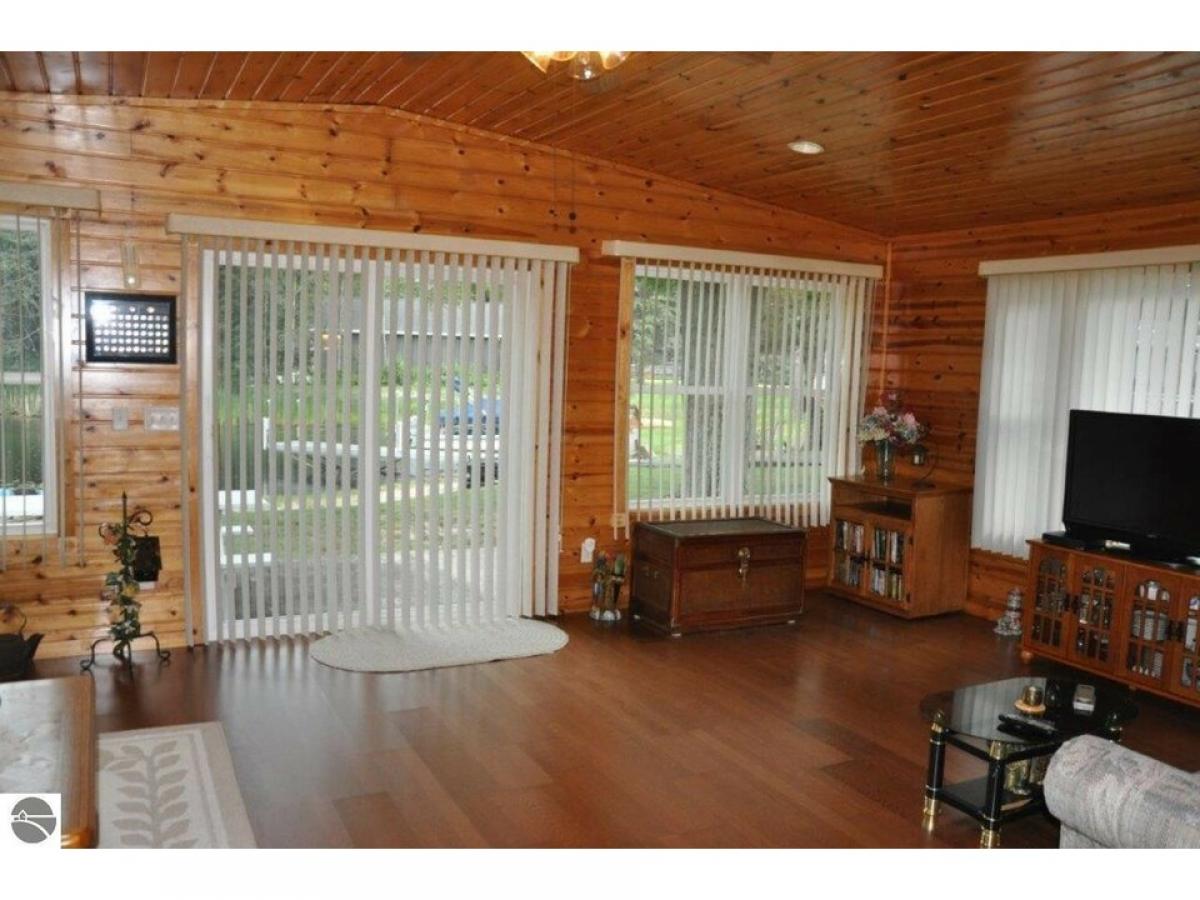 This ranch style Lakefront house is nestled in a cove on Beautiful Lake James with 44’ of sandy lakefront. The home has an open concept style great for entertaining. The 2 Bedroom, 1 Full Bathroom, 2 Car garage and two sheds (10’x 14’ & 6’x 8’) for your outdoor toys. The house features a beautiful 3 seasons room(384Sqft.) with knotty pine & wood vinyl flooring overlooking the lakefront. The home also comes with AC, Generator, Dock and a firepit in backyard lakeside. A great Up North getaway or permanent home in Northern Michigan.