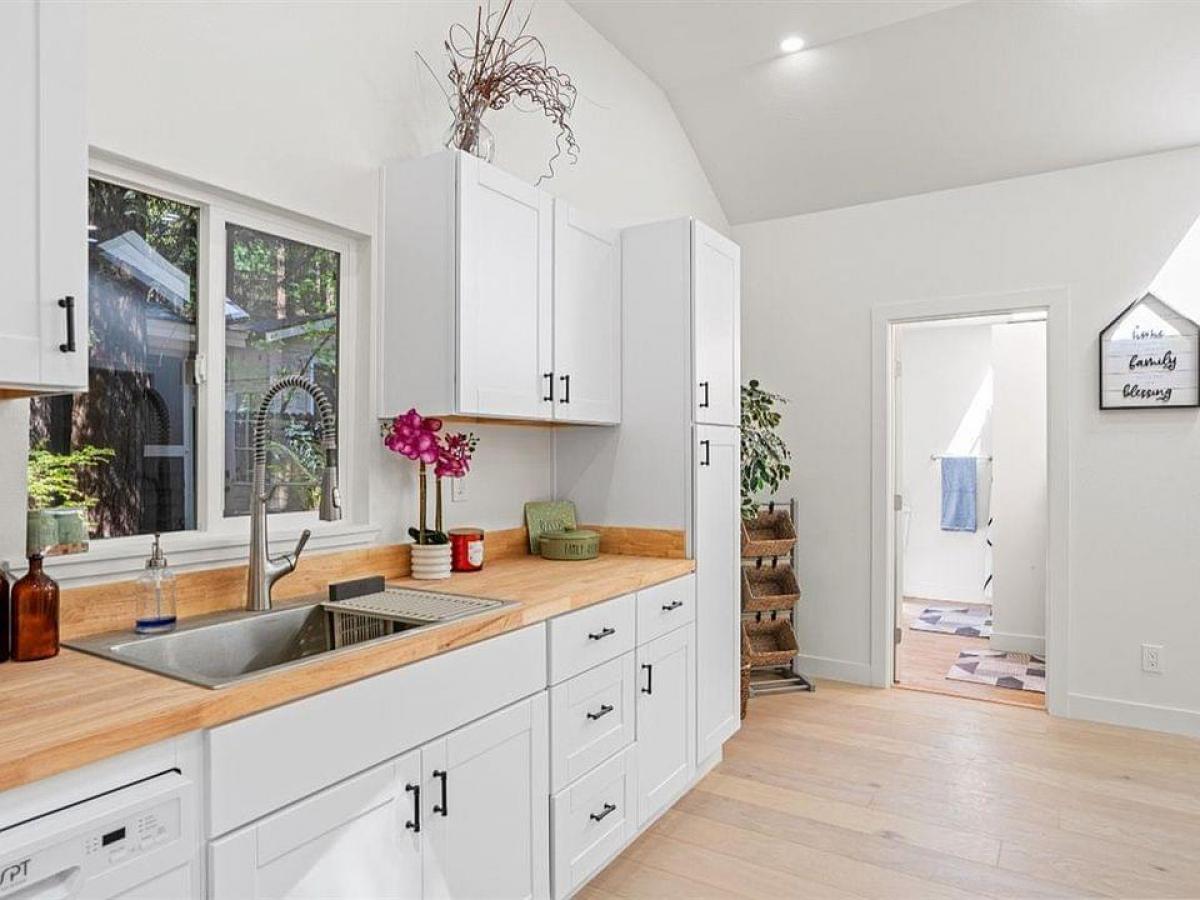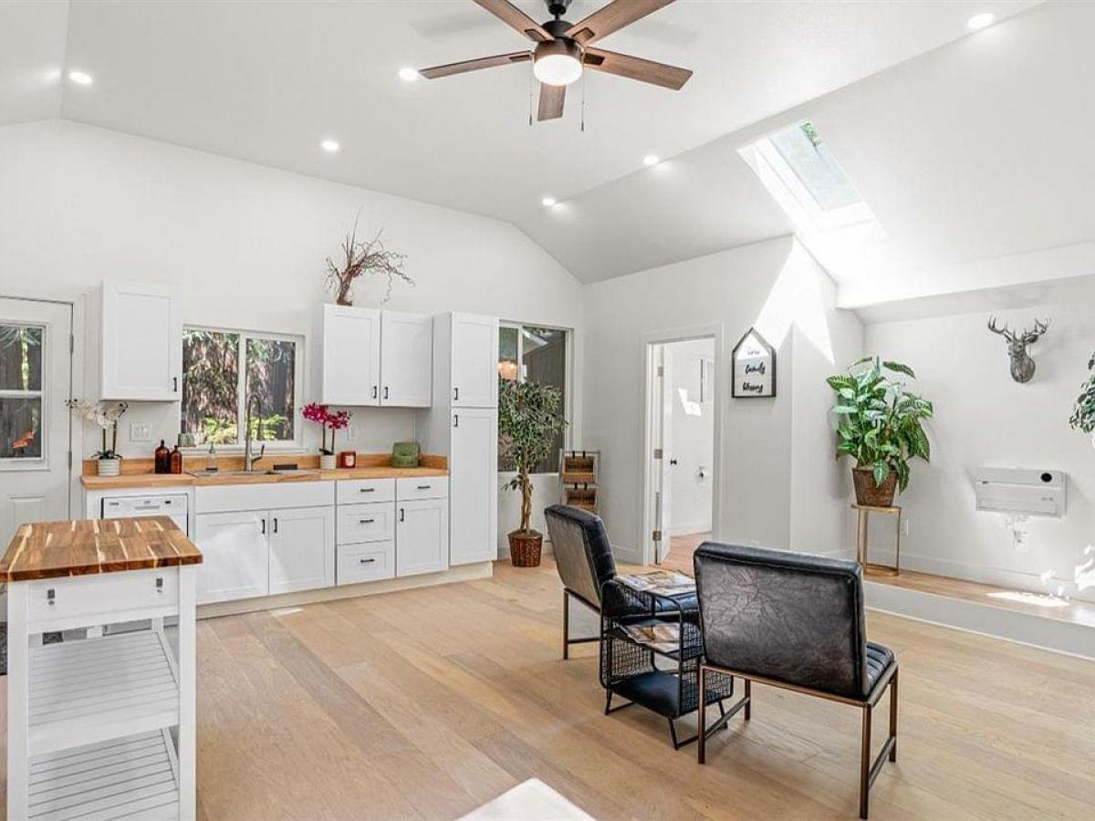 Welcome to this beautifully remodeled 2-bedroom, 2-bathroom home where modern design meets cozy charm! Thoughtfully updated from top to bottom, this turn-key property offers an inviting open floor plan with abundant natural light, sleek finishes, and stylish touches throughout. The kitchen offers tons of butcher block counterspace, loads of storage and a large stainless sink. Both bedrooms are spacious and bright, with the primary suite boasting a stunning en-suite bath and walk-in closet. Need extra space? A charming loft offers the perfect spot for a reading nook, or guest hideaway. Step outside to your private backyard retreat, complete with brick patio and a detached office ideal for a creative workspace, gym, or Zen zone. Additional features include: new flooring, new roof, new windows, new cabinets, new wall heaters, washer/dryer hookups and loads of outdoor space. Open the front gate for extra parking, boat storage or add a play structure. Out of the flood zone and tucked away in a quiet, desirable neighborhood under the redwoods, yet close to local shops, walking distance to Rio Nido Bar and Grill, transit and the Russian River. This is the perfect blend of style, comfort, and flexibility, don't miss your chance to call it home!