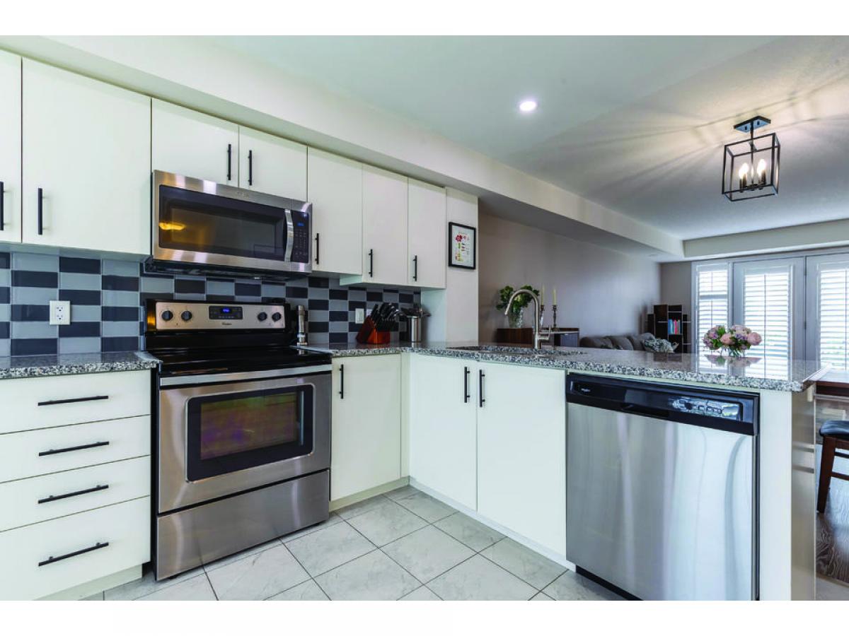 This Gorgeous Townhome in Guelphs Desirable East End Community Featuring 1302SF, 2 Large Bedrooms, 3 Baths, 2 Car Parking with Unique Attached Garage & Great Open Concept Interior Layout Beautifully Finished is Sure to Impress! The Homes, Features, Location, Carefree Living & Very Low Condo Fees Offer Great Value & Ideal for the First Time Buyer, Downsizer or Investor. Greeted by a Lovely Front Brick & Vinyl Elevation with Gardens & Concrete Stairs + Garage in Rear Attached to Home with Additional Driveway Parking Space Gives You Access to Mudroom Entry. Main Floor Delivers a Beautiful Large Open Concept Design Perfect for Entertaining. Large Kitchen/Breakfeast Area Open to Dinette & Family Room, 2 Pc Powder Room Bath + Walks Out to Large Open Terrace with Seating & BBQ Area. Featuring 9ft Ceilings, Pot Lights, Grantie Countertops w/ Breakfeast Bar, Backsplash, SS Appliances, Lovely Laminate Floors, Large Windows Offer Great Natural Light & Include California Shutters. The 2nd Floor Delivers 2 Large Bedrooms Each with Own Bathroom Ensuites, Laundry Room & Large Closets. Primary Bed Features Large Glass Door to Your Walkout Balcony, California Shutters, Ample Closet Space & 4 Pc Ensuite with Granite Counters & Soaker Tub/Shower. The 2nd Bedroom Offers Same Great Size Ideal for Single Bedroom, Office or Spacious Enough to Setup 2 Kids Bed Sets with Ample Closet Space & 3 Pc Ensuite Bath with Glass Enclosed Shower & Granite Counters. Truly a Great Home Just Move in & Enjoy. Attractive Low Condo Fees Covers Ground Maintenance, Low Utility Costs, in Prime Location Located Near Shops, New Playground, Parks, Schools, Steps to Local Transit & Easy Access to Downtown & Ample Visitor Parking in Area. Great Home in Great Area at Great Price Point! A Must See! SS FRIDGE, STOVE, DISHWASHER & OVER THE RANGE BI MICROWAVE. WASHER & DRYER, ALL BATHROOM MIRRORS, ALL ELECTRICAL LIGHT FIXTURES & WINDWOW COVERINGS, WATER SOFTNER, BBQ & SHELF HANGING ABOVE GARAGE.