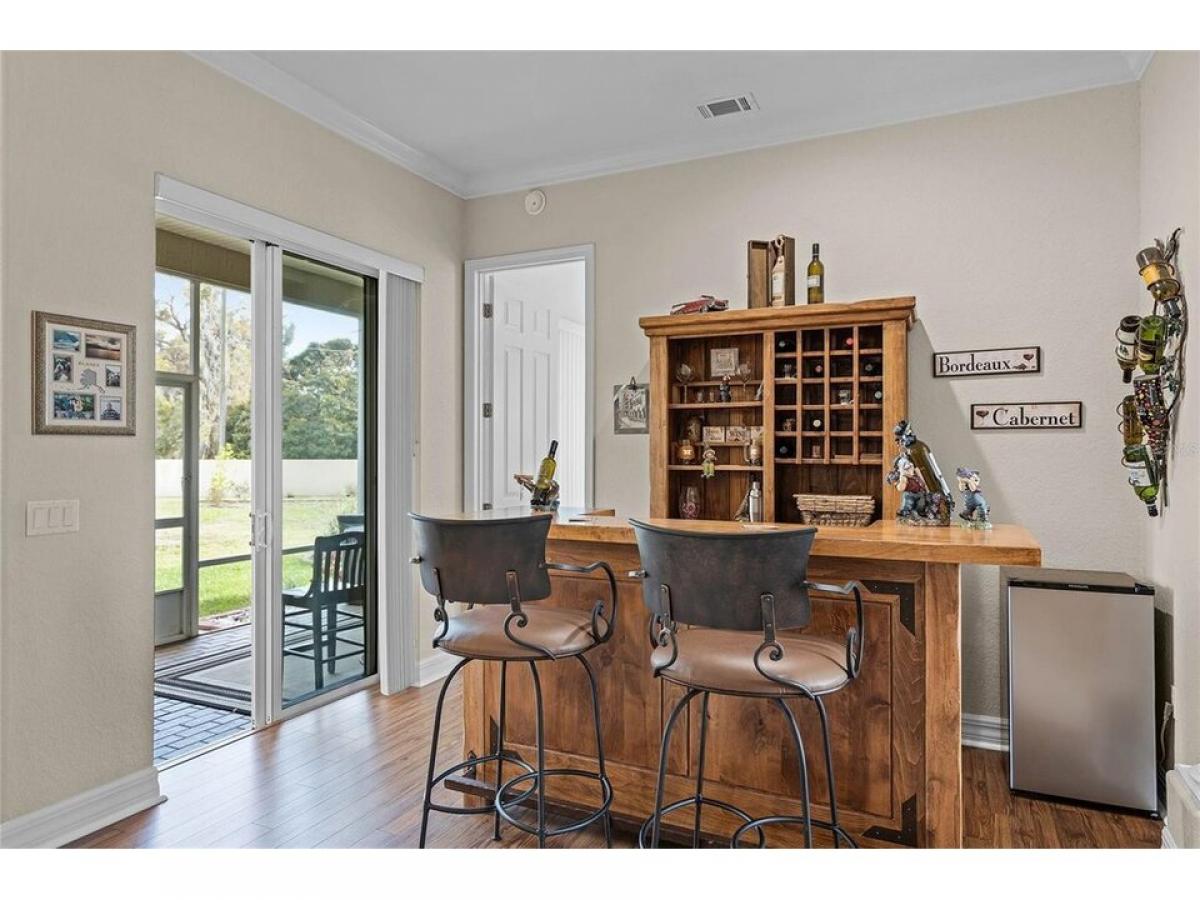 NEW ROOF - 2022! Welcome to this IMMACULATELY MAINTAINED 4 bedroom, 3 bathroom, 2-car garage home with 2,400 square feet of spacious comfort. This rare find is situated on a 0.35 acre lot and is in pristine condition. Plenty of room between houses, in a beautiful serene neighborhood with views of Lake Ariana with spectacular mature landscaping. The extended driveway is perfect for a growing family or for entertaining and the matured landscaping creates an inviting atmosphere. Step inside through your double entry glass doors into a thoughtfully designed 3 way split floor plan with high ceilings and crown molding throughout the home. The bar area is the perfect addition and great for entertaining with a sliding glass door which leads out to your covered oversized L shape screened in lanai and a heated above-ground spa. As you walk past the bar, step into your kitchen, dining room, and living room which all seamlessly flow together. Step out into your covered lanai through another sliding glass door in the living room. Your own private oasis awaits as you enter your spacious primary bedroom with tray ceilings and an ensuite bathroom featuring two separate vanities, a garden tub, and a walk in shower. 3 additional bedrooms and 2 additional bathrooms are in the home offering plenty of space for your family. In addition, walk through the french doors into a bonus space, currently being used as an office but is multifunctional depending on your families needs. Walk outside into your outdoor lanai and enjoy the peace and tranquility of your private and spacious backyard. This home has high elevation and is conveniently located close to I4. 35 minutes drive to Disney World and centrally located between Tampa and Orlando, being an hour drive from each city. Enjoy being in close proximity to both Lake Ariana and Lake Arietta with partial views from the home. Situated in a serene and quite neighborhood. Updates include roof- 2022; AC- 2016; new flooring in office/den installed in 2024 and double-pane windows throughout. This home will check off all of your boxes! Schedule a showing today and make this beautiful home your forever home!