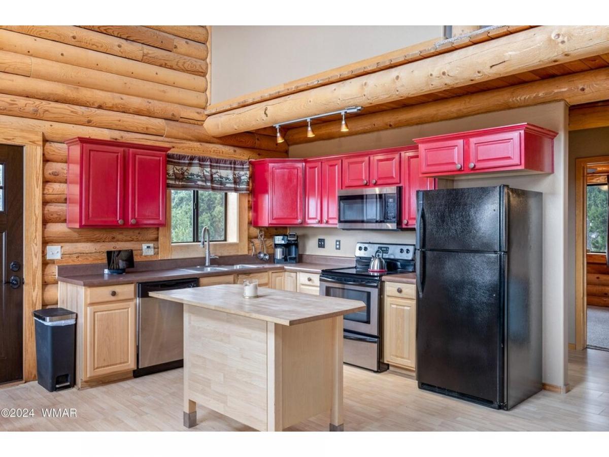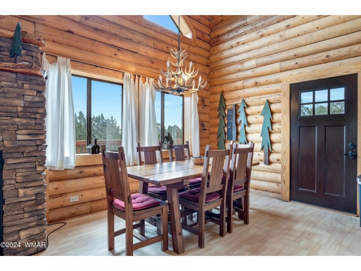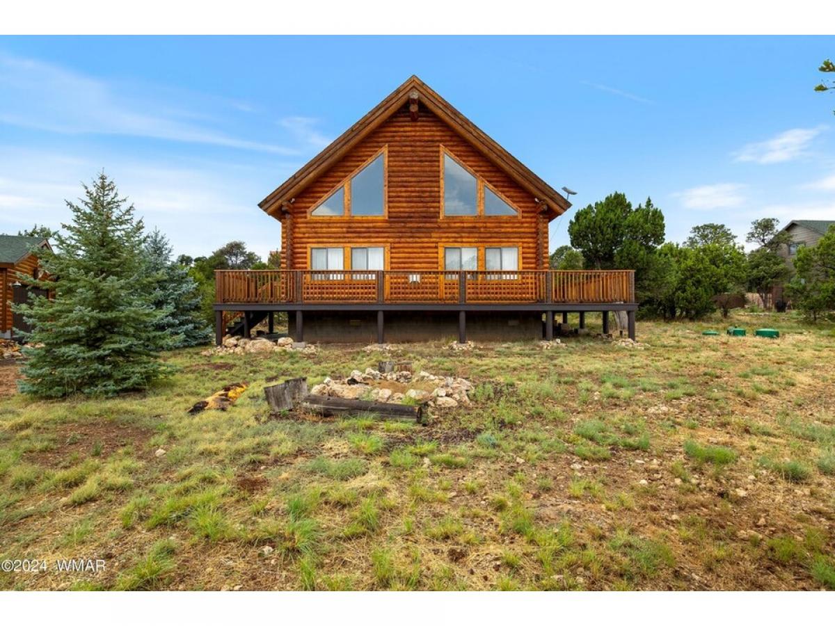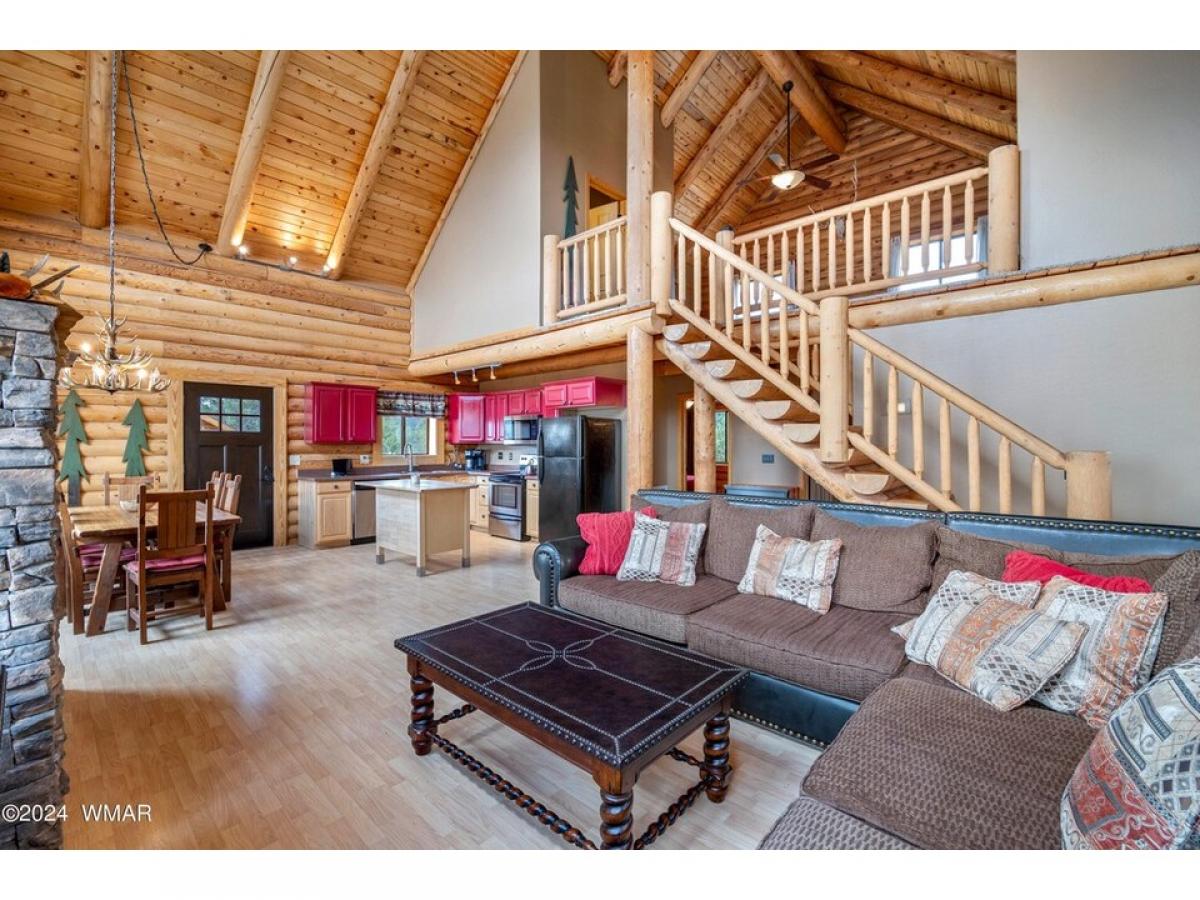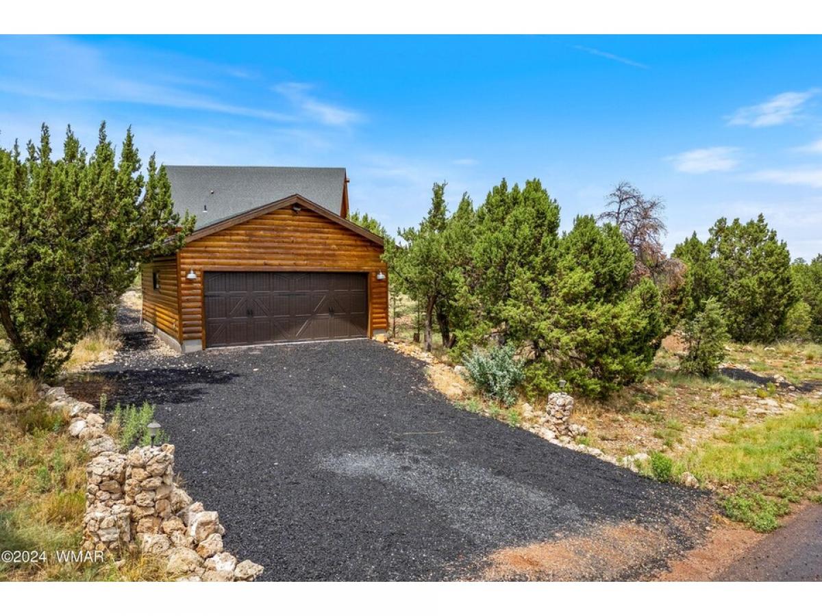 Experience the epitome of mountain living in this custom-built full log chalet-style cabin nestled among breathtaking panoramic views. Boasting three bedrooms and two baths, this home features massive exposed log beams and peel pole log accents throughout. The centerpiece is a rock face gas fireplace, complemented by knotty hickory cabinets in the spacious kitchen. Tons of windows illuminate the open floor plan, with two bedrooms conveniently located on the main floor. The open loft master suite offers unparalleled vistas, perfect for relaxation. Enjoy year-round comfort with central heating and cooling, and entertain on the recently refinished wraparound deck and freshly stained cabin and garage. Additional amenities include a 2-car pull-through garage, all accessible via a paved etc... county-maintained road, located in an HOA to protect your investment, ensuring both luxury and convenience in this mountain retreat. View TODAY!