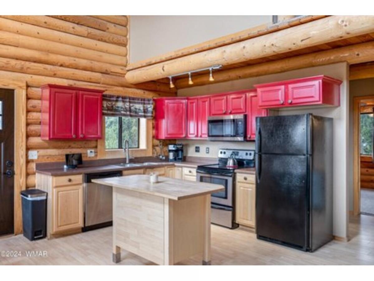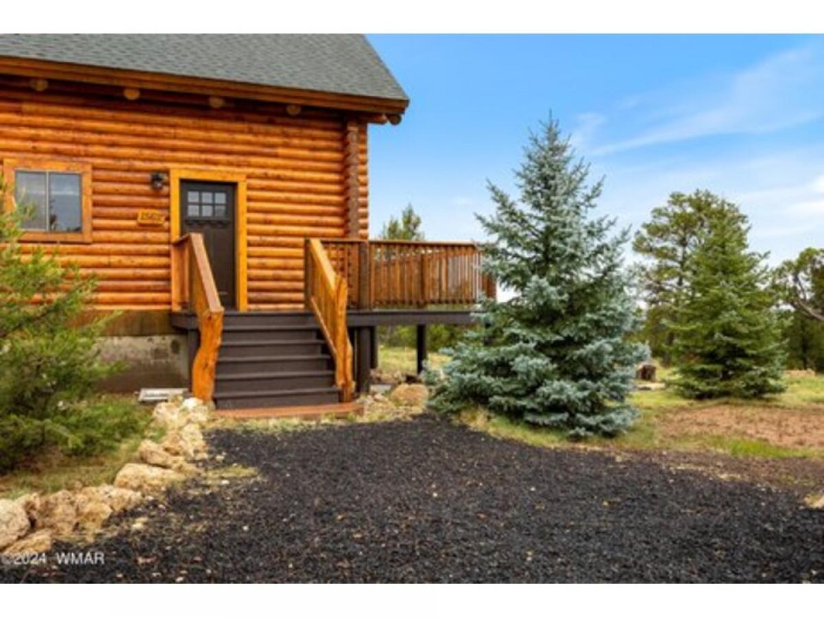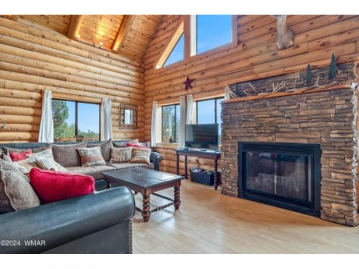 Experience the epitome of mountain living in this custom-built full log chalet-style cabin nestled among breathtaking panoramic views. Boasting three bedrooms and two baths, this home features massive exposed log beams and peel pole log accents throughout. The centerpiece is a rock face gas fireplace, complemented by knotty hickory cabinets in the spacious kitchen. Tons of windows illuminate the open floor plan, with two bedrooms conveniently located on the main floor. The open loft master suite offers unparalleled vistas, perfect for relaxation. Enjoy year-round comfort with central heating and cooling, and entertain on the recently refinished wraparound deck and freshly stained cabin and garage. Additional amenities include a 2-car pull-through garage, all accessible via a paved etc... county-maintained road, located in an HOA to protect your investment, ensuring both luxury and convenience in this mountain retreat. View TODAY!