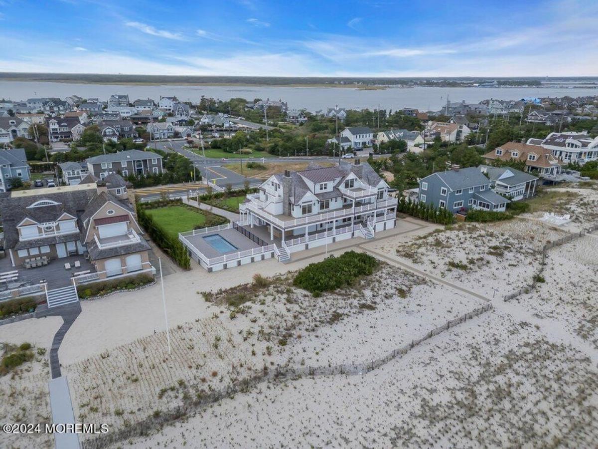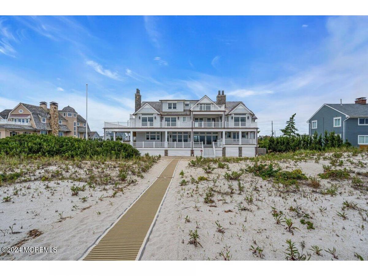 Experience unparalleled luxury in this oceanfront estate featuring 175 feet of pristine private beach and more than 13,000 sq feet of combined indoor/outdoor living space. This one-of-a-kind refined home boasts 9 bedrooms, 10 bathrooms, dual laundry rooms, a 5-stop elevator and an open floor plan that seamlessly blends family comfort with sophisticated entertaining. Every detail of this bespoke residence exudes elegance from the grand open kitchen offering a spacious walk-in entertainment pantry and secondary kitchen. Custom millwork and inset cabinetry enrich the interior, while soaring ceilings and expansive private balconies off each bedroom provide a luxurious sense of space and seclusion. The sun-drenched exterior includes multiple decks, an elevated outdoor kitchen, bar, custom gunite pool with sundeck, lounge, an outdoor bathroom and shower. The seamless integration of indoor and outdoor living is showcased with wraparound decks on each level and an additional balcony on the third floor. Enjoy breathtaking panoramic views of the ocean#039;s sunrise and the bay#039;s sunset from the expansive covered porches and decks, embodying the ultimate in resort-style living.