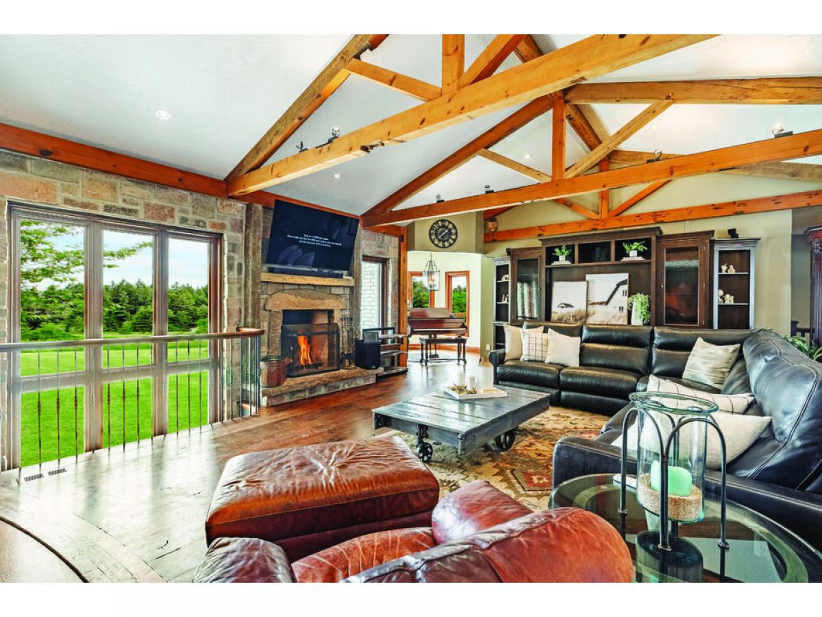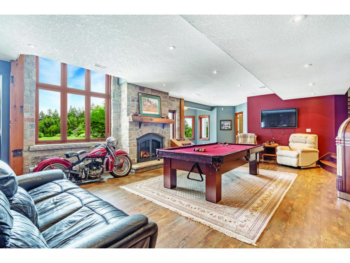 Spectacular is the ideal word to describe this fabulous custom 88 acre rural estate property, now including an unprecedented $50,000 credit for cosmetic updates provided by Sellers to Buyers upon closing. No expense has been spared throughout this magnificent bungalow comprising 8,000 square feet of living space. Enter through hand carved hardwood front entrance doors to a very inviting great room with custom beams, wide plank walnut hardwood flooring with inlays and an impressive Indiana stone wood burning fireplace open to a kitchen/dining area that was designed to host large family get-togethers or parties. The primary retreat is what dreams are made of featuring an Indiana stone gas fireplace, sitting area and spa-like ensuite. Completing this level is a guest bedroom/office with ensuite and separate self contained apartment with 2 bedrooms, full kitchen/sitting area with gas fireplace and in-suite laundry. Lower level offers 2 additional bedrooms, large gym, wine room, theatre room and large recreation area with expansive windows and walkout to a gorgeous rear property. Sit on the oversized IPE deck, in the screened in porch or by the custom Indiana stone outdoor wood burning fireplace and take in the most incredible views this property has to offer. For the hobbyist there is a 40X60 heated workshop with 75 year 3 layer system shingles. Limestone walkways and stunning landscape. What a lifestyle!