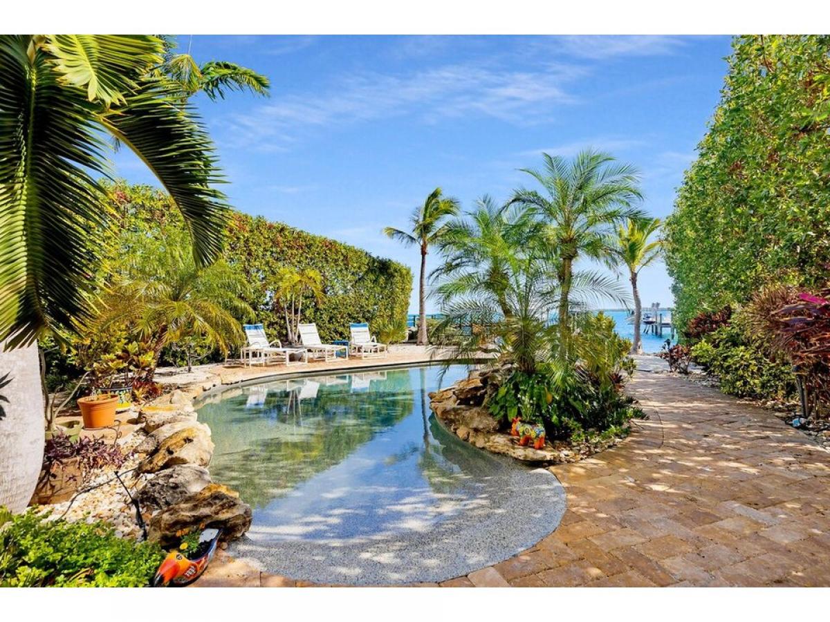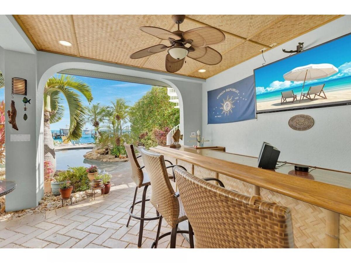 Open Ocean 3/2 Concrete Pool Home with Dockage in the heart of historic Old Tavernier! Enjoy expansive ocean views, year-round ocean breezes, deep water dockage and a stunning custom pool by D#039;Asign Source with relaxing rock waterfall, beach entry and swim jet in the deep end. After a long day of fishing, sip a cocktail in the pool or lounge poolside at your custom bar and tiled cabana area below the home in the shade. Also downstairs is a storage area and a tiled foyer entry to welcome you into the home. Upstairs on the first level is a spacious great room with open kitchen with custom cabinets and Corian counters, dining nook area and large ocean view living room. A wide and shady oceanfront balcony extends the entire length of the great room. with plenty of room for outdoor dining and grilling with a gorgeous view of the sparkling Atlantic. Also on this floor are the laundry area, a full bath and two guest bedrooms. On the top floor is a sprawling primary suite with soaring ceilings and breathtaking open ocean views. There is plenty of room here for an office plus separate sitting area, exercise equipment or even a nursery in addition to your king bedroom set. There#039;s also a deep walk-in closet and roomy primary bathroom with double sink, soaker tub and shower. The all concrete home with metal roof has impact windows and sliding glass doors plus accordion shutters for added protection. The yard is fully fenced and gated and the neighborhood offers an oceanfront community park and two local restaurants within walking distance plus quick and easy access to Tavernier Towne shopping center, fine dining, a movie theater and more. Call today!