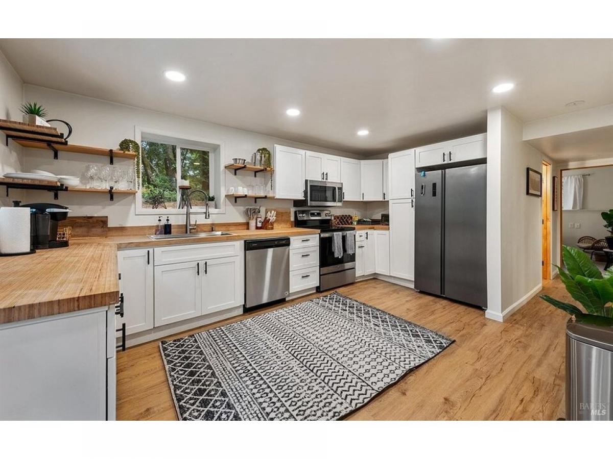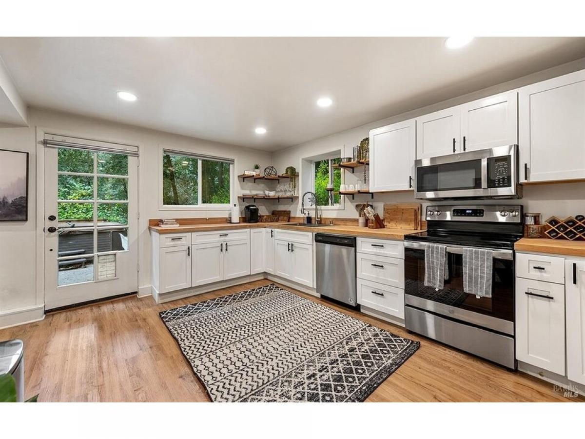 Tucked away in the redwoods, yet with an abundance of light, this charming home with separate units offers a versatile floorplan in one of Guerneville#039;s most desirable neighborhoods. This dual-suite retreat offers privacy, comfort, and easy access to the Russian River. Each level has its own entrance, updated kitchen, full bath, an abundance of natural light and its own distinct charmcomplete with cozy wood-stoves for cool evenings. The lower level opens to a private wraparound deck with a hot tub under the trees, while the upstairs suite features its own sunny balcony. Recent upgrades throughout make this a turnkey option for full-time living, a weekend getaway, or a flexible live/rent setup. Located in Riverlands Heights with footpath access to the river, plus a nearby park with tennis and basketball courts. Just a short stroll across the footbridge lands you in downtown Guernevillefull of charm, dining, and local favorites. A must see!