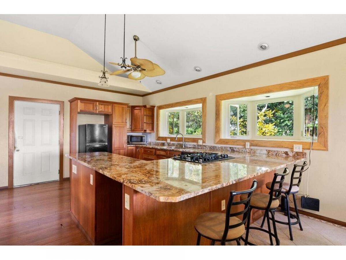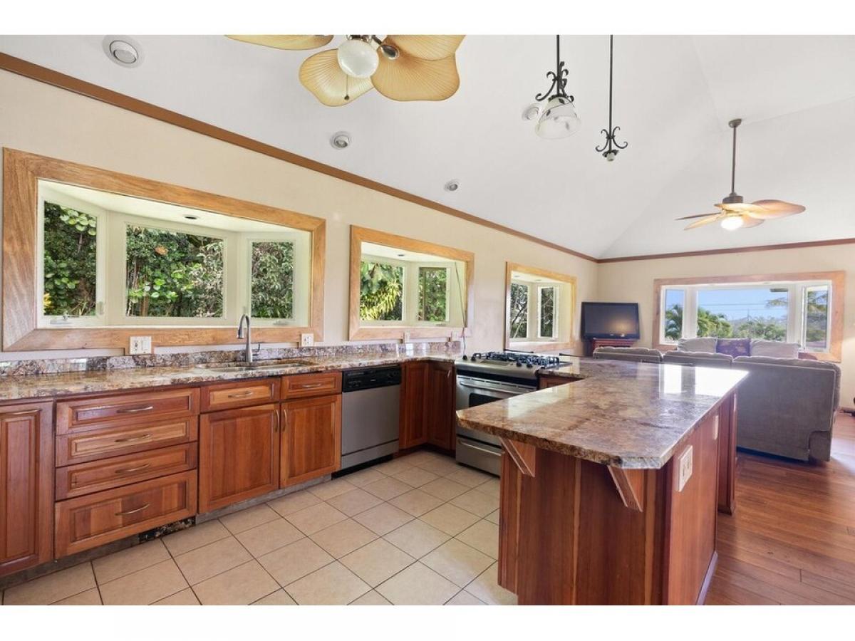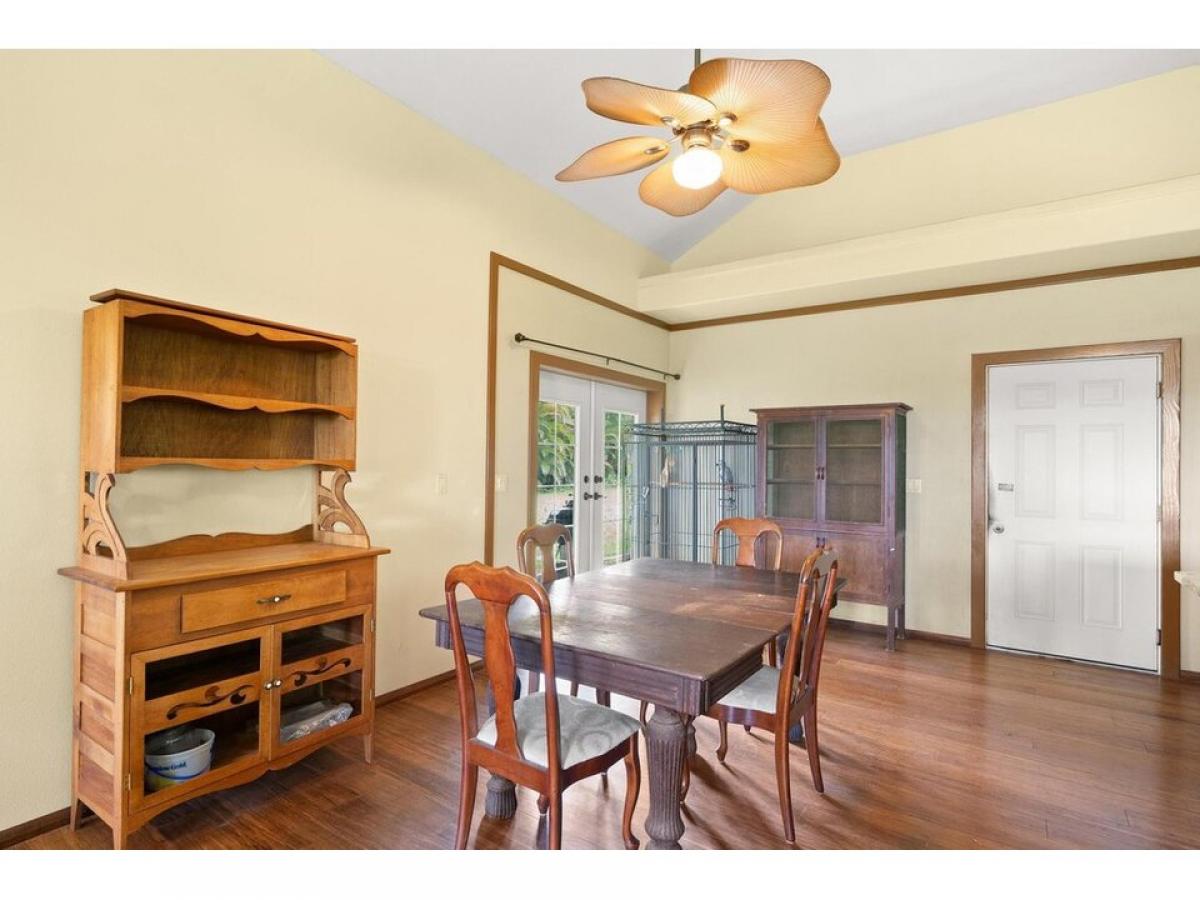Discover the charm of this custom-built 2-bedroom, 2.5-bath home, designed with purpose, care, and intent. Sitting on an expansive lot, this home offers thoughtfully crafted features and premium finishes throughout.Interior Highlights:- Primary Suite: Features a Koa wood vanity, an area for a makeup station, a walk-in closet, and a luxurious walk-in shower.- Second Bedroom: Privately situated across the garage and separated from the main living area, offering a tranquil retreat with travertine stone flooring and a private bathroom.- Kitchen: Stunning moonrise granite countertops, cherry cabinets, and mango wood trim around the windows create a unique and inviting space.- Additional Details: All windows are tinted for privacy and energy efficiency, with extra electrical outlets thoughtfully placed throughout the home. Vaulted ceilings, bay windows, and French doors leading to the backyard complete the elegant and functional design.Exterior and Outdoor Living:- A 9-foot overhang in the backyard is specially constructed without support poles, creating an open and unobstructed entertainment area.- The backyard features a rock wall entertainment space with a built-in BBQ pit, perfect for gatherings.- An unfinished shed provides ample storage and space for woodworking or hobbies.- Approximately half an acre of cleared, unplanted land waiting for your vision.Unique Features:- A beautiful Polynesian-pitched roof adds a distinctive architectural flair.- An unconnected 400-foot deep well, offering a sustainable water source.- The property is located just 800 feet from the nearest fire hydrant.Built with intention and attention to detail by the owner, this home seamlessly combines beauty and functionality, making it a truly one-of-a-kind property.