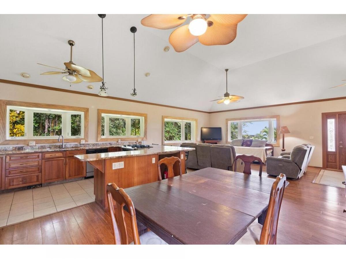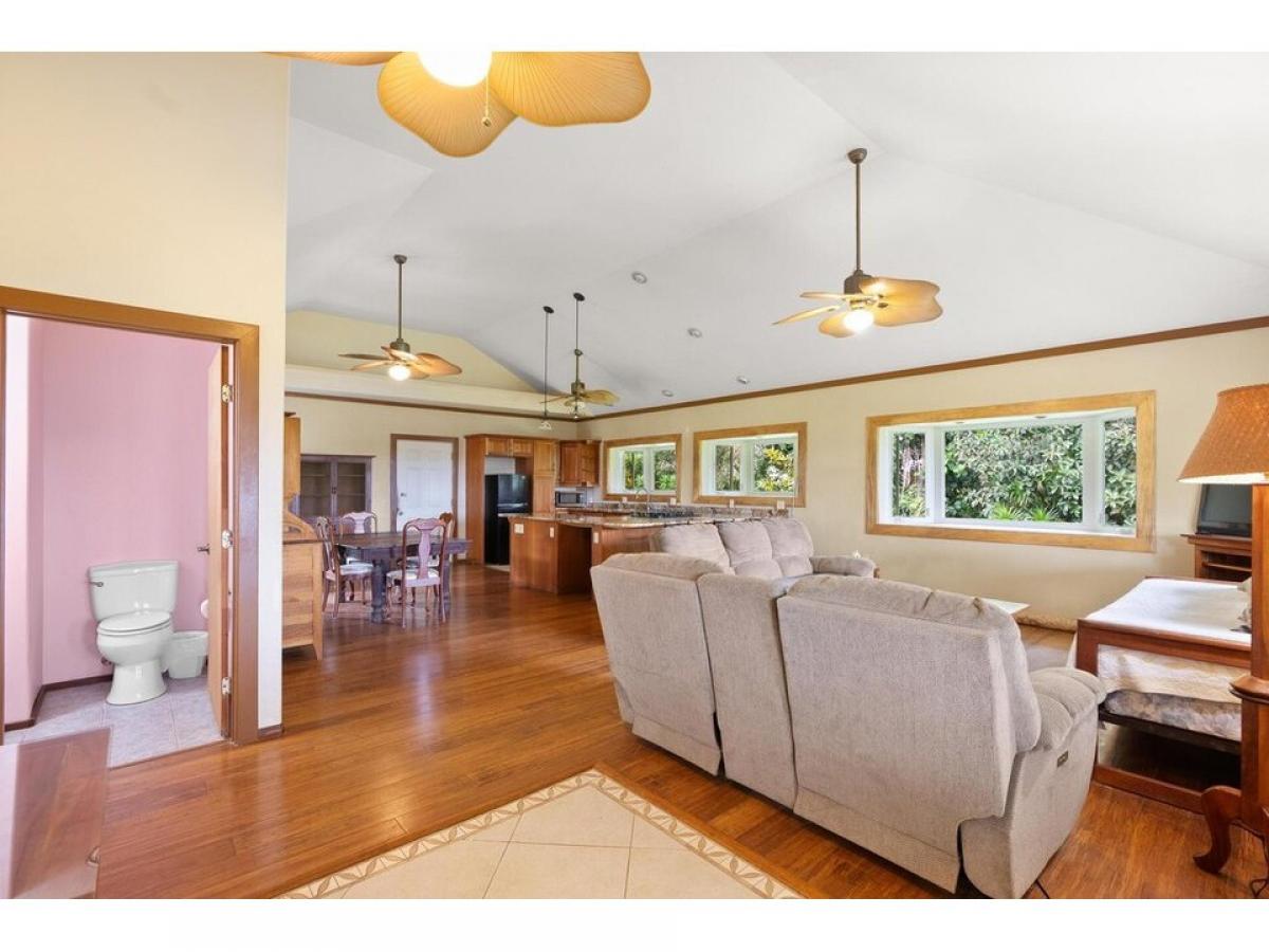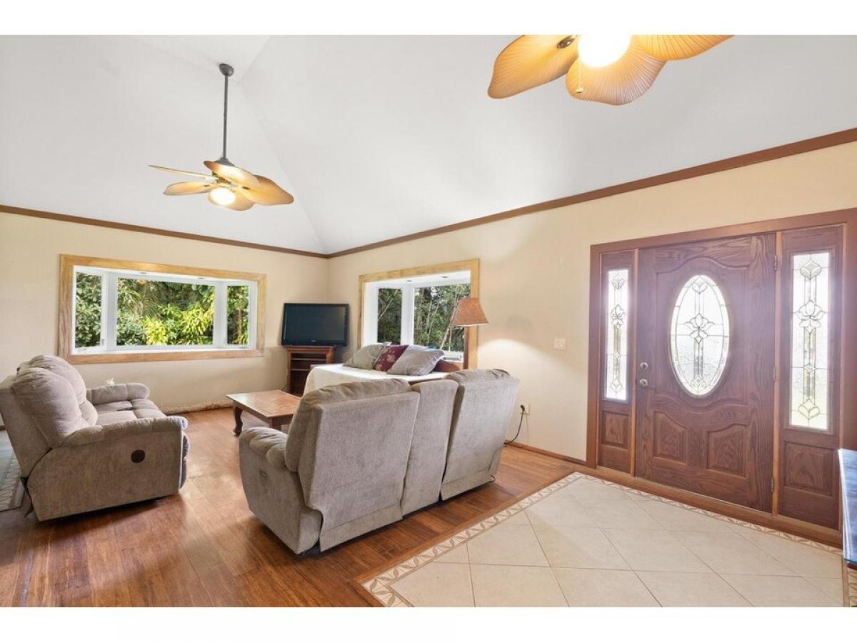 Discover the charm of this custom-built 2-bedroom, 2.5-bath home, designed with purpose, care, and intent. Sitting on an expansive lot, this home offers thoughtfully crafted features and premium finishes throughout.Interior Highlights:- Primary Suite: Features a Koa wood vanity, an area for a makeup station, a walk-in closet, and a luxurious walk-in shower.- Second Bedroom: Privately situated across the garage and separated from the main living area, offering a tranquil retreat with travertine stone flooring and a private bathroom.- Kitchen: Stunning moonrise granite countertops, cherry cabinets, and mango wood trim around the windows create a unique and inviting space.- Additional Details: All windows are tinted for privacy and energy efficiency, with extra electrical outlets thoughtfully placed throughout the home. Vaulted ceilings, bay windows, and French doors leading to the backyard complete the elegant and functional design.Exterior and Outdoor Living:- A 9-foot overhang in the backyard is specially constructed without support poles, creating an open and unobstructed entertainment area.- The backyard features a rock wall entertainment space with a built-in BBQ pit, perfect for gatherings.- An unfinished shed provides ample storage and space for woodworking or hobbies.- Approximately half an acre of cleared, unplanted land waiting for your vision.Unique Features:- A beautiful Polynesian-pitched roof adds a distinctive architectural flair.- An unconnected 400-foot deep well, offering a sustainable water source.- The property is located just 800 feet from the nearest fire hydrant.Built with intention and attention to detail by the owner, this home seamlessly combines beauty and functionality, making it a truly one-of-a-kind property.