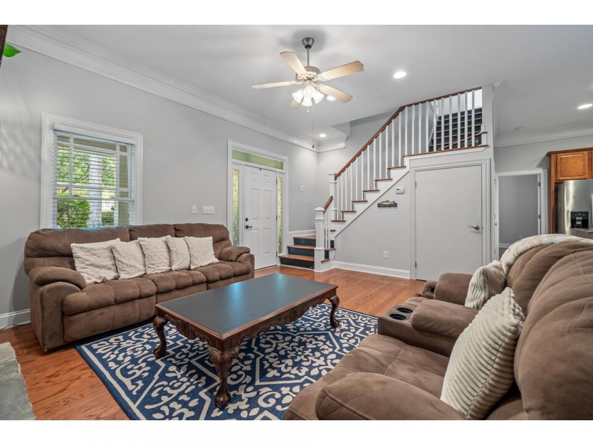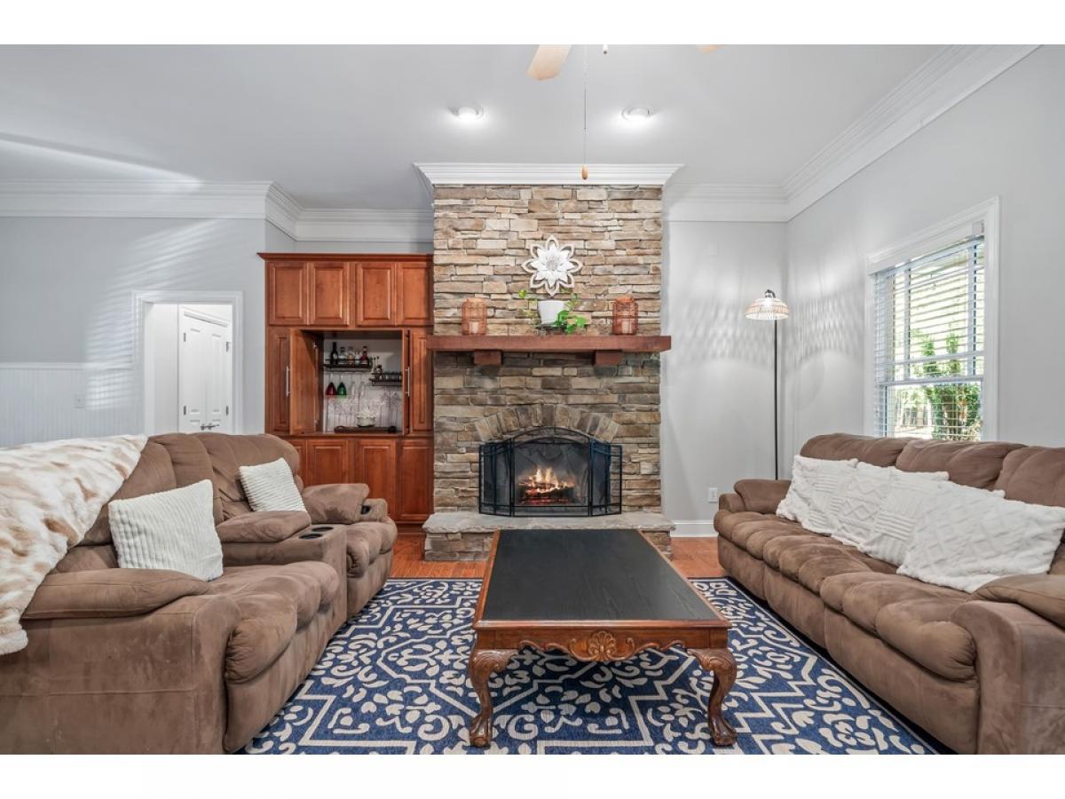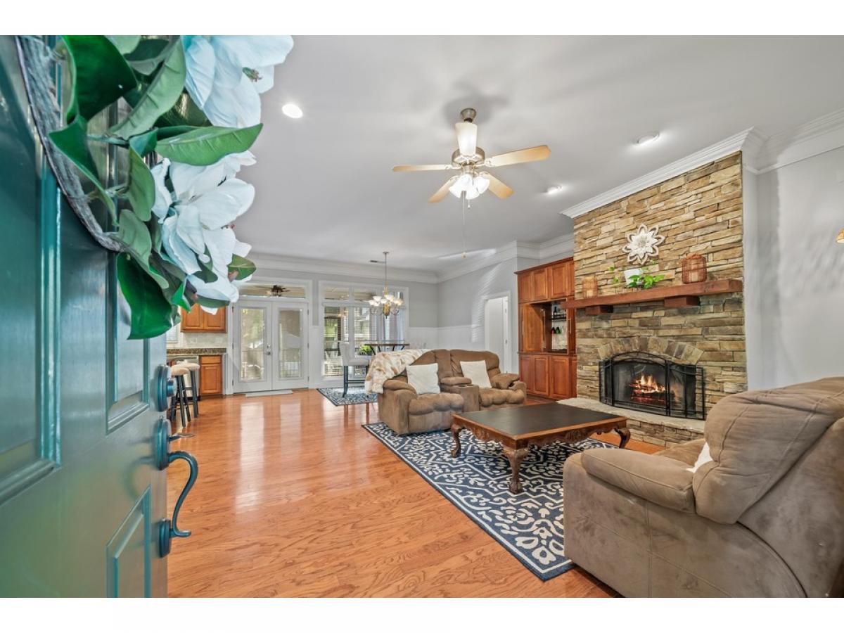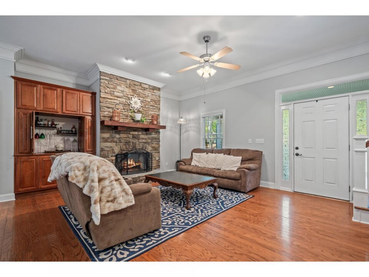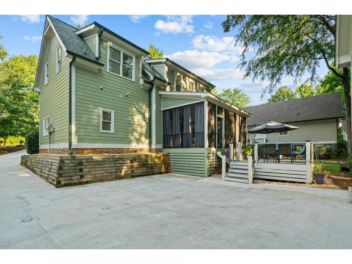 Charming Lake Access home in Parkside at Cuscowilla. This 4 BR / 4 BA home offers two ensuite bedrooms on the main level plus a third bedroom upstairs with a full bath. There is also room for an office plus a roomy additional living area / bonus space. The kitchen is open to the living room with a masonry fireplace and built-in cabinets. There are granite counter tops, stainless steel appliances, crown molding, and hardwood floors. The outdoor living area offers a private screened porch plus an open deck overlooking the large back yard that can accommodate a swimming pool. There is also an apartment above the garage with a full bath. The home is located across the street from a POA maintained grassy park with a firepit and a fountain pond. Only a short golf cart ride away from the Clubhouse, swimming pool and boat docks. Great home at a great price and a Cuscowilla Golf Membership is available.