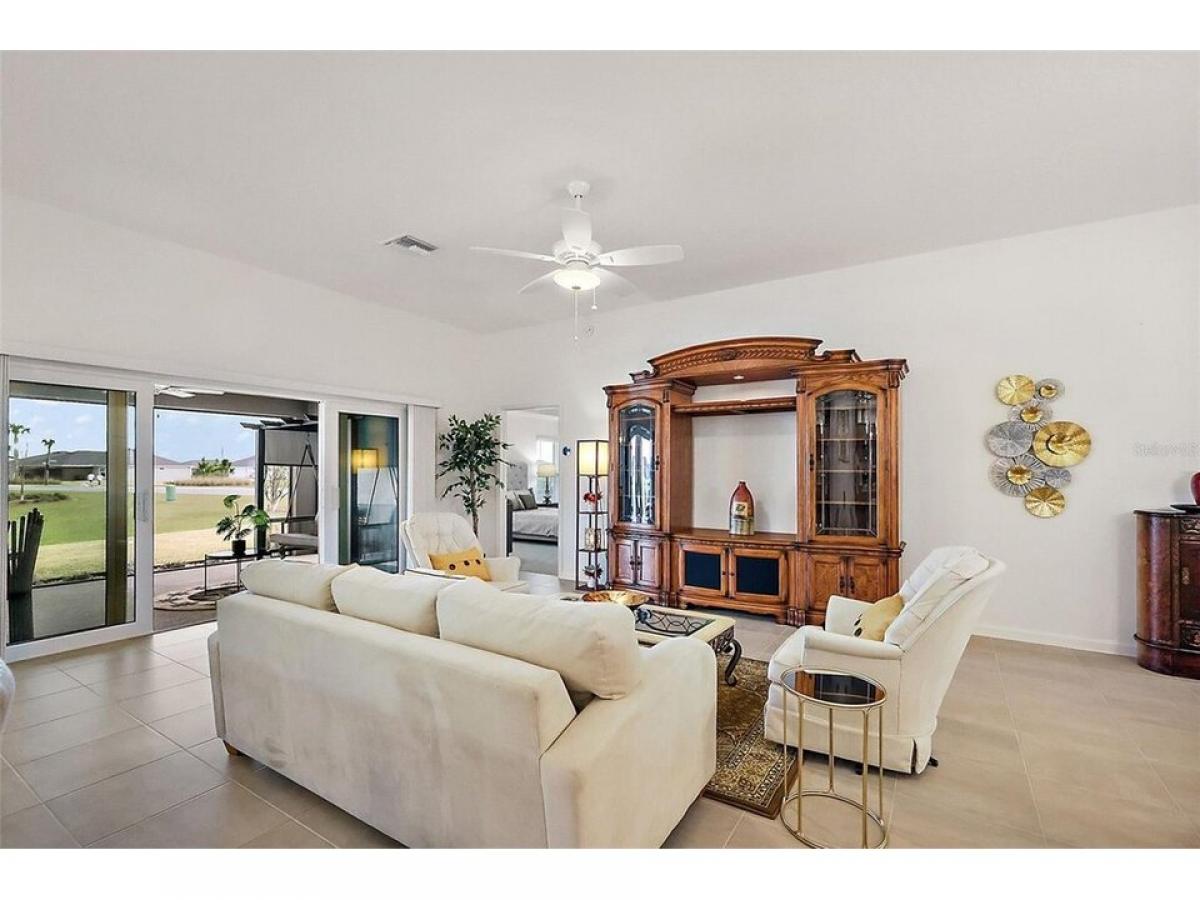Grab your bags, here is a chance for you to live in the paradise of Moultrie Creek with a water view where the lots sold out within minutes and a short drive to the new mega center of East Port. This almost new (less than a year) Turnkey breathtaking water view 3/2 Designer home with room for a pool is sure to wow the lucky new owner. As you enter the front door you will see the stunning water view and the ambiance of this spacious move in ready home. The expanded lanai invites comfort and exudes modern living at its best. You#039;ll enjoy a perfect setting for relaxing and entertaining guests. The welcoming wide foyer showcases the open floor plan and displays this nicely furnished home. This home includes the much sought after 2.5 garage, quartz throughout, upgrades landscaping and stainless-steel appliances with an instant hot gas water heater. Don#039;t miss out on this home location location location minutes from golf, recreation centers, shopping including Eastport the Mega center, town square. Come view this for yourself home is vacant and easy to show. Book your showing and start living the great life. Bond payment 43,083, maintenance fee $619, Village Fire and rescue $239 all annually and taxes currently $1,385 which at this time includes the ad valorem taxes only. The Information here is deemed to be correct but should be verified by the buyer.