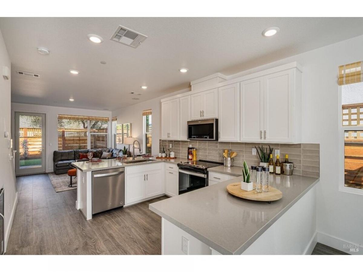 New Homes at City 44. Plan 1 consists of 1545 SQFT with 3 bedrooms, 2.5 baths. Fully upgraded including custom built cabinets with soft close doors/drawers, engineered wood flooring, stone countertops and tiled bathroom floors. Kitchen features stainless steel appliances. All complete with a 2-car garage and private yards. Homes are solar electric and include air conditioning. Located just 10 minutes from Downtown Santa Rosa, just blocks from shopping center and with easy freeway access nearby. Solar included in purchase!