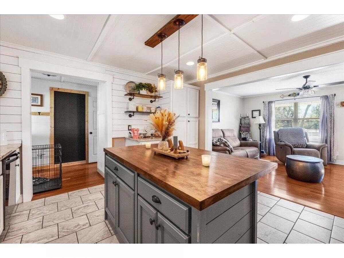 Location! Seize the chance to own a beautifully renovated 2022 home in the heart of Kimball, TN! Step in from the covered front porch to a living room adorned with gorgeous hardwood floors and abundant natural light. The living room flows seamlessly into the dining room and kitchen, creating an expansive open space. Be charmed by the classic kitchen featuring stylish two-tone cabinets that blend elegance with a rustic, welcoming ambiance. The kitchen boasts granite countertops and lovely stained wood shelving for an added rustic flair. This home includes three bedrooms and a sizeable laundry room. Relish your morning coffee on the covered back patio while gazing at the mountains. Nearly 3/4 of an acre provides ample space for gardening. A large shed offers storage or workshop potential, complemented by an oversized carport and a gravel pad for RV parking. The home features low-maintenance brick, easy-to-clean vinyl windows, and a metal roof. The expansive master bedroom has its own entrance through French doors leading to the deck. The master bath, designed for handicap access, is functional but awaits your personal touches. Schedule your viewing of this home today!