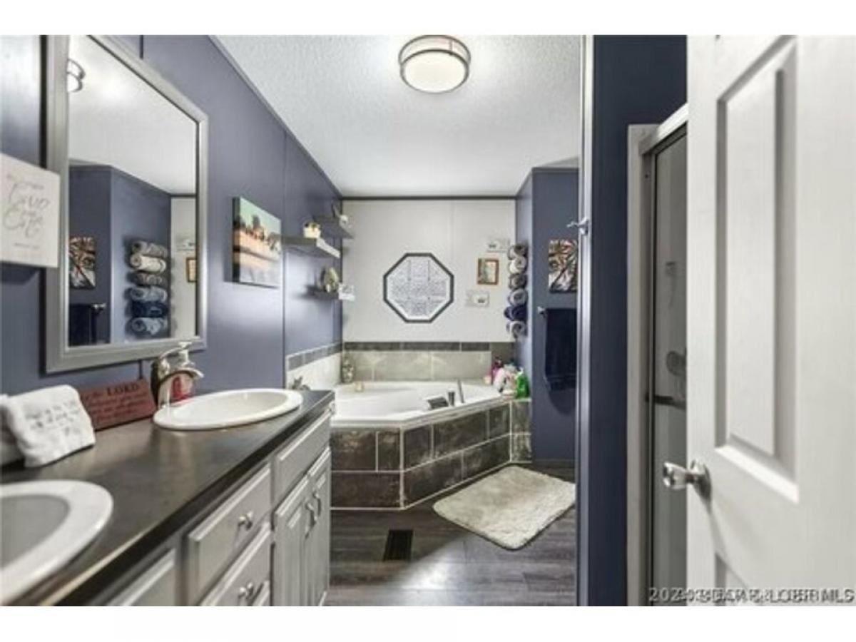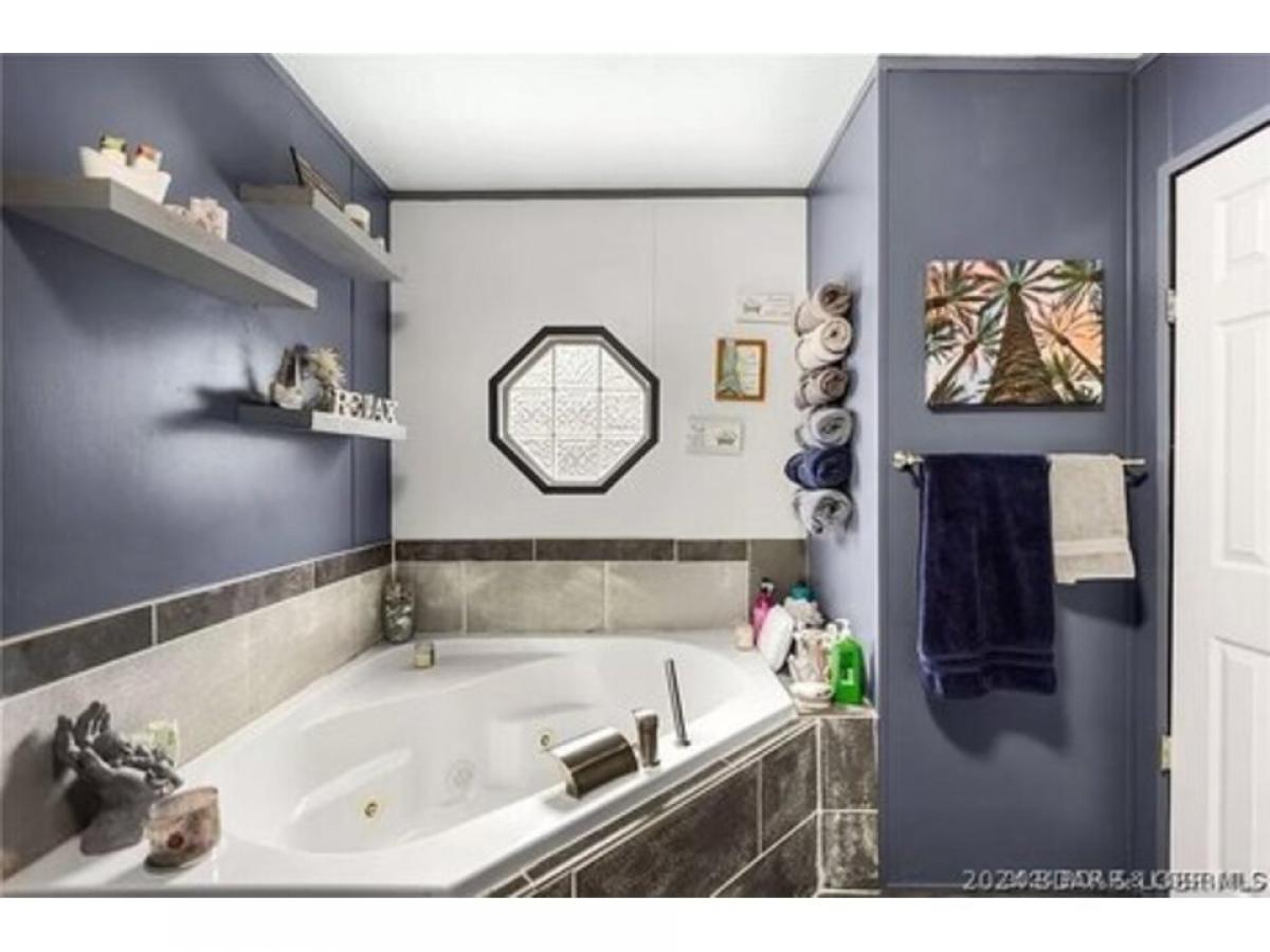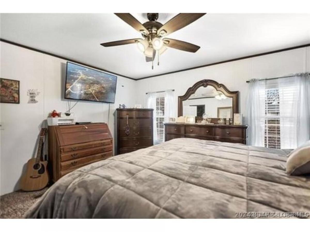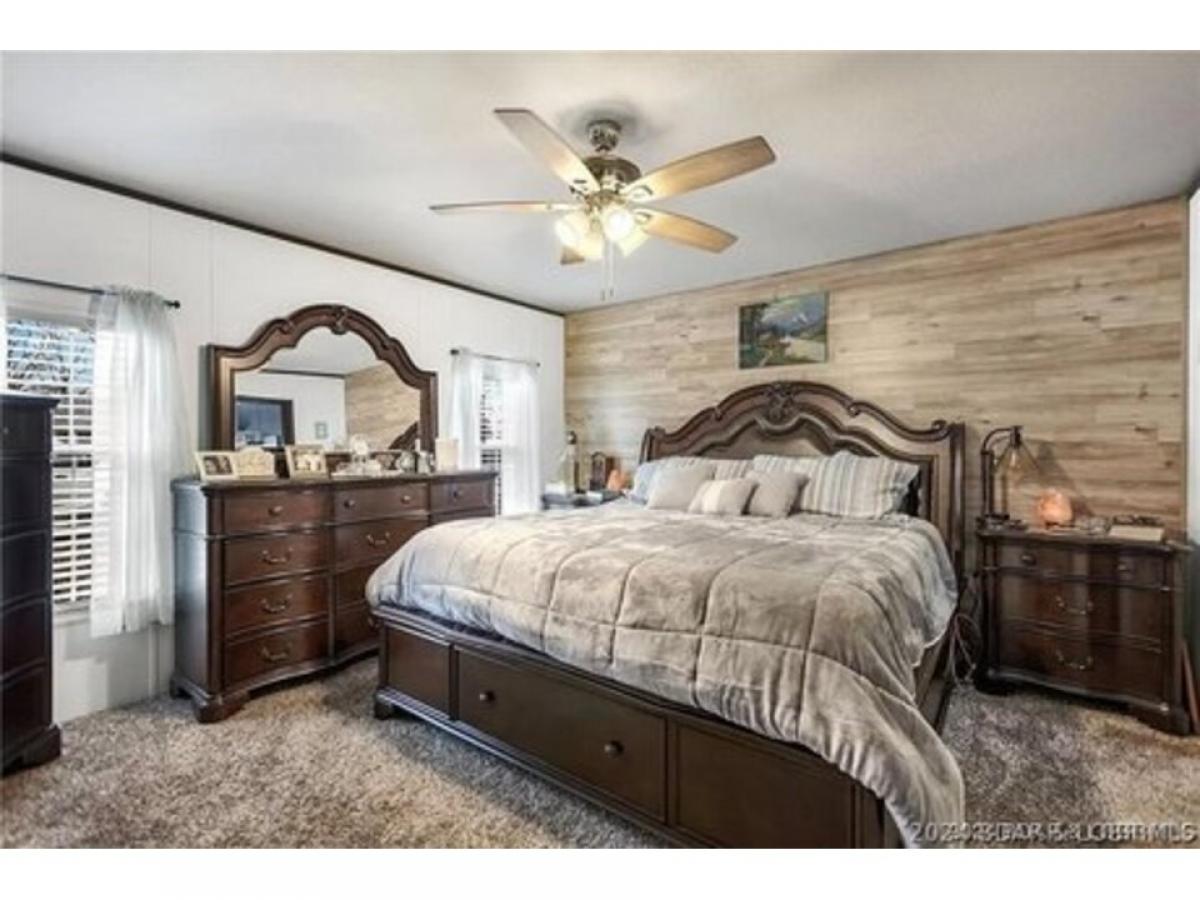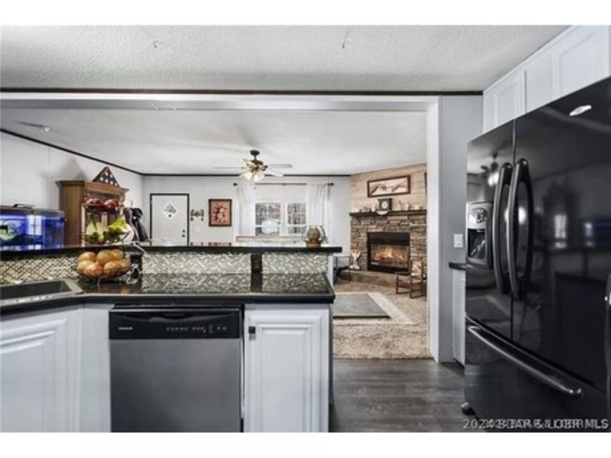 Beautiful home slightly off "A" Road, only 2.5 miles down A Road. This is a spacious manufactured home with a cozy wood burning fireplace in living room. Four Bedrooms and two full baths, this is a well maintained home with lovely deck on back of the home, with a above ground pool that is included in this price. New carpet, paint, tiled shower in guest bathroom and soaking jetted tub in beautifully tiled master bedroom. All updated Kitchen appliances, New money saving, HVAC heat pump, new 50 gal. water heater. Large fenced in yard for children/pets, etc. Includes storage shed. Covered upper deck, lower deck is uncovered and leads to pool and hot tub. Patio furniture is included. Ready for summer fun. McCubbins Point is very close with camping sites and quiet cove for swimming and boating and fishing. Own a piece of paradise at the Lake of the Ozarks.