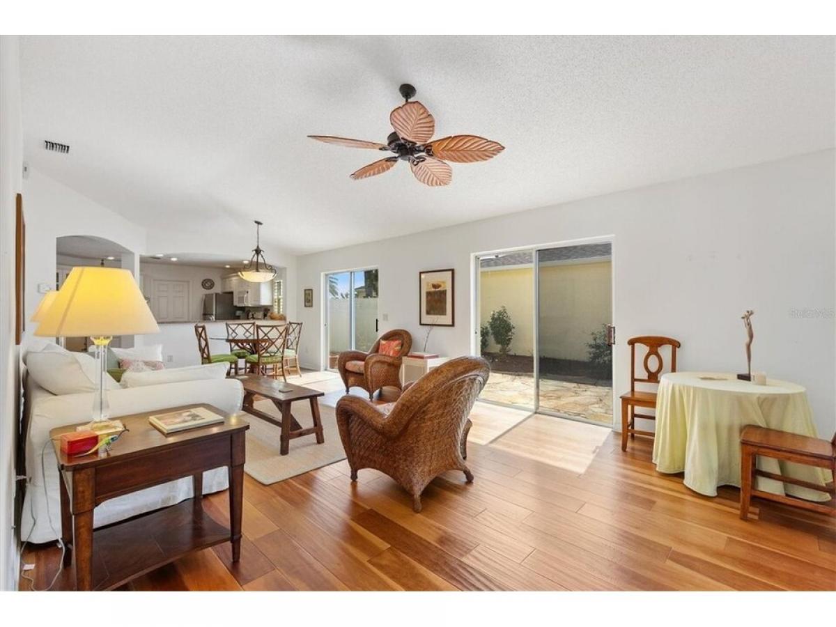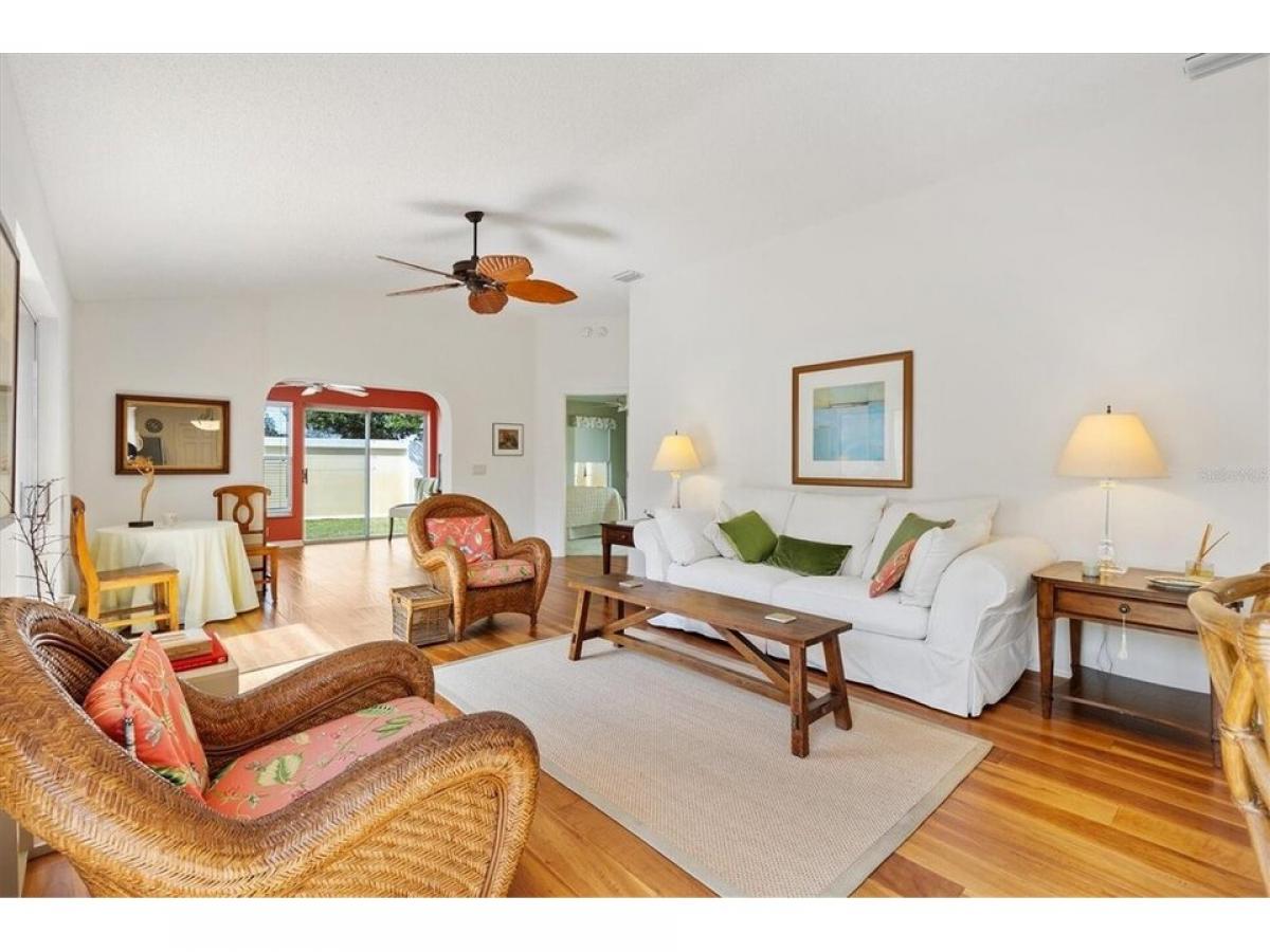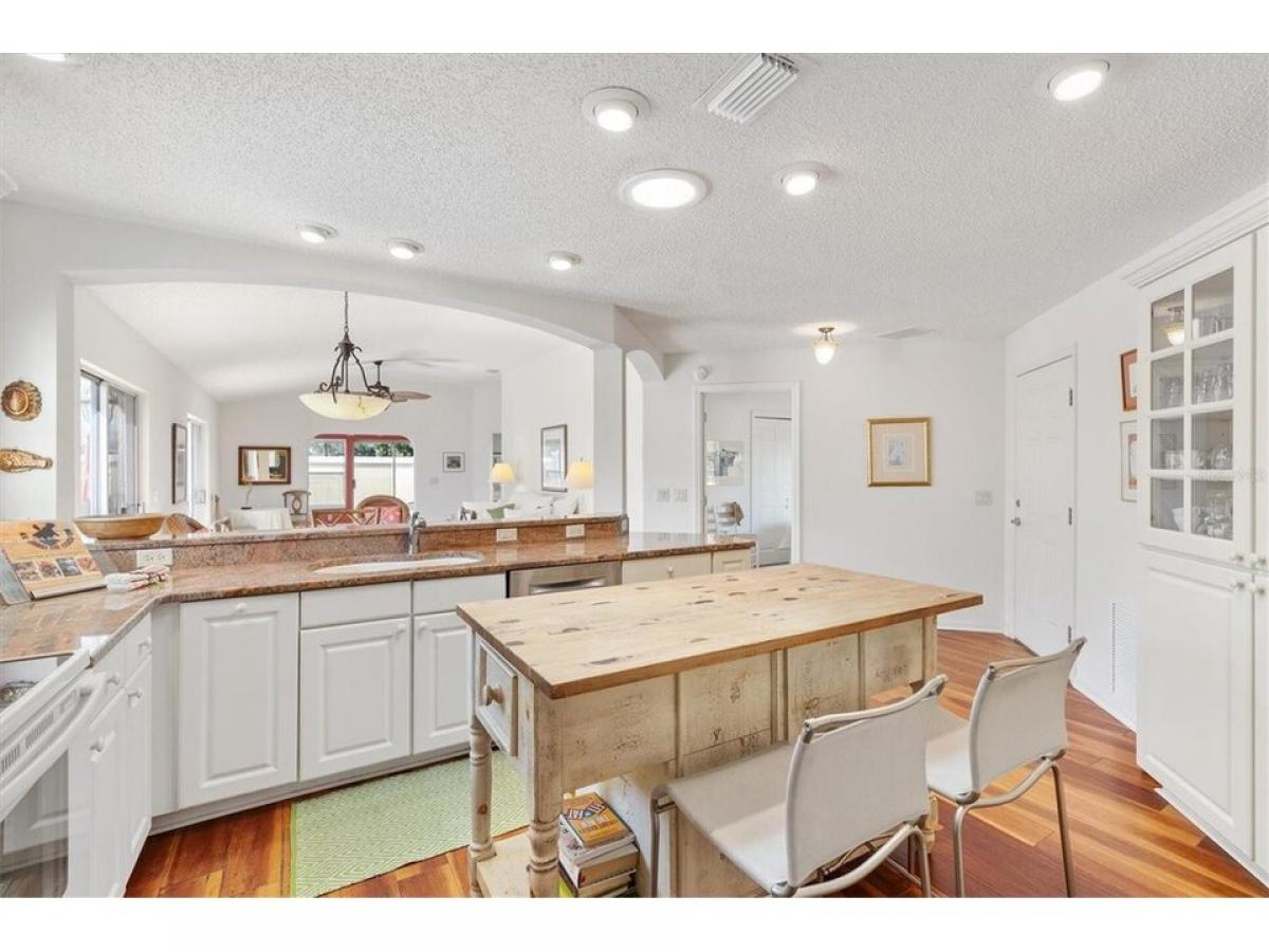 EXPANDED 2-CAR GARAGE (575 sq ft) Courtyard Villa offered TURN-KEY, in a prime location! The garage is extended on both sides (23x25), on a private CORNER LOT at the END OF THE STREET, and close to Lake Sumter Landing. Unique and beautifully landscaped outdoor spaces with access to both sides of the villa. The relaxing feeling of home is present in the timeless KITCHEN with additional CUSTOM CABINETRY, granite countertops, and a movable CUSTOM ISLAND with storage and additional counter space. The Kitchen and entry in this original Beauregard floor plan have been thoughtfully remodeled to create a more open floor plan with a gracious flow to the main living spaces. Two sliding glass doors in the dining and living room allow light to fill the home, calling attention to the beautiful, engineered HARDWOOD FLOORING while also providing views of the natural FLAGSTONE PATIO that enhances the landscape. The SUNROOM off the living room is a bonus living space with another slider to the back portion of the courtyard. This home offers the ideal flow with separation between the Primary and Guest bedrooms. The PRIMARY SUITE in the rear of the Villa features CUSTOM BOOKCASES, French Doors leading to the private courtyard, a walk-in closet with built-ins, and an updated EN SUITE with a sleek GLASS DOOR walk-in shower. The guest suite highlights include a vaulted ceiling and an updated en suite with a plank tile shower and a glass door. Garage screen. Roof 2020. The Villages, Florida lifestyle is yours to enjoy with abundant amenities such as golf, shopping, dining, club meetings, many entertainment choices, and more, all accessible by a golf cart.