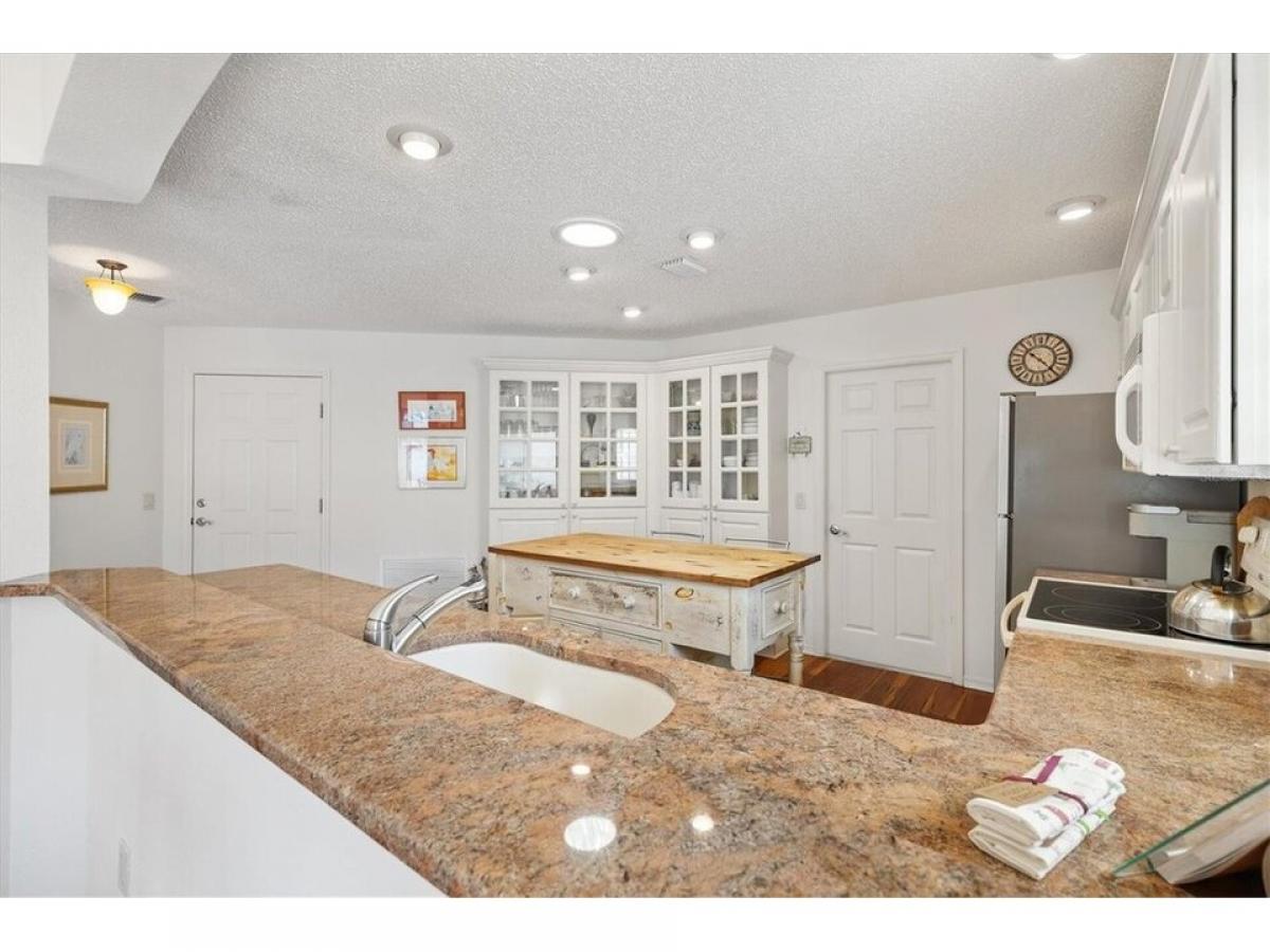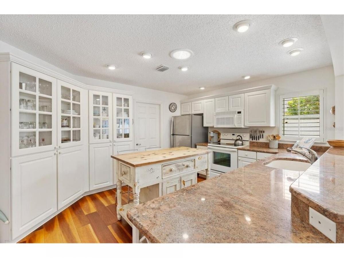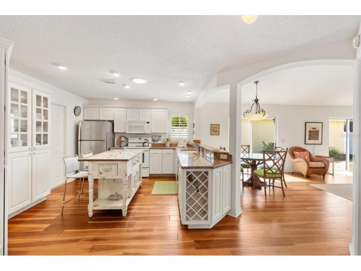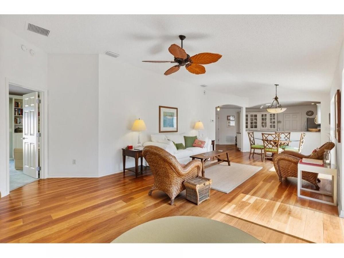 EXPANDED 2-CAR GARAGE (575 sq ft) Courtyard Villa offered TURN-KEY, in a prime location! The garage is extended on both sides (23x25), on a private CORNER LOT at the END OF THE STREET, and close to Lake Sumter Landing. Unique and beautifully landscaped outdoor spaces with access to both sides of the villa. The relaxing feeling of home is present in the timeless KITCHEN with additional CUSTOM CABINETRY, granite countertops, and a movable CUSTOM ISLAND with storage and additional counter space. The Kitchen and entry in this original Beauregard floor plan have been thoughtfully remodeled to create a more open floor plan with a gracious flow to the main living spaces. Two sliding glass doors in the dining and living room allow light to fill the home, calling attention to the beautiful, engineered HARDWOOD FLOORING while also providing views of the natural FLAGSTONE PATIO that enhances the landscape. The SUNROOM off the living room is a bonus living space with another slider to the back portion of the courtyard. This home offers the ideal flow with separation between the Primary and Guest bedrooms. The PRIMARY SUITE in the rear of the Villa features CUSTOM BOOKCASES, French Doors leading to the private courtyard, a walk-in closet with built-ins, and an updated EN SUITE with a sleek GLASS DOOR walk-in shower. The guest suite highlights include a vaulted ceiling and an updated en suite with a plank tile shower and a glass door. Garage screen. Roof 2020. The Villages, Florida lifestyle is yours to enjoy with abundant amenities such as golf, shopping, dining, club meetings, many entertainment choices, and more, all accessible by a golf cart.