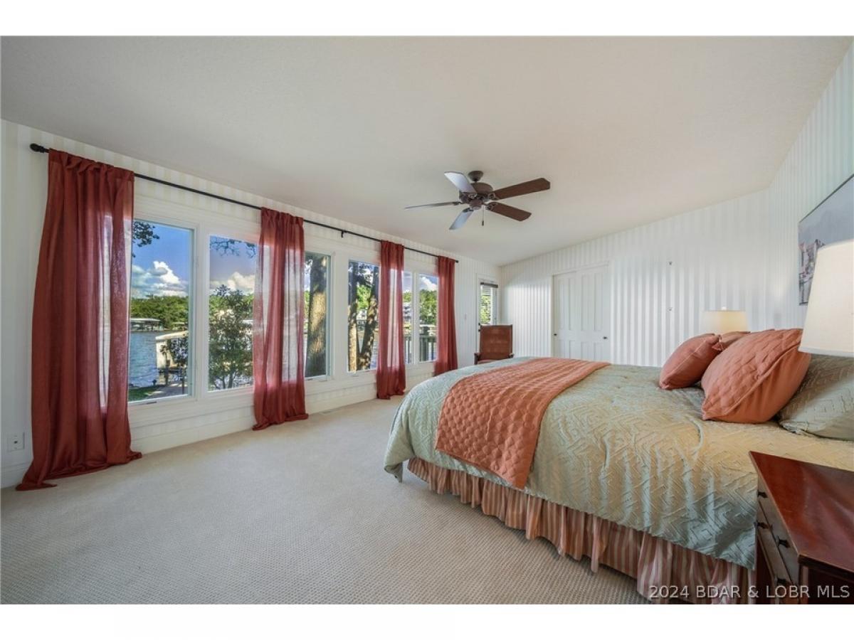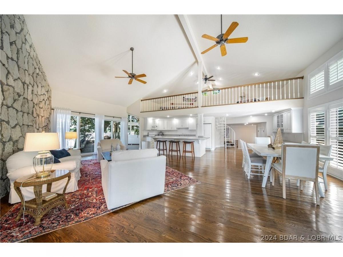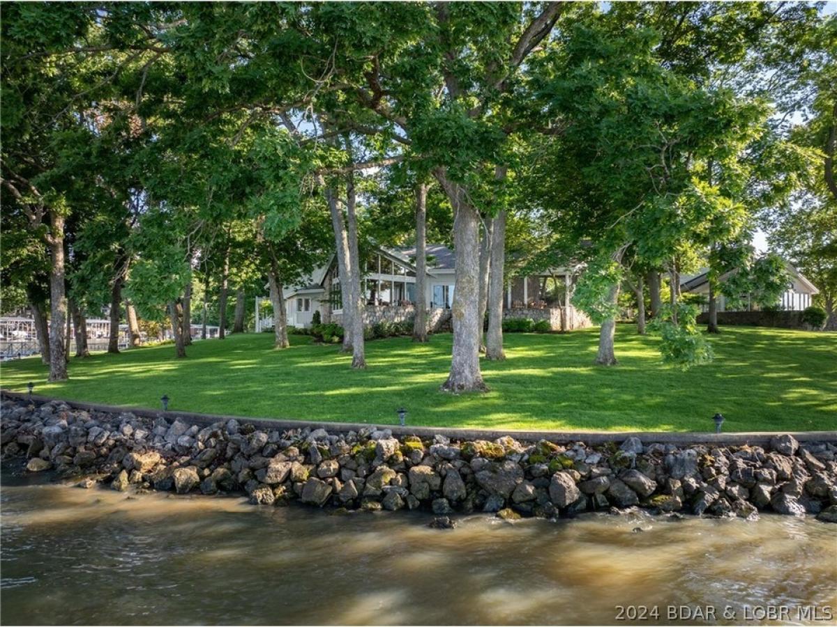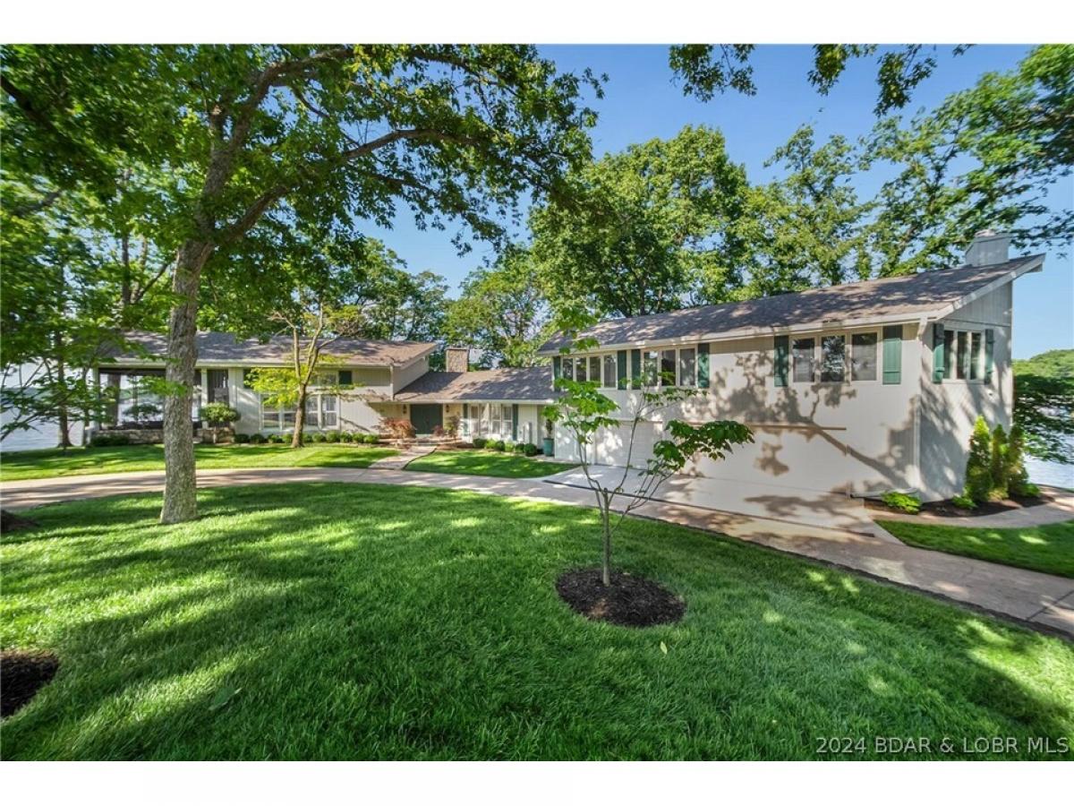 Rare opportunity to purchase an exquisite lake home on an estate lot on Lake of the Ozarks. When families own homes like these they rarely sell them. Perfectly situated private street leading to a flat, point lot and 310 feet of the most beautiful lakefront you will ever see. Mature trees, views up/down the Osage arm as well as up the Gravois arm. This has to be one of the most beautiful settings on the lake. The home faces East but you can also view spectacular evening sunsets to the west. When you feel and see the setting of the screened in porch, you will be sold! Home is 5 br/6 baths with an open kitchen/living room, loft area and a one of a kind family room that could also function as possibly the coolest dining room at the lake. Upstairs you will find 3 brs and a oversized game room with vaulted ceilings, fireplace & attached bath that could also be a master suite making 6 brs. Stone accent walls, wood floors, unique architecture, large martini deck, concrete patios, luscious landscaping and the overall feeling of nature/beauty make this home the distinctive property it is. Plenty of parking, circle drive, 3 car garage and a concrete dock sitting off of the main channel.