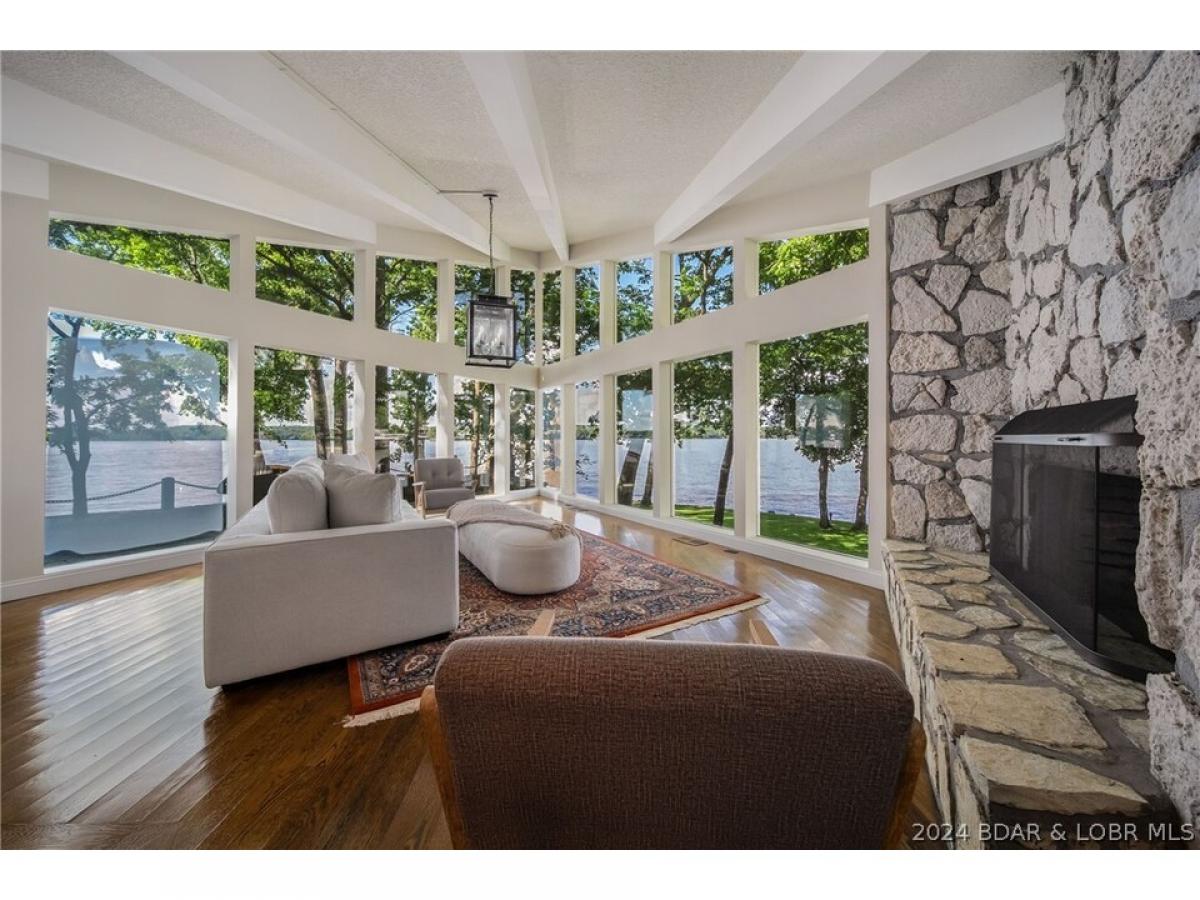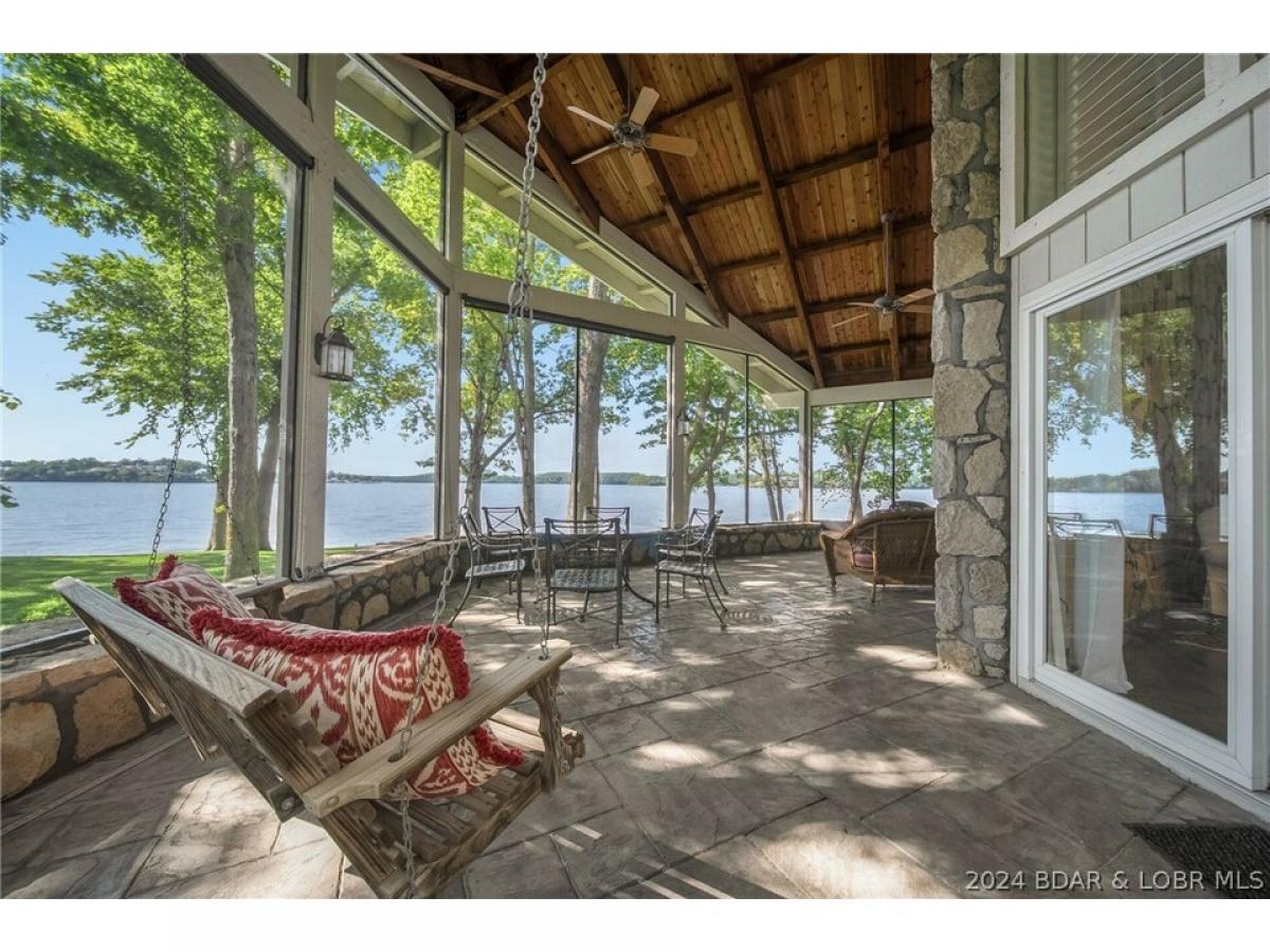 Rare opportunity to purchase an exquisite lake home on an estate lot on Lake of the Ozarks. When families own homes like these they rarely sell them. Perfectly situated private street leading to a flat, point lot and 310 feet of the most beautiful lakefront you will ever see. Mature trees, views up/down the Osage arm as well as up the Gravois arm. This has to be one of the most beautiful settings on the lake. The home faces East but you can also view spectacular evening sunsets to the west. When you feel and see the setting of the screened in porch, you will be sold! Home is 5 br/6 baths with an open kitchen/living room, loft area and a one of a kind family room that could also function as possibly the coolest dining room at the lake. Upstairs you will find 3 brs and a oversized game room with vaulted ceilings, fireplace & attached bath that could also be a master suite making 6 brs. Stone accent walls, wood floors, unique architecture, large martini deck, concrete patios, luscious landscaping and the overall feeling of nature/beauty make this home the distinctive property it is. Plenty of parking, circle drive, 3 car garage and a concrete dock sitting off of the main channel.