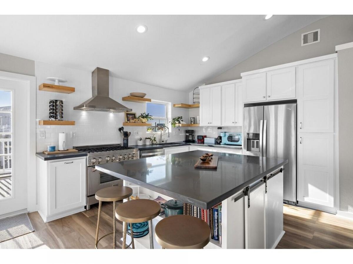 LOCATION LOCATION LOCATION! This stunning 2-bedroom, 1.1-bathroom home boasts breathtaking, unobstructed panoramic ocean views from every angle. Designed for relaxation and entertaining, the property features a wraparound deck where you can enjoy sunrise coffees or sunset cocktails while soaking in the sea breeze. Inside, the open-concept living, dining, and kitchen area showcases a vaulted ceiling and a cozy wood-burning fireplace, creating a warm and inviting atmosphere. The kitchen is a chefrsquo;s dream, complete with stainless steel appliances, a gas range, wine fridge, open shelving, and plenty of counter space for hosting gatherings. The bedrooms are thoughtfully designedmdash;one with private deck access for morning serenity, the other with a built-in desk perfect for work or creative endeavors. Modern bathrooms, ample natural light, and storm shutters on every window add convenience and peace of mind.