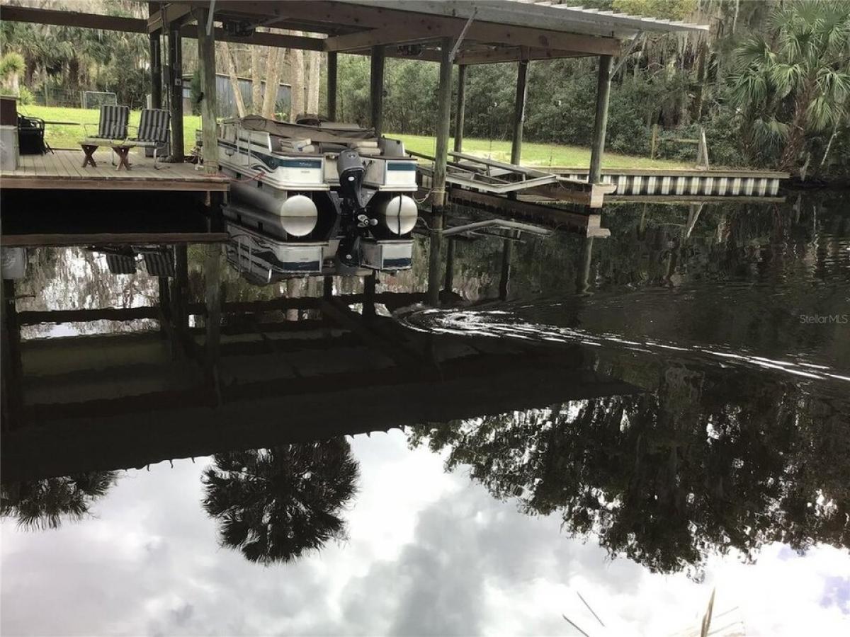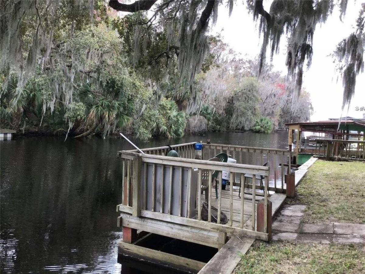 All you need to bring are your clothes and food to start enjoying a relaxing lifestyle on this freshwater canal home on a double lot. The canal leads into Lake George, the second largest lake in Florida. The St. Johns River runs through Lake George flowing north to Jacksonville where you can enter the Intracoastal Waterway or the Atlantic Ocean. If you enjoy fishing or boating, it#039;s only a few steps from your wrap around porch to the boat house with lift. You may just enjoy relaxing on the porch, drinking your morning cup of coffee or in the afternoon or evening you can relax in the hot tub. Most of the furnishings are included to make you move easier. The open floor plan shown in the photos speak for themselves. The kitchen has a brick accent wall around the stove and hood and the commercial grade stainless steel refrigerator are quite impressive. The kitchen island has under counter storage and is adjacent to the family room and dining room creating an easy flow space for entertaining. The master bedroom ensuite has a garden tub, double sink and separate shower. Both the master bedroom and guest bedroom have knock-out windows for safety in case of fire. The utility room is located off the kitchen area with washer/dryer hook up and storage. There is also washer/dryer hook up in the 900 square foot garage which also has bathroom and workshop. There is parking space for one vehicle or parking for an ATV, lawn mower, golf cart, etc. The wrap around porch increases the living space from 1735 square feet in the home to a total of 2740 square feet. The majestic oak tree is a focal point of the backyard. After you come back in from spending the day on the lake fishing, step over to the fish cleaning table to clean your catch of the day and then head over to the outdoor kitchen to cook your dinner. Sit around the picnic table under the oak tree while eating your dinner and watch the scenery of the canal and the woods across on the other side of the canal . You never know what you might see. While making the pictures, an otter swam by. Come sit on the porch or dock and see for yourself how picturesque, peaceful and quiet it is on the water.