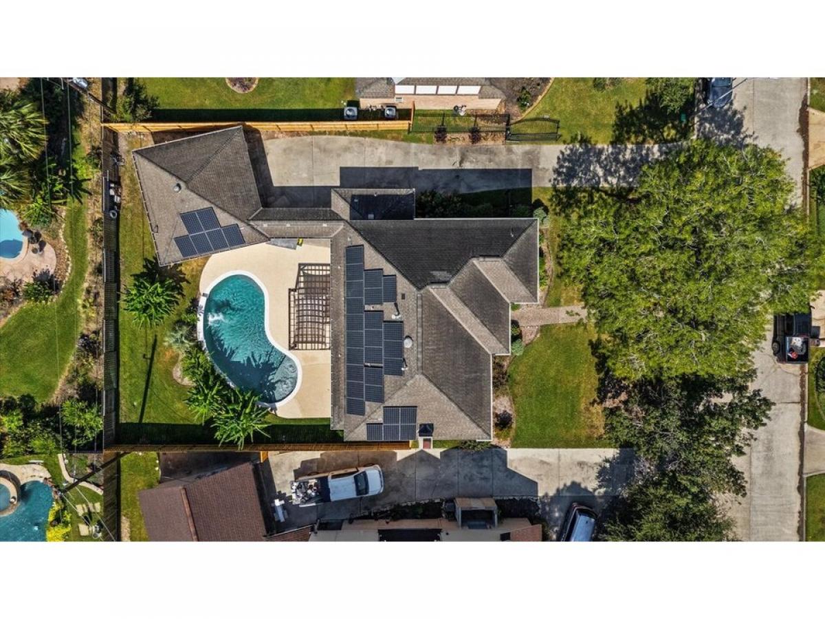Live 5 minutes from the hub of art and culture in Spring Texas at 16611 Brenton Oaks in the lush tree canopied neighborhood of Wimbledon Estates where the lots are generous sized and you get a bit more space from the neighbors. Sitting back from the street, the double door entry invites you in. Large family room has space for the comfy sectional. Flanking the fireplace are built-ins with immense storage. Kitchen has abundance of cabinets. Large utility room with sink and cabinets. Flex room-ideal for home office or game room. ALL bedrooms UP. Retreat to the primary bedroom with 2 walk-in closets. Great storage throughout. Spend summers in the tropical backyard. Lounge in the pool and dine underneath the Pergola. Cool surface pool deck coating keeps the deck surface walkable. Turn the sun#039;s energy into cost savings with the OWNED SOLAR PANELS. DOUBLE PANE windows. WATER SOFTENER. Short walk to neighborhood trails and park. Zoned to acclaimed Klein school district. Low tax rate.