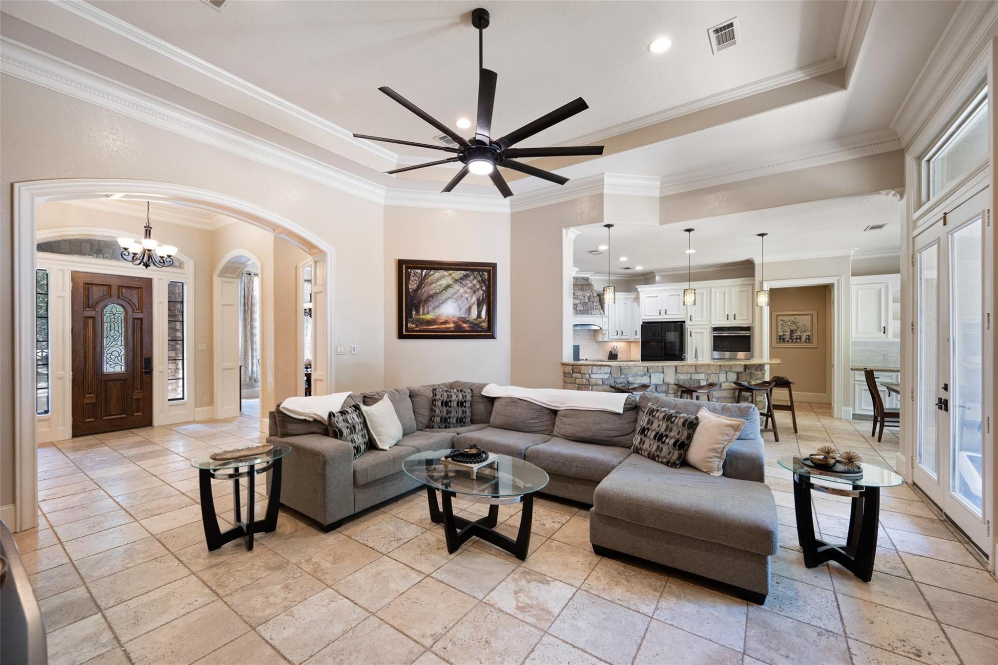 Welcome to this stunning home nestled on 2 acres with a private gated entrance and beautiful mature trees. Inside, you’ll find a well-designed layout with 3 bedrooms and 3.5 bathrooms on the main level, each with its own ensuite. The spacious kitchen offers abundant cabinetry and counter space, while the private office provides plenty of built-ins for organization. Upstairs, you'll find an expansive game room featuring a kitchenette, full bathroom and an additional room with closet and skylight that could serve as a 4th bedroom or flexible space. The home boasts no carpet throughout, making it both stylish and practical. Step outside to your backyard retreat complete with a large pool, spa, slide and water features, perfect for relaxation or entertaining. Also, featuring a 20X20 workshop with a loft for projects or additional storage. Located in Montgomery ISD with convenient access to Lake Conroe and I-45, this property combines comfort, space and an ideal location.