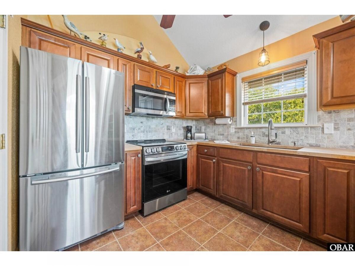 Nestled among the windswept live oaks and soft dunes of Swan Beach, this quaint, never-rented home offers a rare opportunity to enjoy the serenity of Corollarsquo;s exclusive 4x4 beachesmdash;where the wild horses still roam freely and nature surrounds you at every turn. Set on an oversized 20,000+ square foot lot, the home offers privacy, tranquility, and an ideal layout for a relaxed beachside lifestyle. Designed with the coastal environment in mind, it features low-maintenance vinyl siding, a durable metal roof, and roll-down hurricane shutters to keep the elements at bay. The ground level welcomes you with a paved carport, a spacious paver patio with a fire pit, and a convenient outdoor showermdash;perfect for rinsing off after a day on the sand. There#039;s also a screened-in patio for enjoying coastal breezes without the bugs, as well as a utility room, laundry area, a second refrigerator, and a half bath. A dry entry leads directly into the home, offering easy access no matter the weather. Upstairs, the main living area impresses with vaulted ceilings and an open-concept layout that creates a warm and airy gathering space. The great room features a cozy gas fireplace and flows seamlessly into the dining area and beautifully remodeled kitchen, complete with butcher block countertops, a stone tile backsplash, stainless steel appliances, and a generous walk-in pantry. Down the hall, you#039;ll find three comfortable bedrooms, including a private en suite, as well as updated bathrooms that reflect a modern, beachy aesthetic. Step out onto the spacious deck and follow the stairs to the rooftop deck, where sweeping ocean views and the ever-changing sky provide the perfect backdrop for both sunrise coffees and sunset cocktails. Adding to the homersquo;s appeal is a detached, heated and cooled two-car garagemdash;ideal for storing side-by-sides, jeeps, beach gear, or fishing equipment. Therersquo;s also ample space to add a pool, should you desire to create your own private oasis. For those seeking even more privacy or potential for expansion, the adjacent southern lot is also available for purchase separately. Whether you#039;re dreaming of a personal retreat or a future investment, this inviting coastal home offers the perfect blend of character, comfort, and connection to the untamed beauty of the Outer Banks.