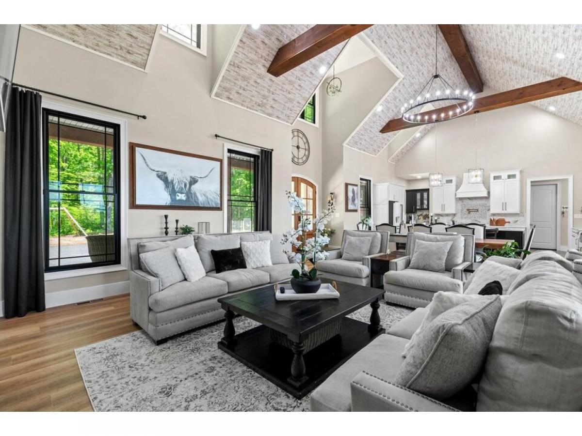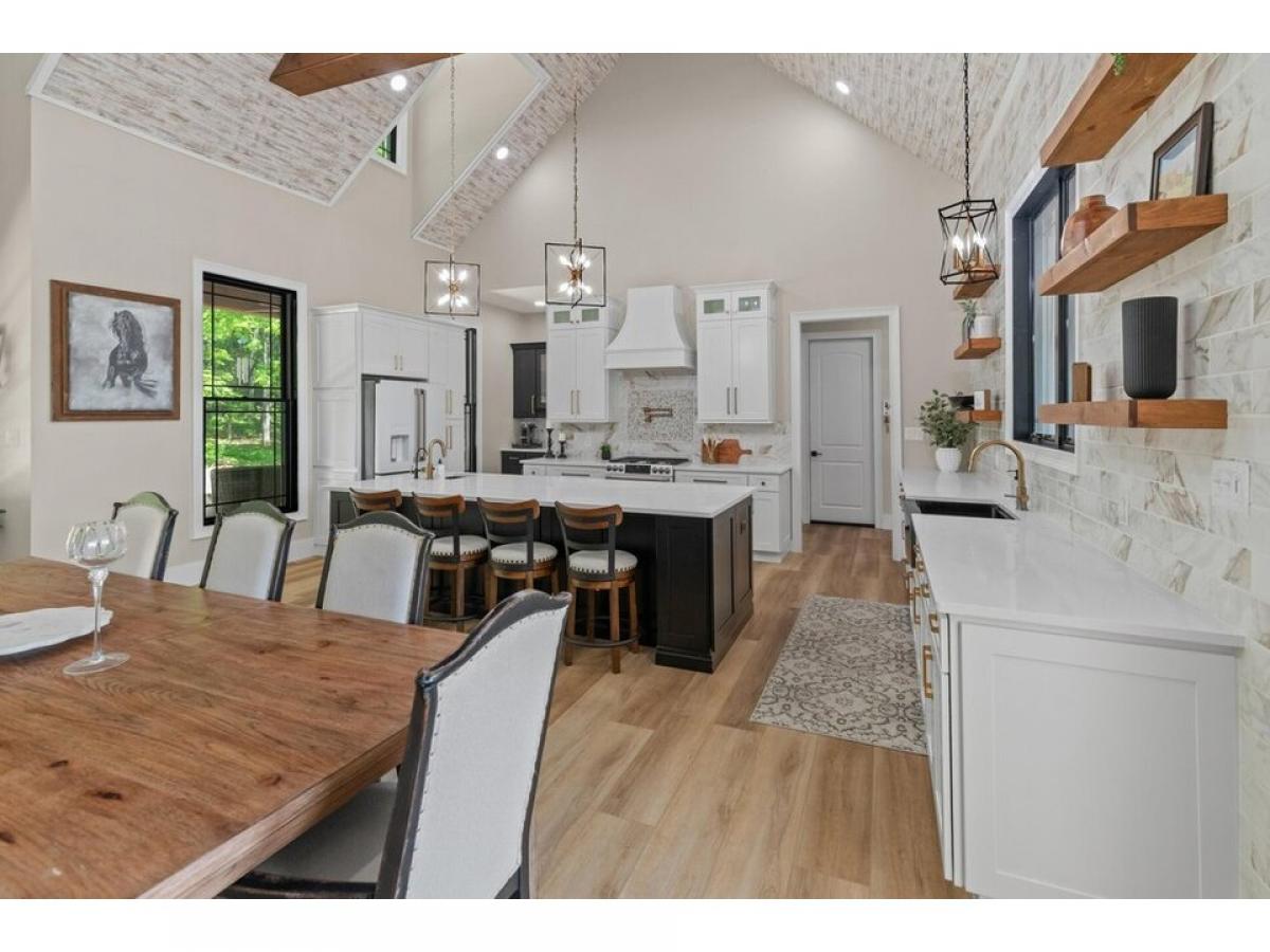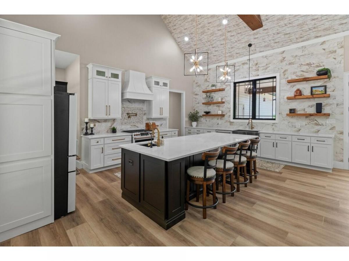Stunning Custom-Built Modern Farmhouse on 9.63 Acres with Pond. Welcome to this breathtaking custom-built modern farmhouse, a perfect blend of rustic charm and contemporary elegance. Situated on 9.63 serene acres, this 3-bedroom, 3.5-bathroom home offers open-concept living, high-end finishes, and an abundance of natural beauty--including a picturesque pond right on the property. Step inside to find luxury vinyl plank (LVP) flooring throughout, combining durability with timeless style. The spacious great room features soaring 12-foot walls and a vaulted ceiling with exposed wood beams, and abundant natural light pouring in through oversized Andersen 400 Series windows. The focal point of the living space is a custom fireplace with custom floor-to-ceiling stone, creating a warm and inviting atmosphere. The rest of the home offers 10 foot ceilings and 8 foot doors throughout. The chef#039;s kitchen is designed for both function and beauty, featuring quartz countertops, custom cabinetry, an oversized island, high-end appliances, a separate coffee bar area, as well as a walk-in pantry for ample storage and organization. Each bedroom is designed for comfort and privacy, with en-suite bathrooms featuring custom tile showers. The primary suite is a true retreat, complete with a spa-like bathroom featuring a large custom shower with dual shower heads, a spacious multi-shelf niche with custom tile, and a luxurious soaking tub. Her side of the bathroom is thoughtfully designed with ample storage and a dedicated makeup station, offering both functionality and elegance. Entertainment is at the heart of this home, featuring a dedicated entertainment room with a wet bar, glass-front cabinets with LED lighting, and plenty of space for gatherings. A spiral staircase leads to a spacious 17#039; x 19#039; loft office, offering a private and inspiring workspace with beautiful views of the property. This home is also equipped with modern conveniences, including a whole-house generator for uninterrupted power, a 5-zone speaker system for ultimate entertainment, a whole house water conditioning system with reverse osmosis for drinking water, and energy-efficient features throughout. Outdoor living is just as impressive, starting with a large covered front porch with composite decking, perfect for relaxing and enjoying the peaceful surroundings. In the back, an expansive, partially covered rear deck with composite decking offers breathtaking views of the mountains and the pond, making it an ideal space for outdoor dining, entertaining, or simply unwinding in nature. For those who need extra storage and workspace, this property includes a 40#039;x30#039; separate 3-bay pole barn with 10#039; roll-up doors, perfect for storing equipment, vehicles, or creating a workshop. Additionally, a covered RV pad with full hookups provides a convenient space for guests or travel enthusiasts. There is also space available over the garage area to expand and add a 720 sq ft loft apartment with its own entrance if you desire. Outside, the expansive acreage offers endless possibilities--whether you envision a hobby farm, recreational space, or simply a peaceful escape. The pond adds to the tranquility, making this property a rare gem for nature lovers. Located just minutes from town yet offering complete privacy, this exceptional home provides the perfect balance of modern luxury and country living. Schedule your private tour today and experience the beauty for yourself!