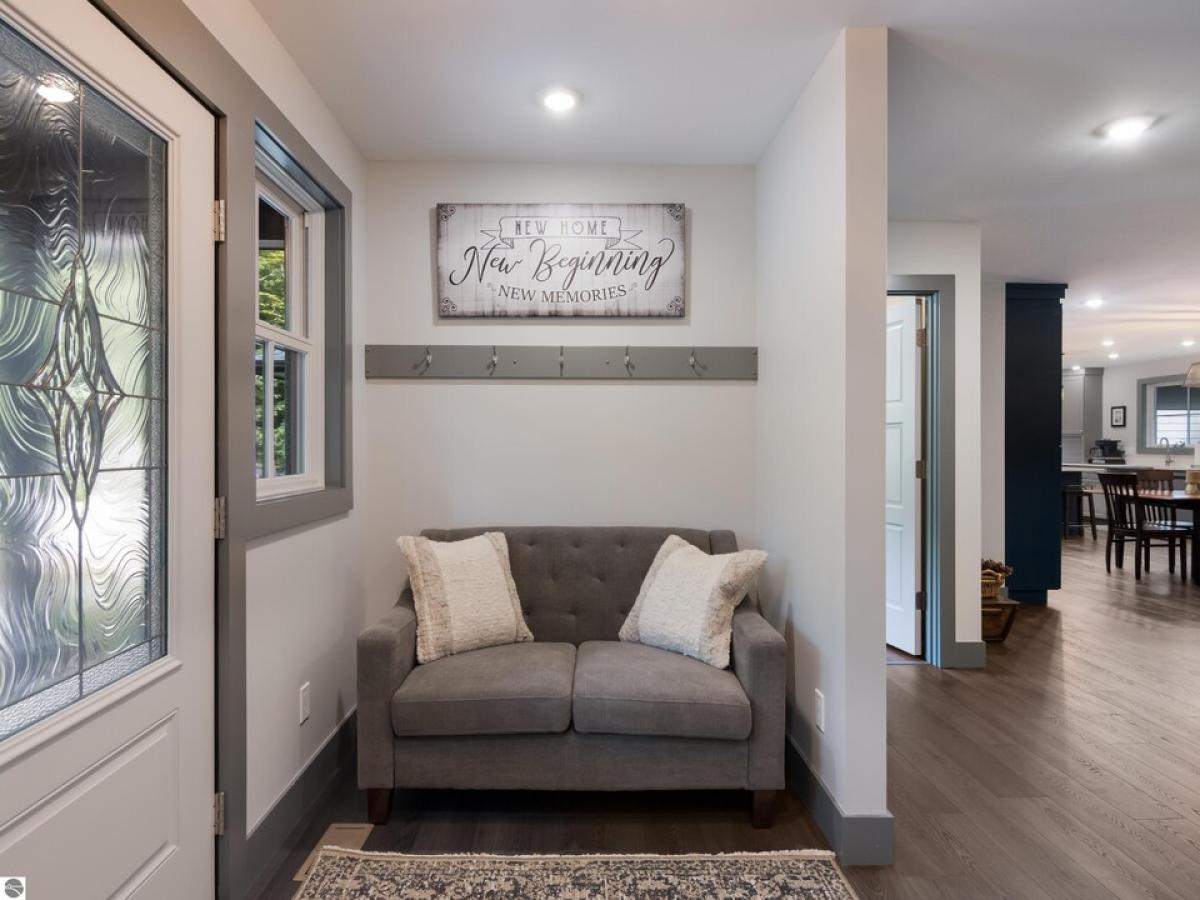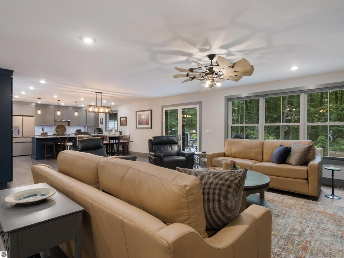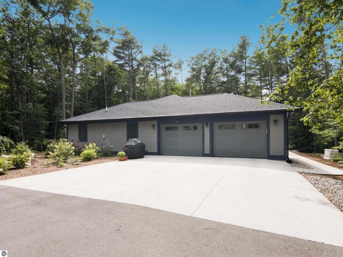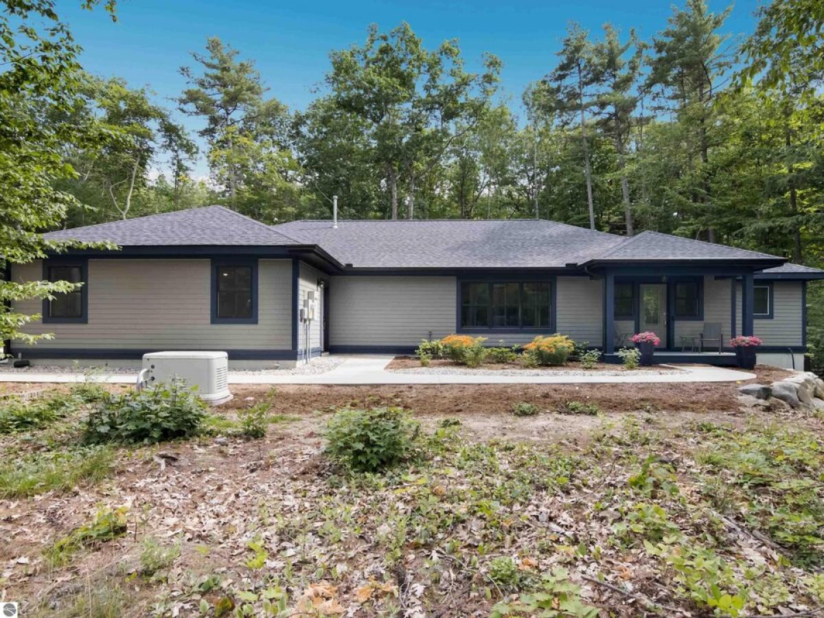 GRAND TRAVERSE BAY SHARED ACCESS enhances this quality built, custom home in desirable Sunset Shores Subdivision. As you enter the foyer of this newer home you will be impressed with the welcome feeling that exudes “I’m Home”! Gather in the spacious great room in front of the gas fireplace flanked by gorgeous cabinetry and enjoy lively conversations with your family. The gourmet kitchen with gleaming quartz countertops, large island, abundant custom cabinetry, unique granite farm sink, and high-end Café appliances will bring out your inner chef. The main floor primary suite epitomizes modern comfort with wooded views, a gorgeous bathroom, large linen closet, walk-in closet with built-ins and more. The lower level offers a generously sized family room, bedroom, full bath and the mechanical room. The oversized two car garage conveniently leads to a mud room, laundry room and the kitchen. Charm and attention to detail with additional amenities including 4 bedrooms, 4 baths; Hardie Plank lap sided exterior; whole house generator; and so much more. Imagine entertaining on the beautiful, maintenance free, composite deck surrounded by an idyllic wooded setting with well-designed landscaping. The shared access site is just a hop, skip and jump away from the home where you can relax on the beach, go for a swim, kayak from the sugar sand frontage or spend your evenings watching the sunset over the glistening blue waters. This magnificent 2022 built custom style home by J Merchant Builders will become your cherished family home. Built to suit your lifestyle with maintenance free living in mind in a great peaceful location.