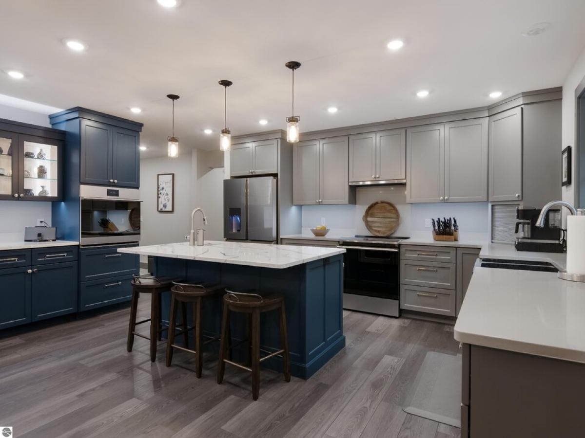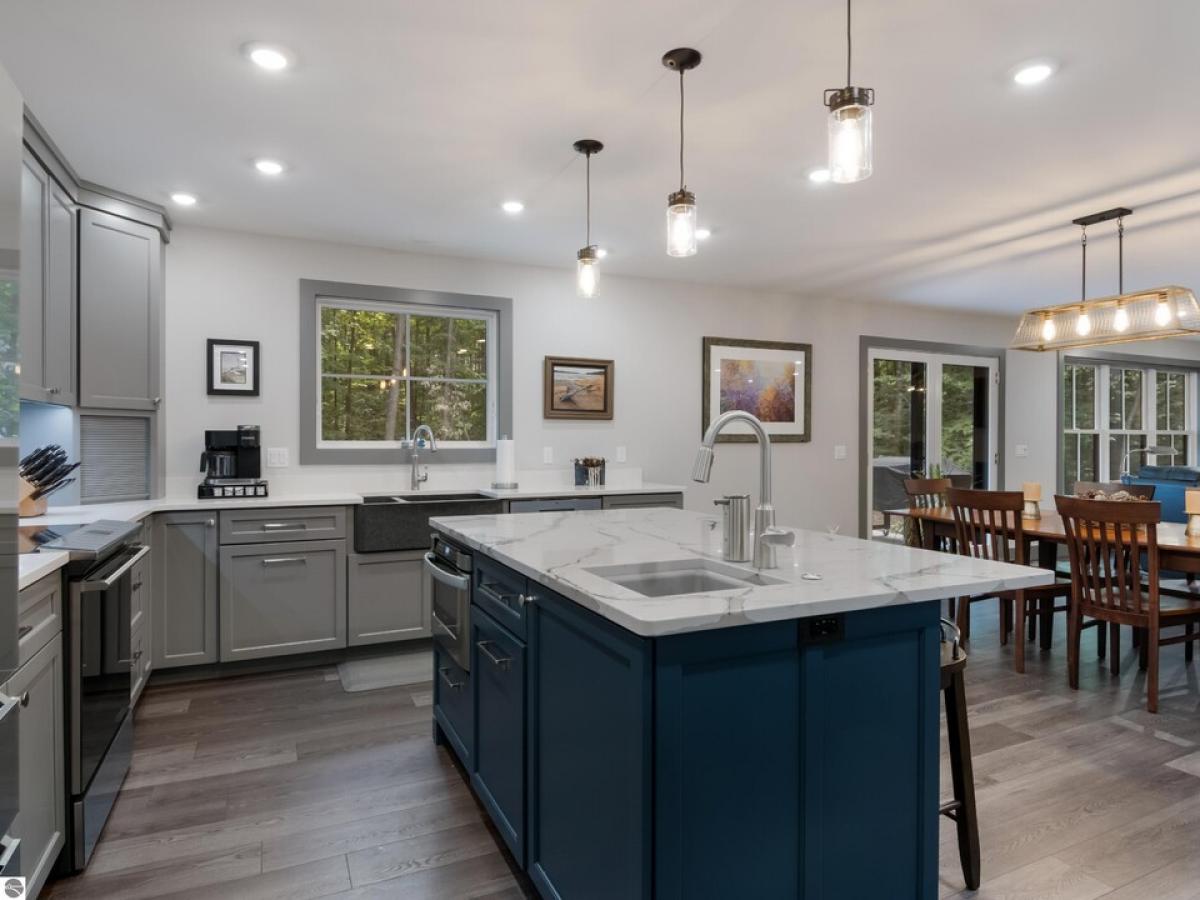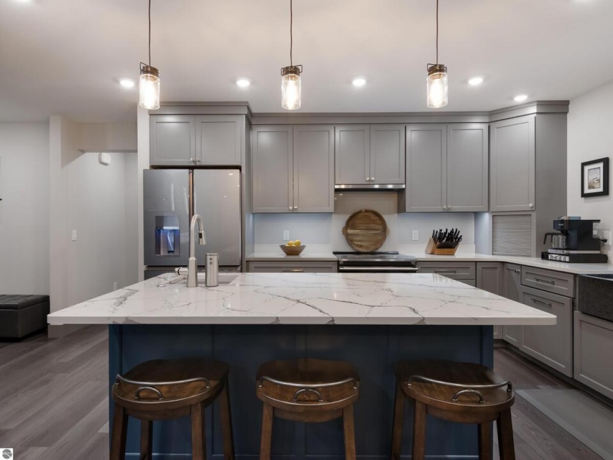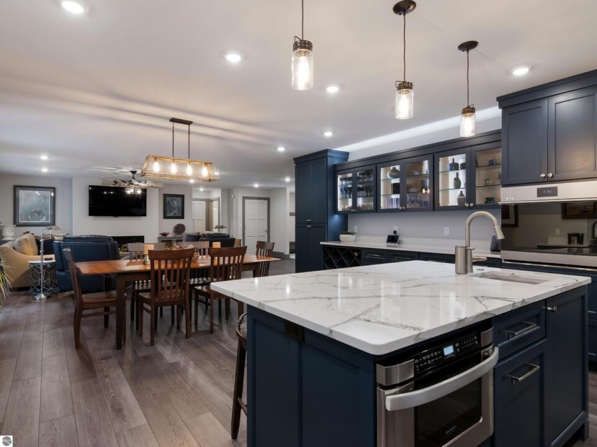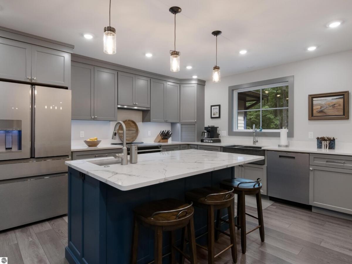 GRAND TRAVERSE BAY SHARED ACCESS enhances this quality built, custom home in desirable Sunset Shores Subdivision. As you enter the foyer of this newer home you will be impressed with the welcome feeling that exudes “I’m Home”! Gather in the spacious great room in front of the gas fireplace flanked by gorgeous cabinetry and enjoy lively conversations with your family. The gourmet kitchen with gleaming quartz countertops, large island, abundant custom cabinetry, unique granite farm sink, and high-end Café appliances will bring out your inner chef. The main floor primary suite epitomizes modern comfort with wooded views, a gorgeous bathroom, large linen closet, walk-in closet with built-ins and more. The lower level offers a generously sized family room, bedroom, full bath and the mechanical room. The oversized two car garage conveniently leads to a mud room, laundry room and the kitchen. Charm and attention to detail with additional amenities including 4 bedrooms, 4 baths; Hardie Plank lap sided exterior; whole house generator; and so much more. Imagine entertaining on the beautiful, maintenance free, composite deck surrounded by an idyllic wooded setting with well-designed landscaping. The shared access site is just a hop, skip and jump away from the home where you can relax on the beach, go for a swim, kayak from the sugar sand frontage or spend your evenings watching the sunset over the glistening blue waters. This magnificent 2022 built custom style home by J Merchant Builders will become your cherished family home. Built to suit your lifestyle with maintenance free living in mind in a great peaceful location.