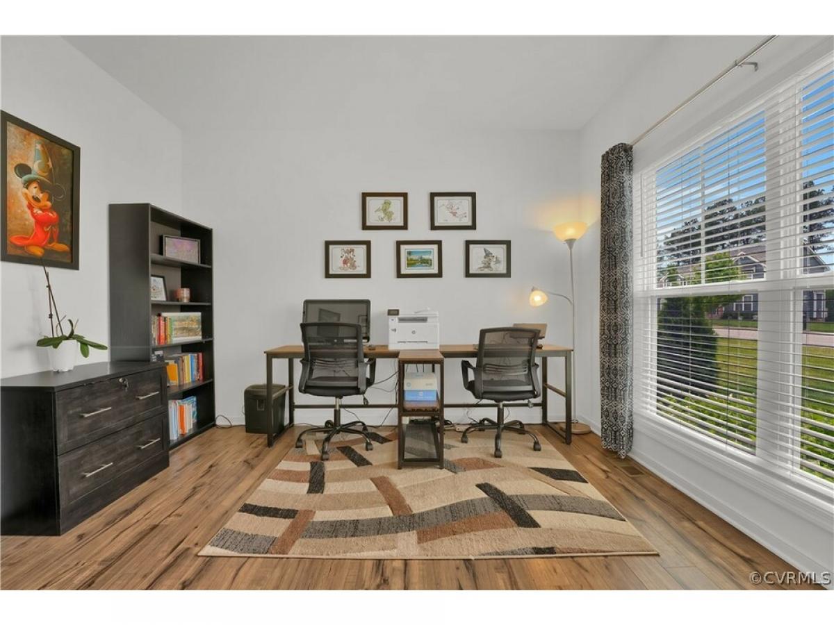 Move-in ready in the beautiful Harpers Mill subdivision of Chesterfield County. Why wait to build when you can move right into this like-new 2020 Lifestyle Home Builder's Elliot floor plan with endless upgrades! Welcome to 16755 Sayley Drive in the fully-finished Glen Royal section of Harpers Mill and within walking distance of the top-rated Winterpock Elementary School. This vinyl & stone-sided craftsman style 2-story home sits on a landscaped corner lot and consists of 5 bedrooms & 4.5 bathrooms over 3,384 sqft of living space. Upon entering you are greeted with sawmill hickory wood laminate floors throughout the first level. The office has French doors for privacy and the formal dining room has a high tray ceiling. The eat-in upgraded kitchen features an open concept to the living room & morning room spaces and features granite counters, a large breakfast bar island, gas cooking, a pantry, stainless steel appliances & ample cabinet space. The living room is highlighted with a coffered ceiling & gas fireplace. The first-floor bedroom has a walk-in closet & ensuite bathroom for guests or multigenerational families. The first floor is completed with a custom built-in drop-zone leading from the garage entrance and walk-out access to the rear deck off of the morning room/breakfast nook. The second floor of the home is fully carpeted and highlighted with an oversized primary bedroom suite with tray ceiling, 2 walk-in closets, ensuite bathroom w/dual vanity, step-in shower & separate soaking tub. The loft/family room space is flexible and open. This level is completed with a Jack & Jill style bedroom/bathroom setup, a laundry room, additional bedroom & hallway bathroom. The exterior of the home features a side-entry garage w/ ample overhead storage, a private rear deck w/ patio lights & a fully fenced backyard with dark aluminum picket-style fencing. The home is just a short walk or bike ride to the Harpers Mill HOA clubhouse, pool, playground & lighted sports field. Just a short drive to endless shopping & dining!