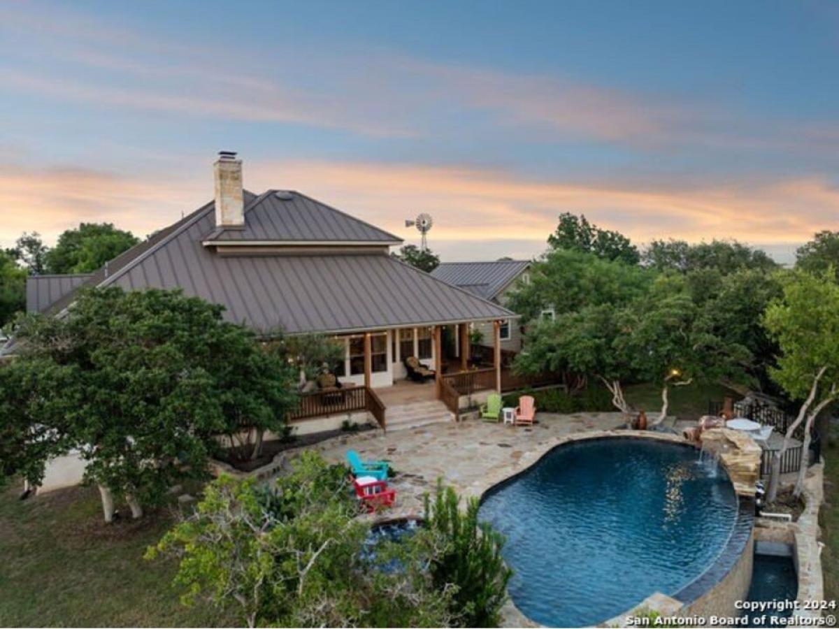 Enjoy refined Hill Country living just five minutes from Fredericksburg in this beautifully crafted Tuscan-style estate. Set on nearly five private acres, this custom home offers comfort, quality, and timeless design in a peaceful setting. From the moment you enter through the barrel-ceiling foyer, you#039;ll notice attention to detail-from the hand-selected materials to the warm wood flooring and cedar beam accents. With 3 bedrooms, 2.5 bathrooms, and a dedicated office (which could easily serve as a fourth bedroom), the layout is both flexible and functional. The kitchen is a true work space for anyone who enjoys cooking: granite countertops with chiseled edges, alder wood cabinetry, cedar beam ceilings, a Hallman gas range with dual ovens, and high-end appliances including a Bosch dishwasher and GE Monogram fridge/freezer. A sunlit breakfast nook with plantation shutters adds charm and energy efficiency. The living room features 20-foot ceilings, wall windows, and a stone fireplace with a mesquite wood mantle-perfect for relaxing or entertaining with expansive Hill Country views as the backdrop. The primary suite includes private patio access, a whirlpool tub, walk-in shower, dual vanities, and a large closet with bonus space. Secondary bedrooms offer comfort and privacy, including one with a cozy loft. Outdoors, the heated infinity-edge pool and hot tub overlook sweeping views. The spacious patio is thoughtfully designed for entertaining, and to take in the Hill Country landscape. The gated property provides an oversized garage, a 25x50-foot insulated metal RV shed to accommodate larger vehicles or hobbies, a 12x16-foot wooden outbuilding, and a second building site with its own well and electricity. Thoughtfully built for everyday living and long-term comfort in one of the most scenic areas of Fredericksburg.