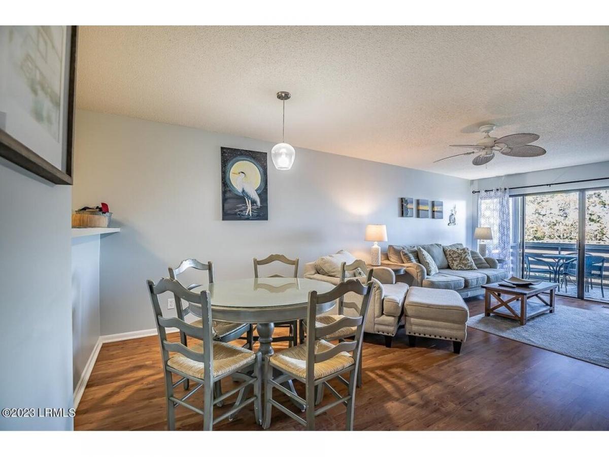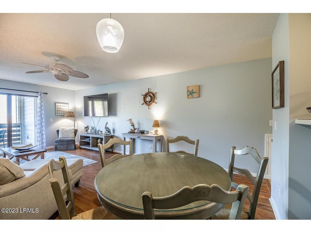 Highly sought after first floor, tatstefully decorated, move in ready. Steps from all the fun on Fripp Island. Located in the center of the island where the beach, pools, food, tennis, pickleball, fitness center are all just steps away. Two bedrooms with new flooring, subflooring and extra support underneath both bedrooms and dining area. New screen system on porch which is opened on two sides and a new sliding door arriving soon. New Trex like decking on screen porch. Stackable washer/dryer. Beach Club villas have their own large, private dock for fishing, crabbing, sunning or just sitting to watch the birds and dolphins. Utility storage unit in the Primary closet. Outdoor shower. Comes furnished with some small exclusions. Great rental.