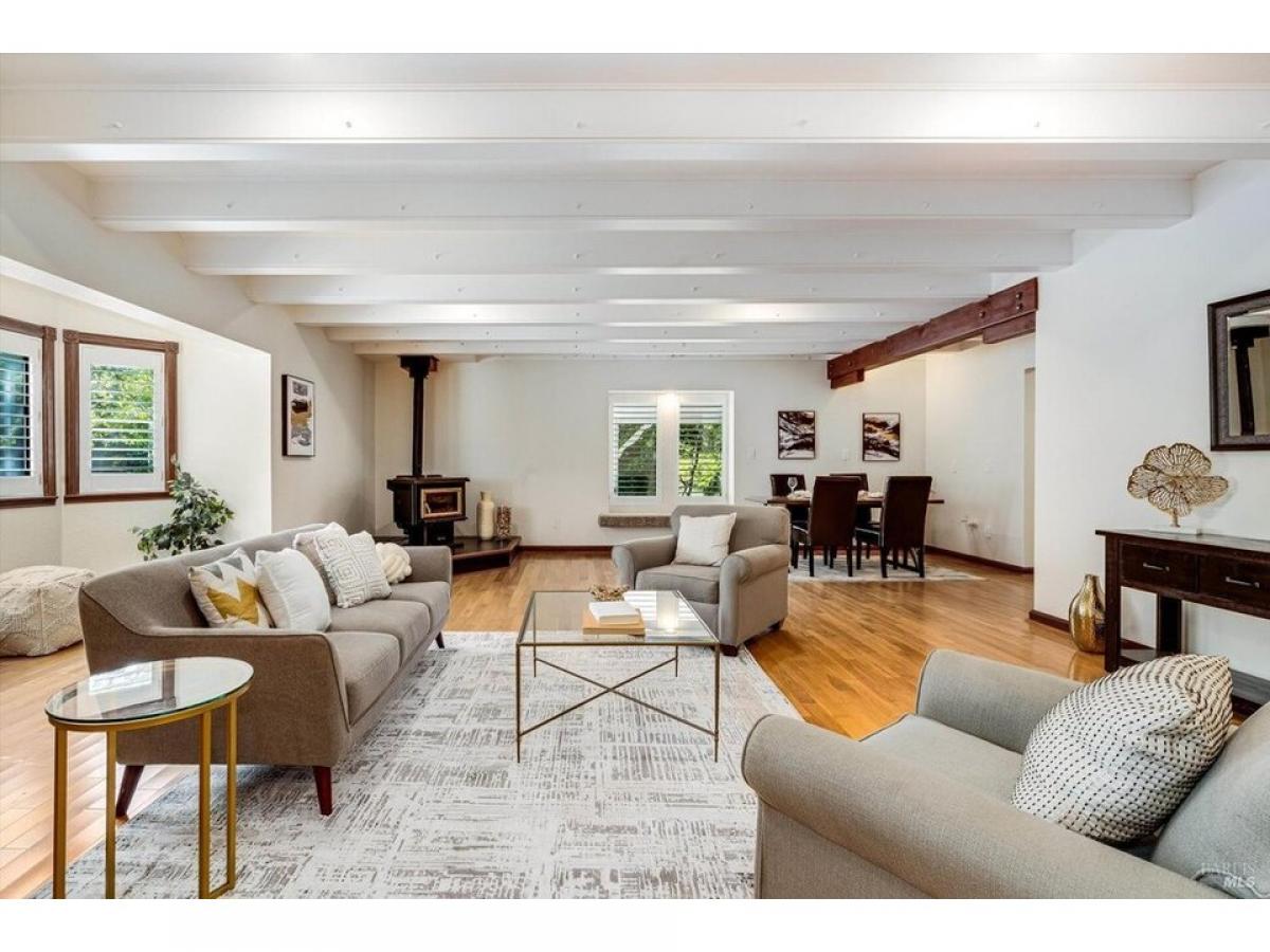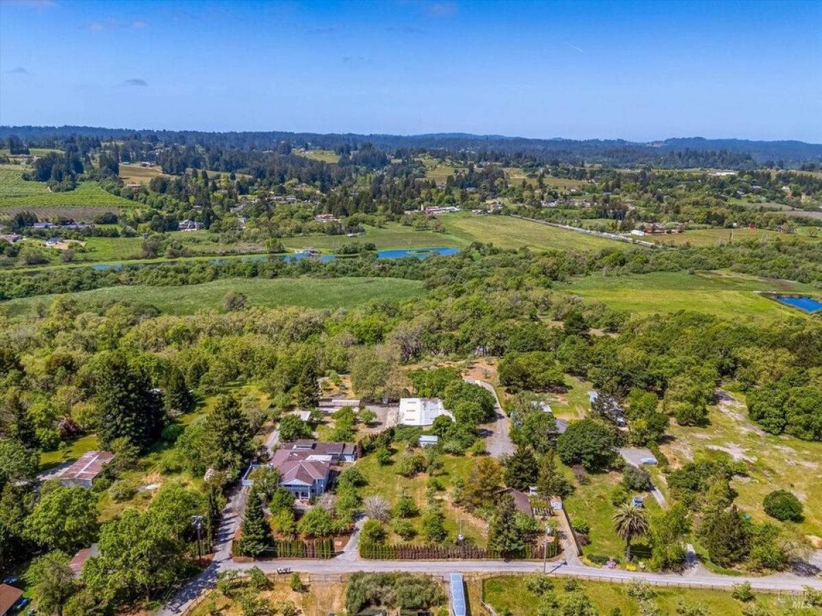 Set along a quiet country lane, this 6,000 +/- sqft estate is nestled on 13 +/- acres amp; offers refined country living in a coveted West County location, surrounded by award-winning vineyards amp; picturesque views. Zoned for diverse agricultural uses, the property presents endless potential, from vineyard, equestrian use or high-value crop production (buyer to verify). The elegant main home features wood floors, exposed wood beam ceilings, a custom wood bar, amp; a spacious kitchen with an island, gas burner range, stainless steel appliances amp; orchard views. Carport accommodates 4 vehicles. Upstairs, primary bedroom, secondary living area, potential game room amp; a sunset-view deck provide added comfort and charm. A detached 900+/- sqft granny unit with 1 bedroom, 1 bath, its own driveway, amp; septic offers flexibility for extended family or rental opportunities. Additional highlights include a 4,875 +/- sqft steel barn with power, 400-amp electrical service, a primary well amp; a secondary artesian well near hoop houses-perfect for avid gardeners or small-scale farming. This rare offering combines luxury, utility amp; limitless potential in one of Sonoma County#039;s most desirable rural settings.