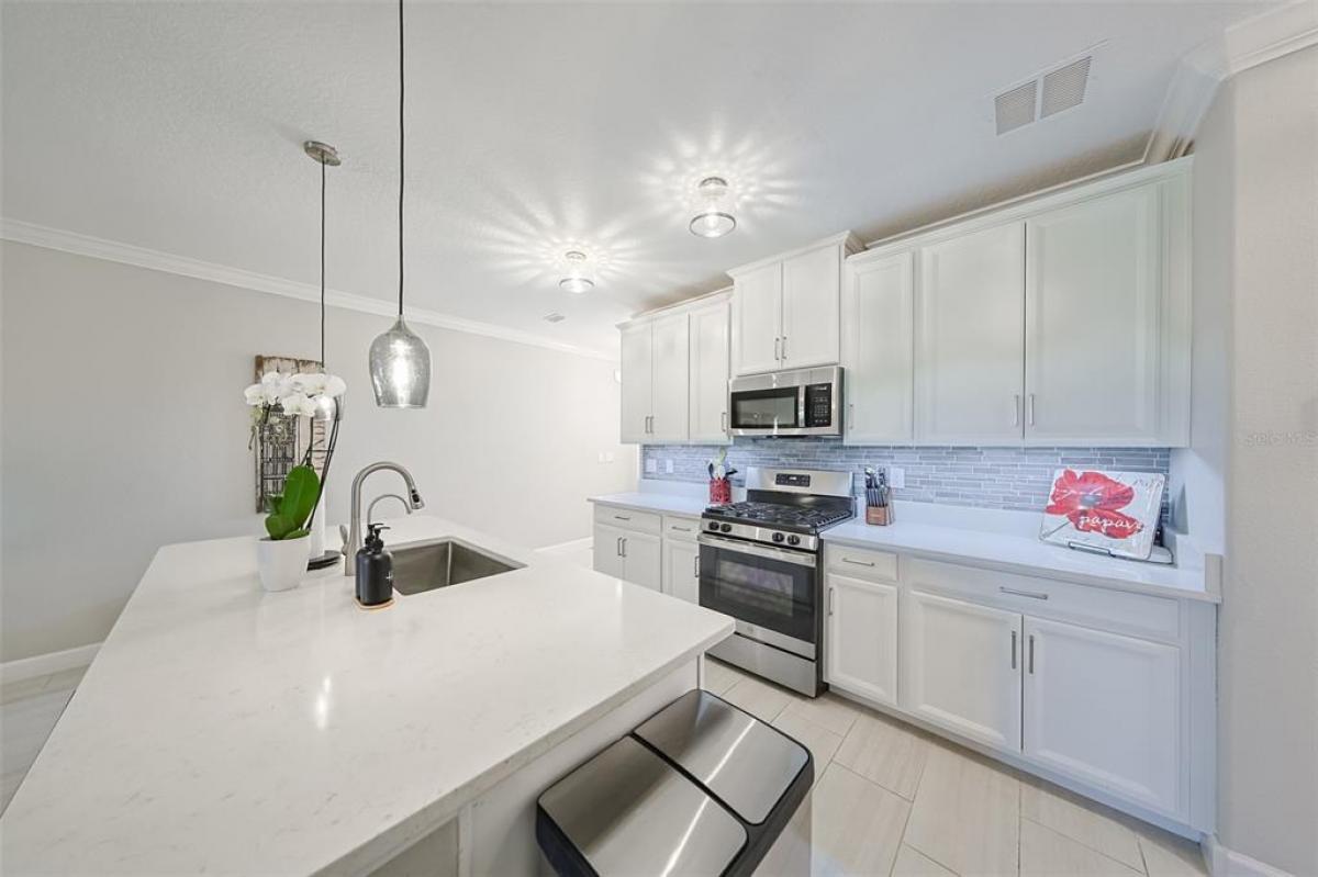 Situated on a pond tucked away in a peaceful cul-de-sac this 2 bed, 2 ½ bath, 2 car garage Villa in a prime position, boasts an unrivaled outlook of brilliant sunsets and abundant birdlife. Relax on the screened lanai with brick tile flooring and newer blinds, perfect for taking in the peaceful pond views that enhances the home’s serene setting. Located in a desirable 55+ active community, this spacious 4-block Villa offers comfort, style, and peace of mind. Enjoy newer high-impact windows (2024) on the upper level, Gas Water Heater, Carrier 2-ton A/C (2022) for year-round efficiency & a Kinetico water softener. The kitchen features elegant stone countertops, a gas range, breakfast bar, and reverse osmosis system for pure, great-tasting water. The primary bedroom is conveniently located on the main level, with 1.5 baths for added functionality. The second level includes a bedroom with murphy bed, a second bath and a sizeable loft area. Additional features include an alarm system with keypad & phone connectivity for enhanced security, and EV charger in garage. Experience low-maintenance living in a scenic, friendly community—the perfect blend of comfort, convenience, and natural beauty. Medley at Southshore Bay in Wimauma, FL is a vibrant 55+ gated community that features a clubhouse with large ballroom including a stage and projection facility, a games room with billiards, a café and bar, fully equipped fitness center, and a resort-style pool with outside bar. Six pickle ball courts, three bocce ball courts and available for the more sports inclined residents. Frequent social events are arranged by community management & the many resident clubs. Two dog parks are available for dog owners, Further info. on Southshore Bay is available at Home–Medley Southshore Bay. Directly opposite the Medley complex is the Southshore Bay Lagoon, a 5½ acre lagoon complex that features swimming, kayaking & paddle boarding activities. A bar overlooks the pool area with food available. Movie nights & performers are routinely arranged as are Holiday celebrations. Medley residents enjoy preferential access to the lagoon complex. For more info visit the website: Southshore Bay Lagoon-MetroLagoons.