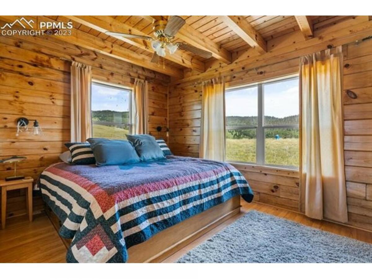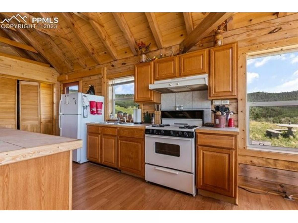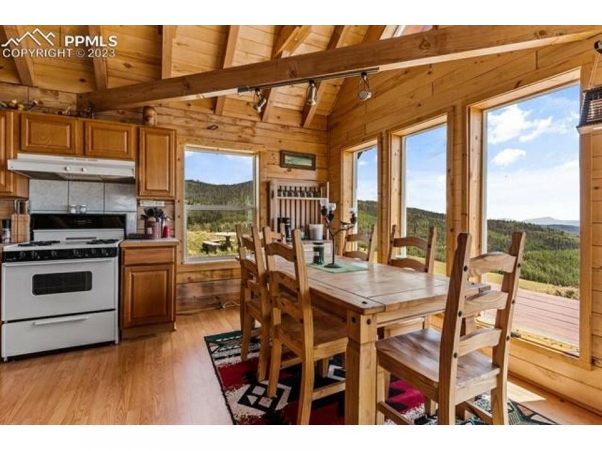 Unplug, unwind, and reconnect with nature in your very own seasonal cabin retreat, peacefully cradled on 35 acres of untouched beauty that backs up to a national forest. Inside, you'll be greeted by the living area that boasts a soaring vaulted ceiling with exposed wooden beams, large double-height windows cascading in warmth and abundant natural light throughout the day, and timber finishes embracing the entire place with a timeless rustic charm. And with three bedrooms and two bathrooms, ALL FURNITURE INCLUDED, there's plenty of room for loved ones to share in the joy of this wilderness sanctuary. Outside awaits a bright deck, that offers a space to dine and unwind, embraced by panoramic green views and the gentle cool breeze that dances playfully through the leaves. This deck offers not only a captivating retreat but also the privilege of an enviable location, granting you access to explore the adjacent national forest right from your own backyard.