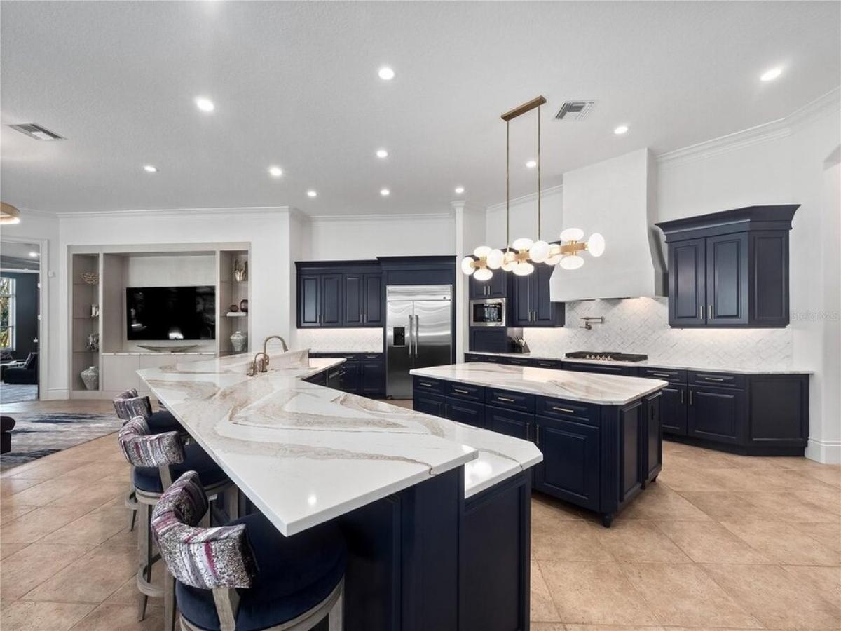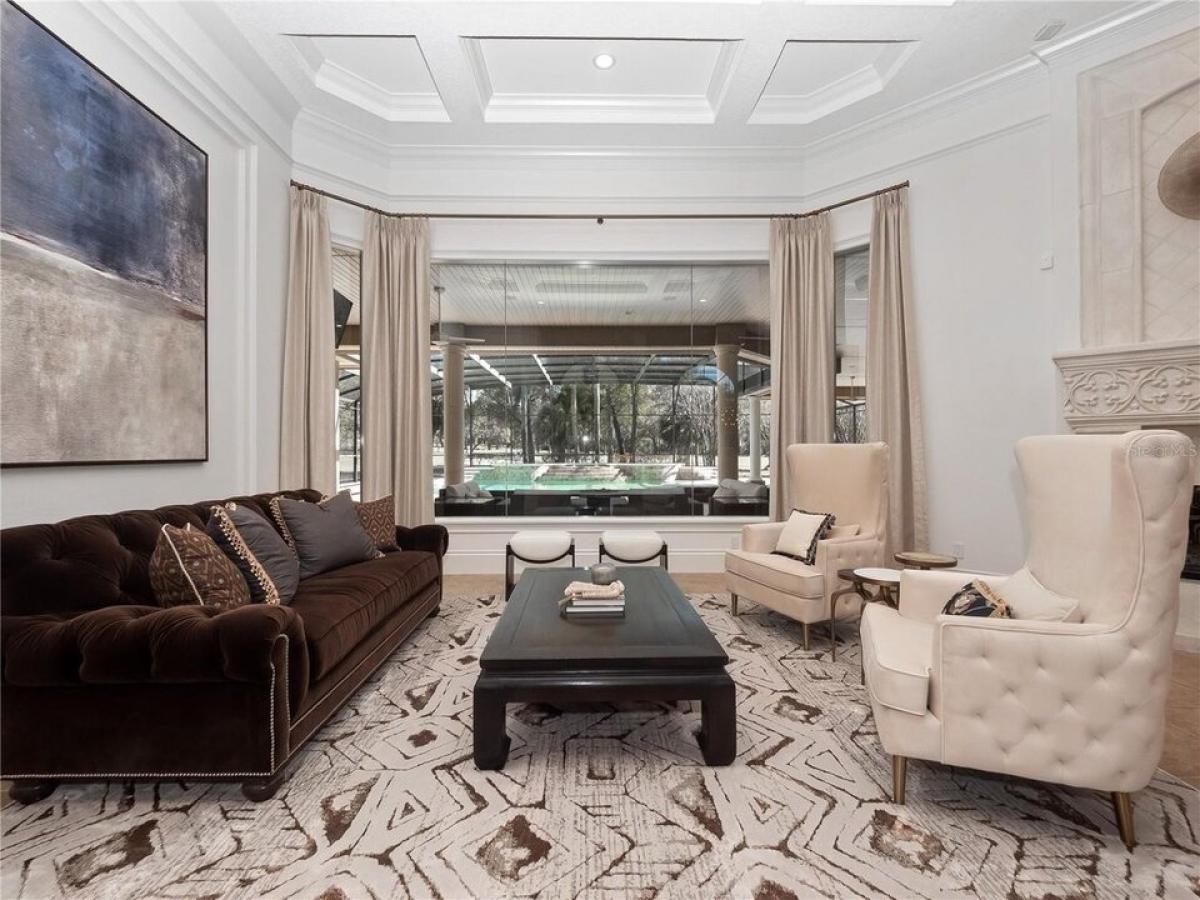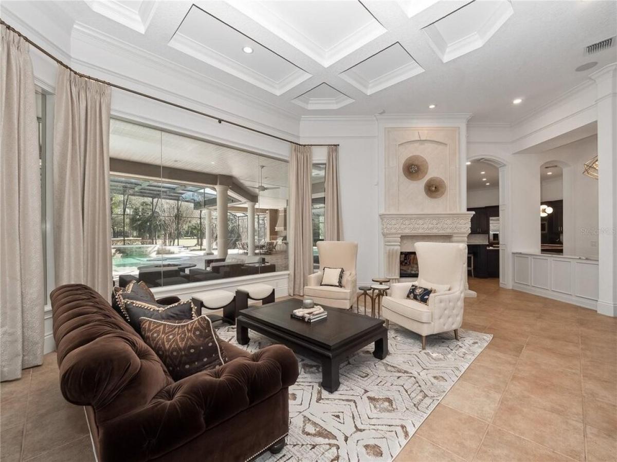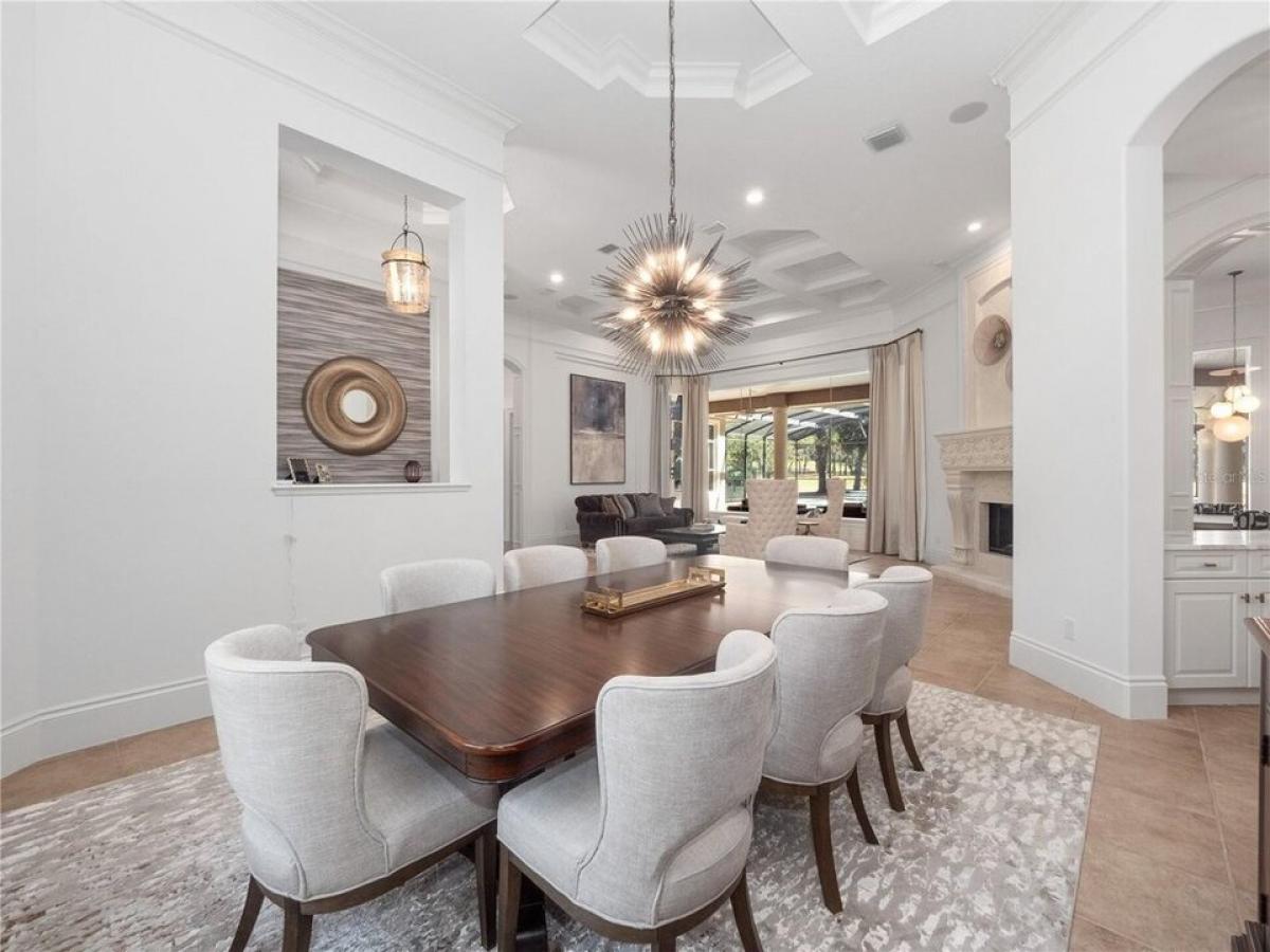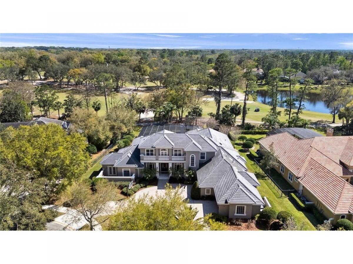 Nestled in the sought-after guard gated community of Alaqua Lakes, this exquisite 7,692 SF golf-front estate in the exclusive and gated Reserve offers ultimate privacy with a double-gated entry and a prime location on the 9th fairway just steps from the Legacy Golf Course clubhouse, driving range and putting greens. Perfectly positioned on a quiet cul-de-sac, this grand abode with newer roof (2021) offers the best of Florida living...inside amp; out! Beyond the grand double doors you are greeted with views of the sparkling pool and golf course, soaring ceilings and lots of natural light that fills the formal living and dining space to warmly welcome your guests. This home features a recently updated oversized gourmet kitchen with striking Cambria Brittanica quartz countertops, honed marble backsplash, solid wood cabinets, updated high-end appliances, a butlerrsquo;s pantry with matching Cambria Brittanica quartz tops, a huge pantry and a breakfast nook. Enjoy cool days by the beautiful double sided natural gas cast stone fireplace with views of the pool and golf course. Built for effortless entertaining, the residence boasts abundant first-floor common space including a recently redesigned family room with light wood accents, designer lighting and sliders that open to the lanai. The spacious game room is just through double doors and shares access to a centrally located bar with service windows, and a private theater room perfect for watching the big game or your favorite movie! The bar was just refinished with new Cambria Carrick quartz tops, a beverage fridge and an ice maker. The first-floor primary suite is a true retreat, offering a private sitting area, dedicated workout room, his-and-her walk-in closets, a spa-inspired bath with a garden tub, and a private verandah. A stately home office with custom built-ins and a statement window plus a powder bath for your guests with pool access completes the primary wing. Also on the first level are two additional bedrooms with a Jack-and-Jill bath updated in 2019, a dedicated study area with new Sonata quartz tops, a wine cellar and an expansive laundry room with center island, while the second floor features three more bedrooms, two baths, and a bonus space with built in desk perfect for a dedicated study room, craft room or climate control storage! The outdoors are just as impressive with brick paver motorcourt which leads to an oversized 4 car garage. The impressive 22,000 gallon pool with fountain and water features, a built in table and a swim shelf is set aside a generous covered lanai for fun in both the sun and shade on beautiful Florida days. Cookouts are a breeze with the service windows from the bar and a built in natural gas grill. Set in one of Central Floridarsquo;s most elite communities, residents enjoy access to Alaqua Lakesrsquo; premier amenities, including a clubhouse, 7-acre park, junior Olympic pool, Har-Tru tennis courts, beach volleyball, basketball courts, multipurpose ball fields, a playground, and exclusive social events. Alaqua Lakes is a natural gas community. Offering the best of Florida living inside and out, this estate is a testament to refined elegance and world-class lifestylemdash;an address reserved for those who expect nothing but the best.