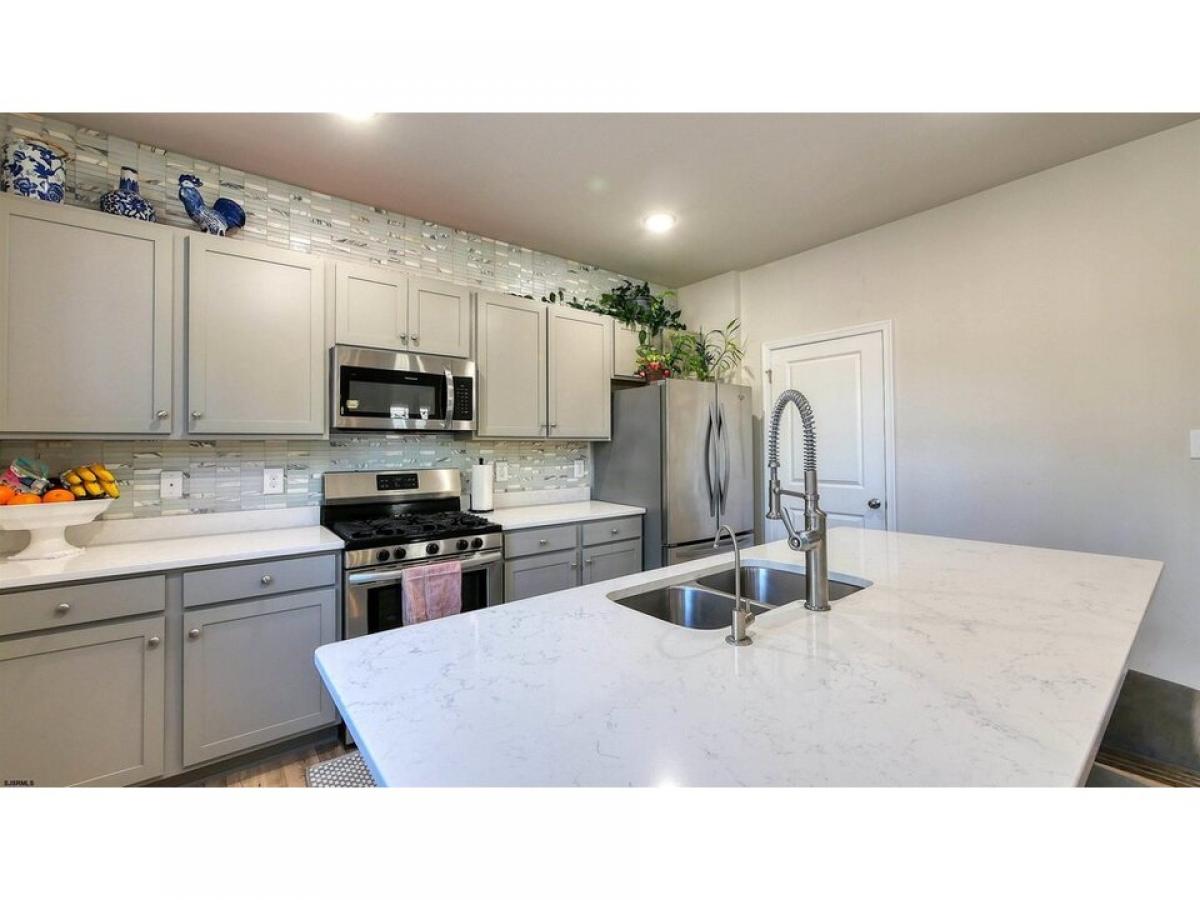 Welcome Home: 171 Cystal Lake Drive. This 4 bed, 2.5 bath, 2 sty home is located in the desirable community of Crystal Lakes! This immaculate home sits on a large lot that backs up to the woods amp; lake. At less than 6 years old this home is better than new. Stepping through the front door you are welcomed by luxury vinyl flooring that flows throughout most of the 1st level. To the right of the home you#039;ll discover the spacious open floor plan that seamlessly connects living room, dining area amp; chefs delight kitchen with quartz countertops, center island, 42in cabinets, stunning tile backsplash, all flooded with natural light-warm amp; welcoming kitchen also has a lg. walkin pantry for all storage amp; baking needs, coat closet, access to 2c garage, sliders from eating area open to backyard oasis. There is a half bath to front of house that has been recently updated, new tile floors, updated vanity amp; fixtures on 2nd floor. You will find the large Master suite, this lavish ensuite has gorgeous, tiled floors, soaking tub, dual vanity sink, modern luxury oversized walk-in closet is a designer#039;s dream come true. Also 3 additional well-appointed bedrooms offer comfort amp; versatility, all share lg. hall bath w/double sinks. 2nd floor laundry room with full size Wamp;D w/an area for folding clothes amp; shelves! There is also a full unfinished basement w/8ft ceilings, rough in plumbing, just waiting to be finished! The backyard oasis is complete with lg concrete pad perfect for entertaining- family dinners, back patio for grilling, planting amp; gardening. Yard fully fenced w/shed. The open fencing allows for full enjoyment of the woods, wildlife, lake, walking trail and just peaceful amp; tranquil enjoyment. Must see this one! Close to schools, parks, beaches, shopping, 20 mins to AC, 30 mins to Cape May. Seller will be paying off the solar panels at closing.