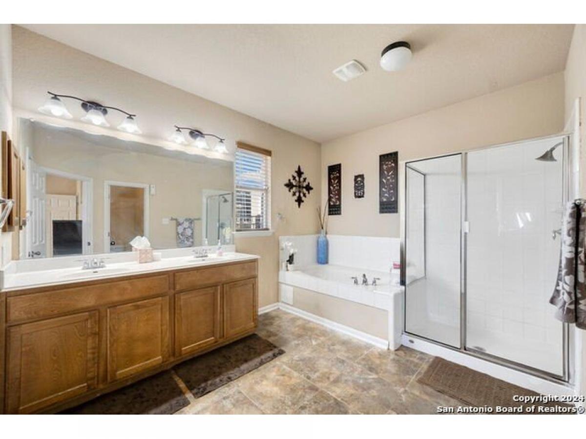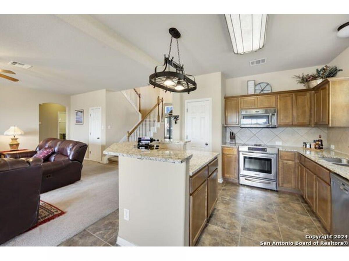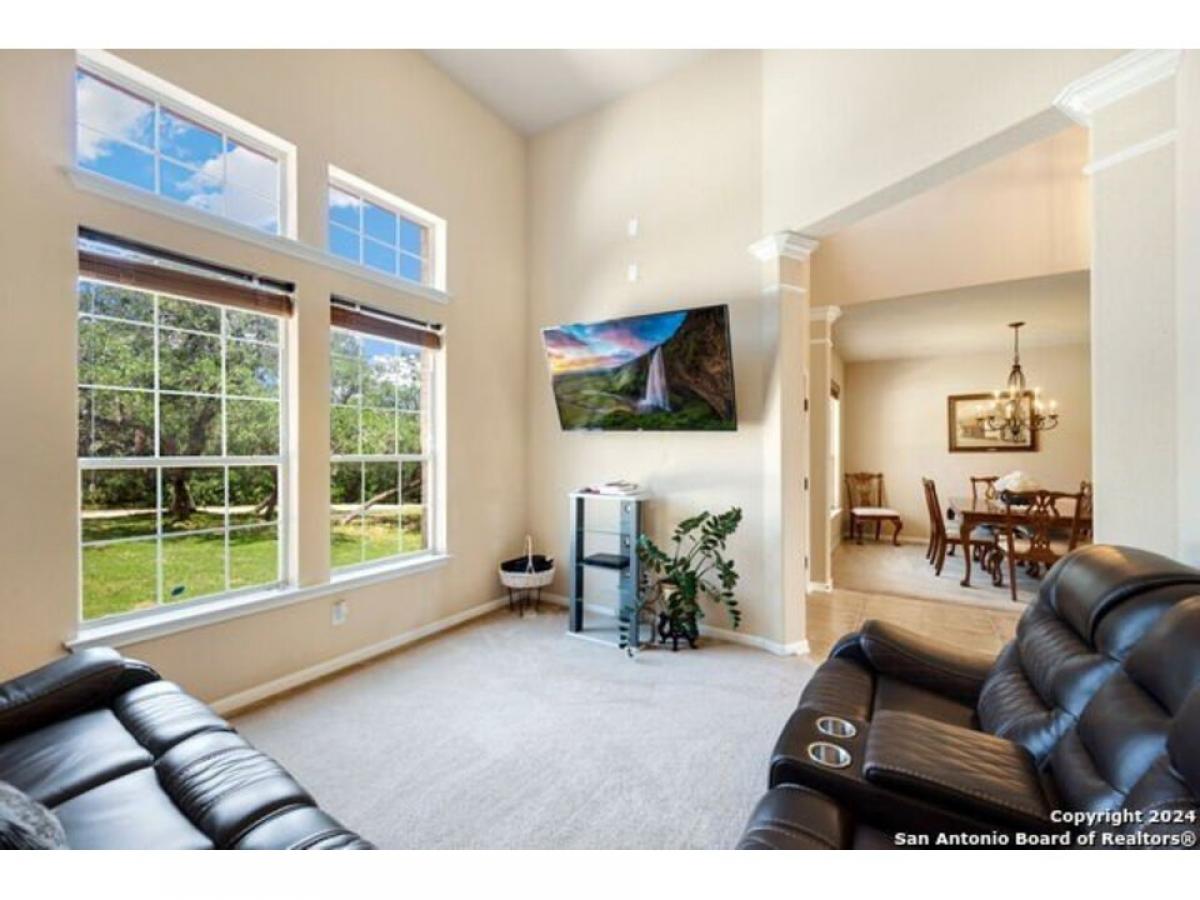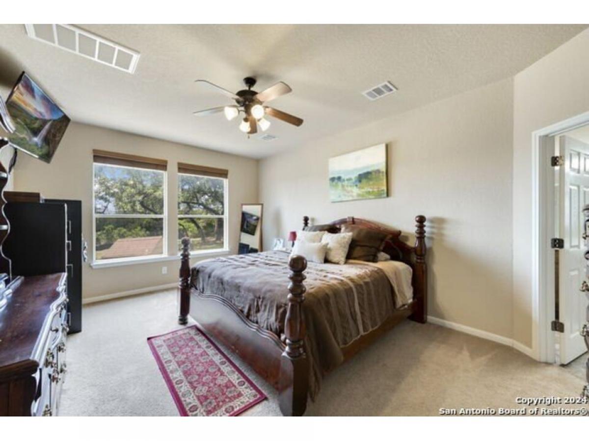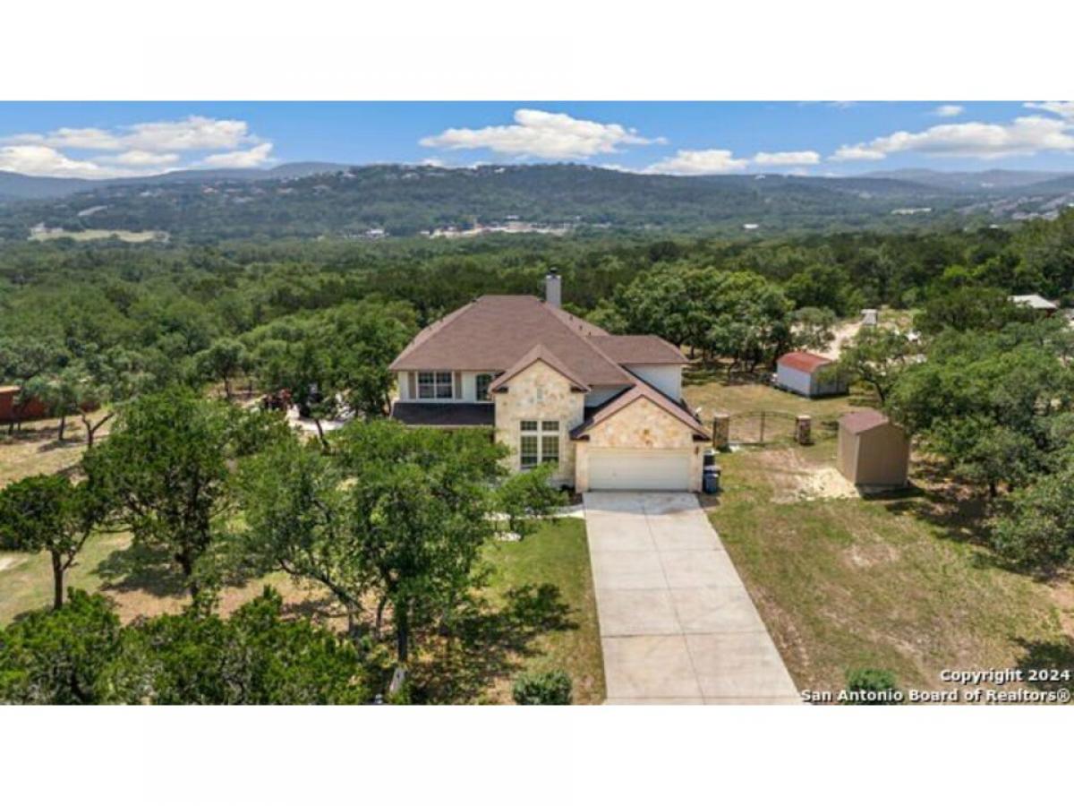 Nestled just outside the bedroom community of Helotes, this stunning home sits on slightly over an acre lot. Privacy abounds and is the perfect setting to add another garage or workshop, pool or more. There is an additional lot for sale next door too if you wanted to expand. City close, but complete country feel. The home has been inspected and repairs made, making it ready for the next owner. The charming stone front elevation and cozy front porch welcome you into an inviting entryway with a two-story ceiling. To the left, discover a formal dining room graced with a beautiful rustic chandelier, while to the right, a formal living room offers a perfect space for relaxing or visiting with guests. The main living room, located at the back of the floorplan, features a striking stone corner fireplace and a wall of windows that bathe the room in natural light, offering picturesque views of the outdoors. The open-concept kitchen boasts updated granite countertops, a diagonal tile backsplash, and stainless-steel appliances, including a smooth cooktop and built-in microwave. Adjacent to the kitchen, the well-lit yet cozy breakfast nook provides direct access to the large balcony, perfect for morning coffee or evening relaxation. Downstairs, the primary bedroom offers a private retreat with an ensuite bathroom, complete with a double vanity, whirlpool tub, and separate shower. A convenient half bath and laundry room are also located on the main floor. Upstairs, a versatile game room loft showcases outstanding hill country views, while the office area can easily serve as a third living room or a fifth bedroom. This home also includes two secondary bathrooms, ensuring ample space for all. Recent updates by the seller include the roof and deck. You will appreciate the storage shed that provides additional space for your belongings. With no HOA fees, this property offers both privacy and freedom. Experience the best of hill country living in this exceptional home while being close to shopping and restaurants!