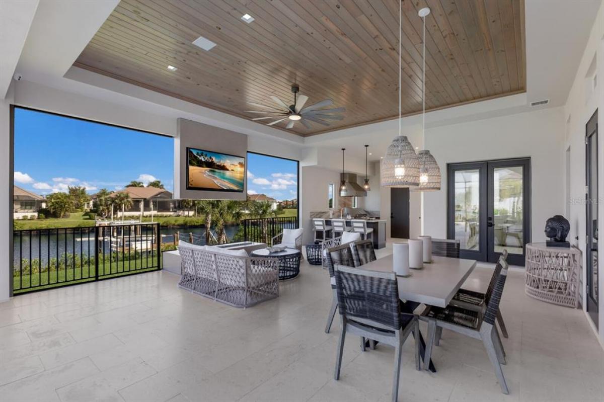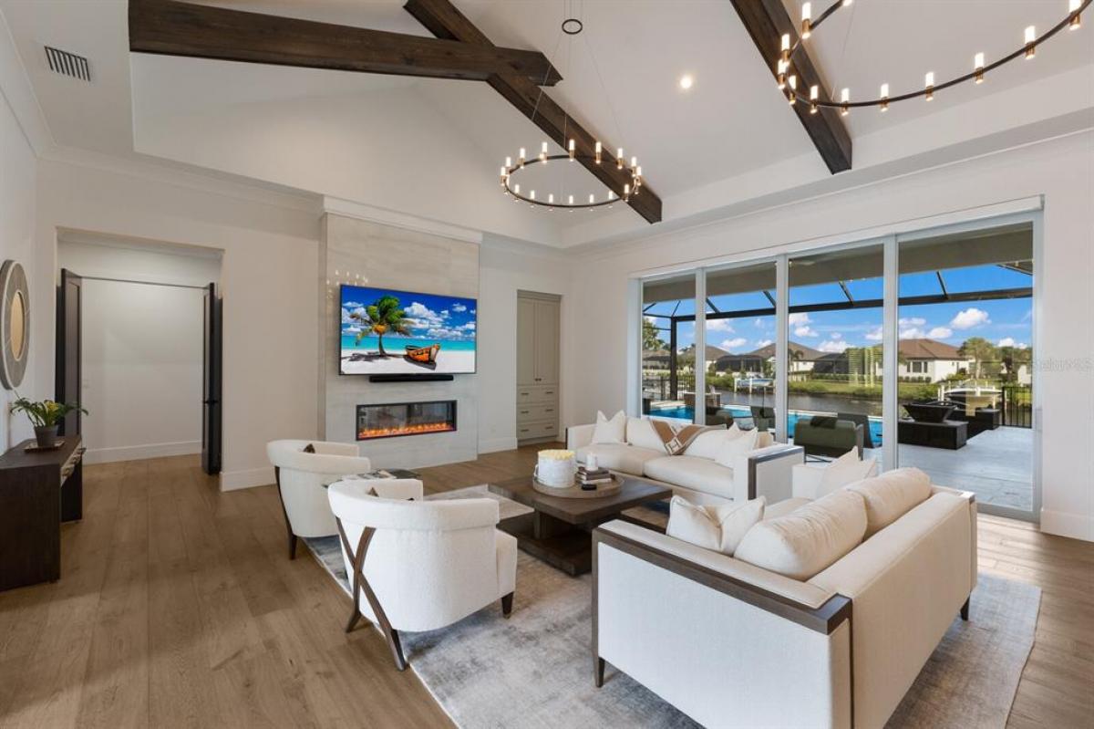 Under contract-accepting backup offers. Discover the ultimate waterfront lifestyle in this extraordinary estate located within the private, gated The Islands on the Manatee River Enclave of Rio Vista Estates. With your boat just steps from your backyard, enjoy direct access to the Manatee River and Gulf of Mexico—only three miles away—making every day a boating day. Designed for both elegance and ease of living, this custom home captures sweeping water views from nearly every room. The open floorplan highlights soaring ceilings, crown molding, 8’ solid-core doors, and refined millwork. A culinary showpiece, the chef’s kitchen offers Miele appliances, 6 burner gas stove with grill, built in wall oven, dual dishwashers, pot filler, waterfall countertops, custom cabinetry, prep kitchen, and built-in bar. The grand living room features a fireplace and expansive 10' impact pocket sliding doors, creating seamless indoor-outdoor living. The private primary wing offers a retreat-like experience with water-view windows, Tray Ceiling, crown molding, dual closets—including a custom oversized walk-in with built-ins and automatic lighting—and a spa-worthy bathtub with jetted air, dual vanities, and a multi-head luxury steam shower with body sprays and rain shower head. Each guest suite is complete with its own en-suite bath, complemented by a large office/den with custom built in cabinets, bonus room, and guest powder bath. Outdoors, enjoy a heated saltwater volleyball-style pool, spa, gas fireplace, expansive lanai with panoramic view, and Heston-equipped summer kitchen. For boating enthusiasts, the dedicated storage with ice maker, fish-cleaning station, lighted paver deck, and 20,000-lb lift ensure every detail of your waterfront lifestyle is effortless. A four-car garage with air-conditioned storage adds practicality to the home’s thoughtful design. This exceptional residence combines refined luxury with direct boating access, delivering an unparalleled lifestyle in one of the region’s most desirable communities. The Islands on the Manatee River Community is located on approximately 225 acres, and includes Gated 24-hour manned entry, River Lodge/River House - a centrally located gathering facility with riverfront views, Fitness center/Gym with views of the river, Fire Pits, outdoor seating, and grilling areas, Walking Trails, and a community docking facility. Separate Membership access (optional)to River Wilderness Golf & Country Club which includes: 18-hole championship golf course, tennis and pickleball courts, Bocce ball courts, Newly added Bar and Grill, elegant dining, banquet and clubhouse facility.