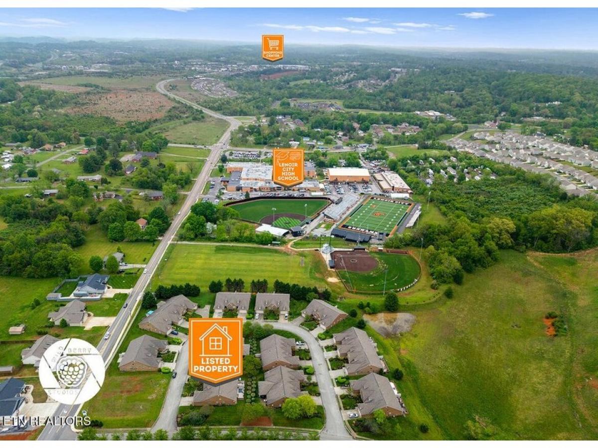 Rare Opportunity on this Brick One level End Condo Unit in Prime Lenoir City Location only minutes to shopping, medical and grocery. Step into effortless living with this beautifully designed end unit condo that is truly one level living with no steps and easy access throughout. This spacious home boasts an open floor plan that seamlessly connects the island kitchen, dining area and vaulted ceiling family room with gas fireplace. You will love the sunroom/sitting area that is ideal for that morning coffee, reading or year around enjoyment. The kitchen offers plenty of cabinet space, great flow for cooking and an island that invites gathering. The split bedroom plan is perfect to maintain privacy and the primary suite features a vaulted ceiling, walk in closet and easy access shower. This gem is nestled in a very well kept community with low maintenance living that combines comfort, style and convenience in one package. Unit is all brick on 3 sides-Vinyl Siding on the rear