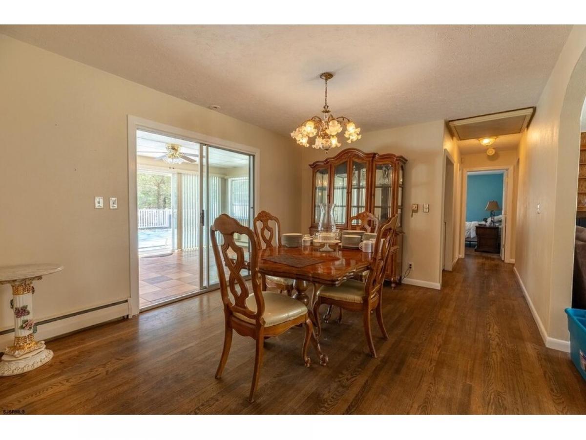 Tucked away on a 2.9acre wooded lot with a 400-foot serpentine driveway, this serene Mullica Township ranch is a private retreat surrounded by nature, featuring original hardwood floors, a dual wood-burning fireplace, and a spacious layout perfect for entertaining or peaceful living; the home boasts a ceramic-tiled four-season room and kitchen, expansive living and dining areas, and a 16-foot sliding glass door that opens to a fenced backyard oasis with a 20x40 in-ground pool, slide, concrete patio, and a maintenance-free 14x17 Apex deck, all accented by a 6-year-old Timberline lifetime roof, 6-year-old liner and vinyl fencing, and a 400,000 BTU pool heater; utility upgrades include Smith McClain geothermal heating, hot water baseboard (oil), indirect hot water, 3-ton Trane A/C, and a 12-year-old submersible well (110 feet deep, 3rd aquifer, serviced 2 years ago) with filtration tank replaced in 2023; enjoy a lower-level side-entry 2-car garage plus an oversized detached garage/workshop with well over 1,500 sq ft of space, ideal for storage, hobbies, or equipment, along with a hunting shed in the rear yard offering extra flexibility. IMPORTANT INFO: Hunting shed sold AS-IS. Septic system includes a seepage tank added 10ndash;15 years ago; original tank still in use. This rare blend of comfort, functionality, and privacy is a must-seemdash;schedule your private showing today.