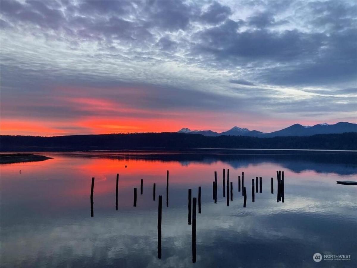 Unique Opportunity for waterfront home ownership! Set on a tranquil .73 acres gently sloping west with stunning views of Hood Canal, Olympic Mountains and endless sunsets. The existing house is sited on .49 Acres stretching across the beach into the waters of Hood Canal. Then the Wild Card**, another shy * acre lot just begging to be built on. This property may best serve a multi-generational plan. This historical site in Silverdale is just minutes to town. Located at the end of the road adjacent to Bangor Base (Quiet and secure neighbor to the North). Home is a rambler (1 level) w/ a tall walk in under, and could be converted to a full-on basement. This modest 3-bedroom home is just waiting for your creative expansion plans.